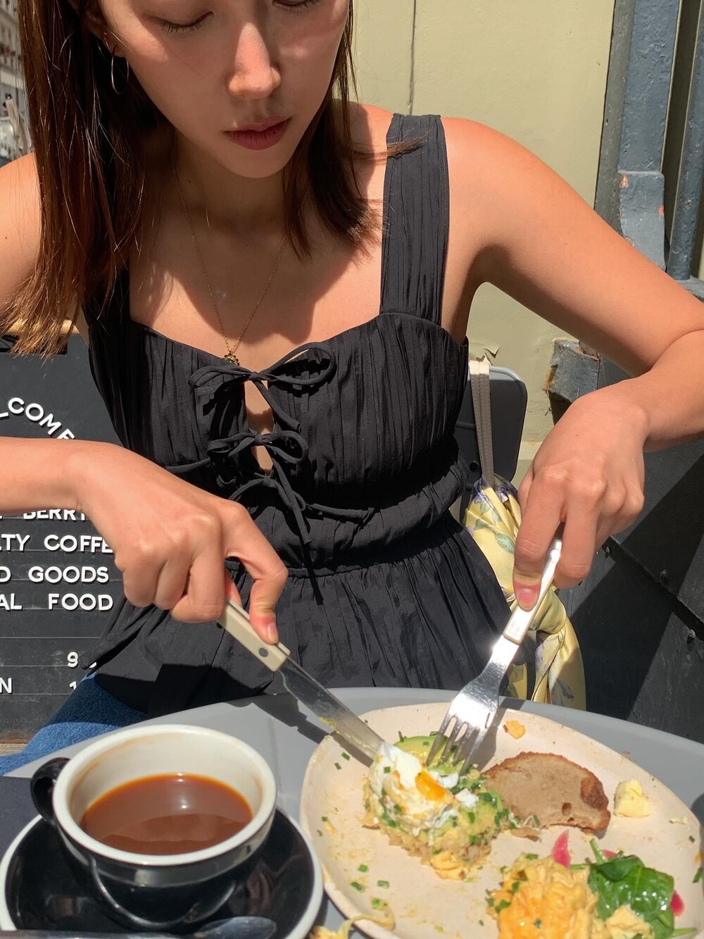 허리라인을 밴드로 딱 잡아주니(조이지 않을정도로!) 또 날씬해보이기는 엄청 날씬해보이겠죠!가슴 안감까지 겉감으로 대어