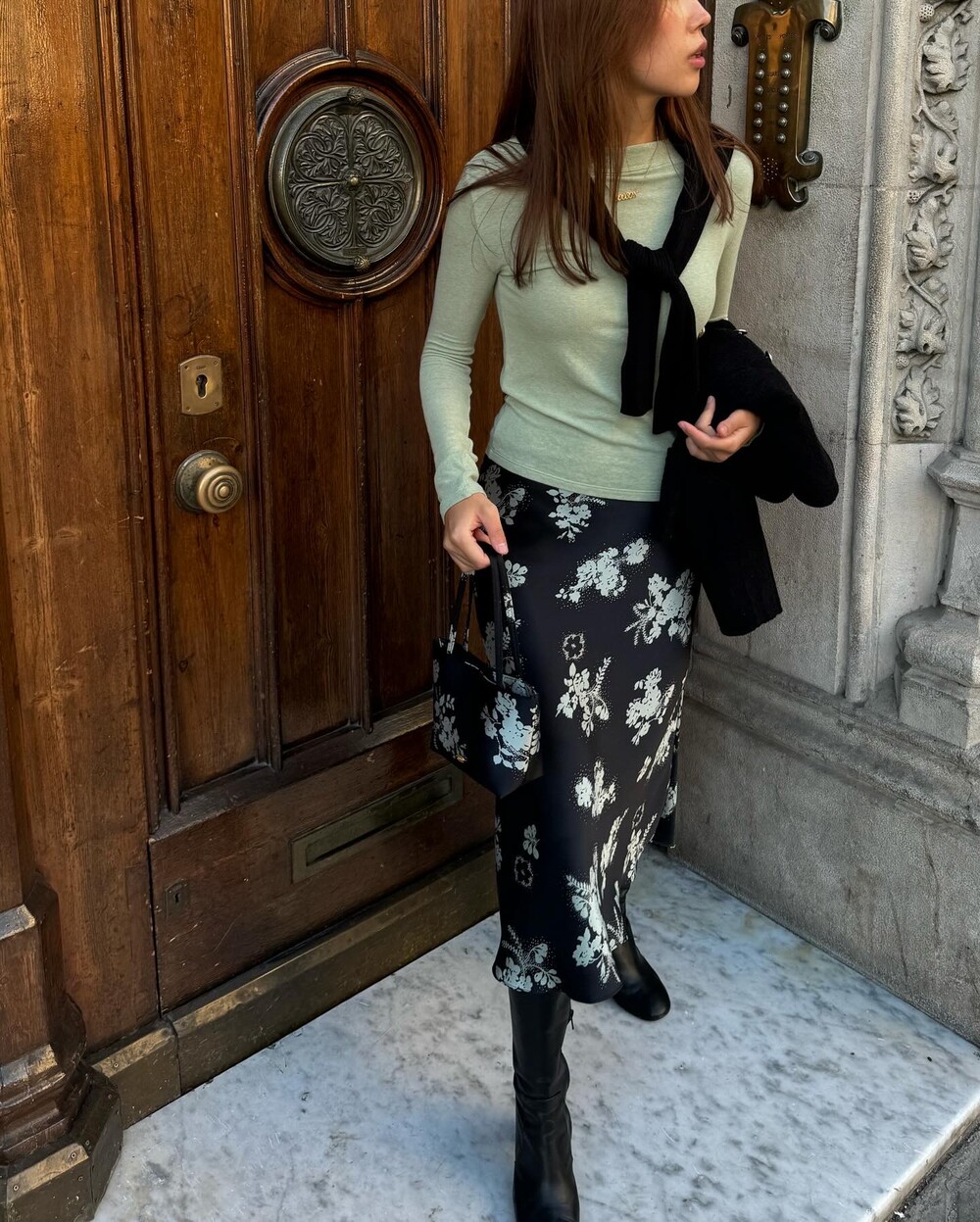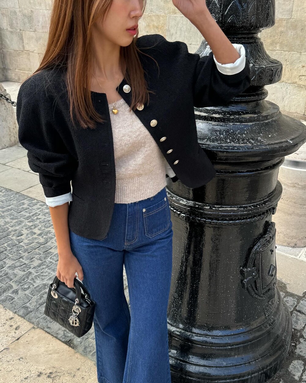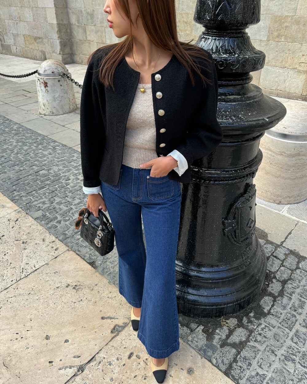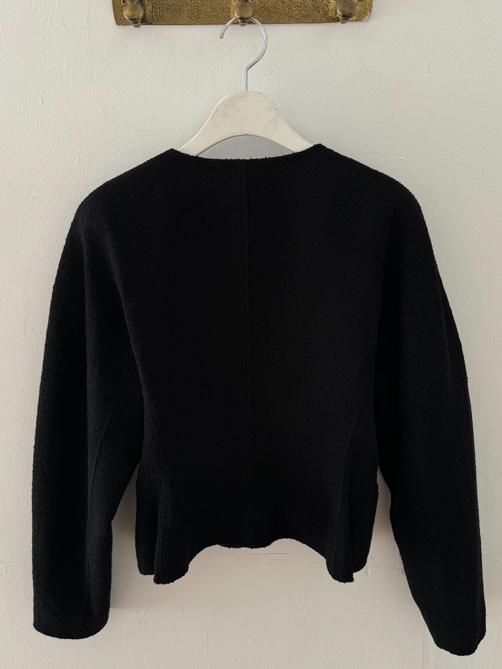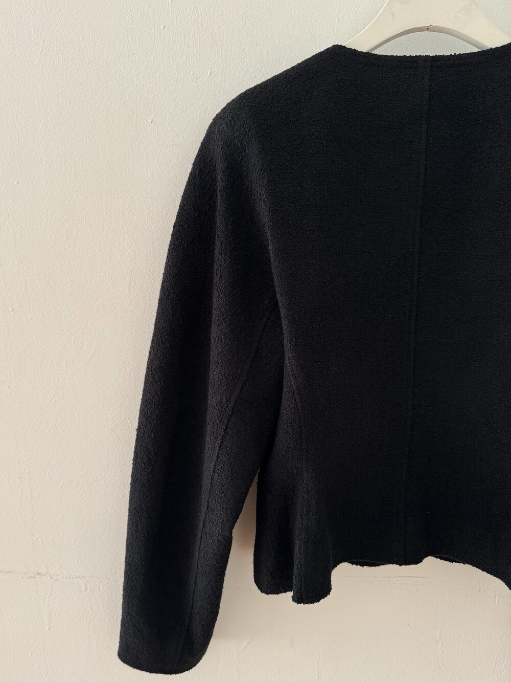 블랙은 말해 뭐해 입만 아프죠. 아주 오래 전 90년대 샤*의 컬렉션에서 나그랑 소매의 블랙 미니원피스를 봤는데 메모스럽게 재해석해보고싶단 욕구가 어마했더랬죠. 아주 진한 칠흑같은 검정입니다. 그래서 페미닌하기도, 캐주얼하기도 해요.