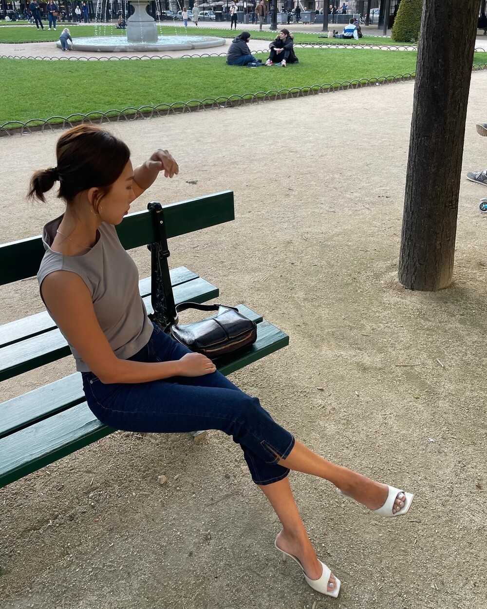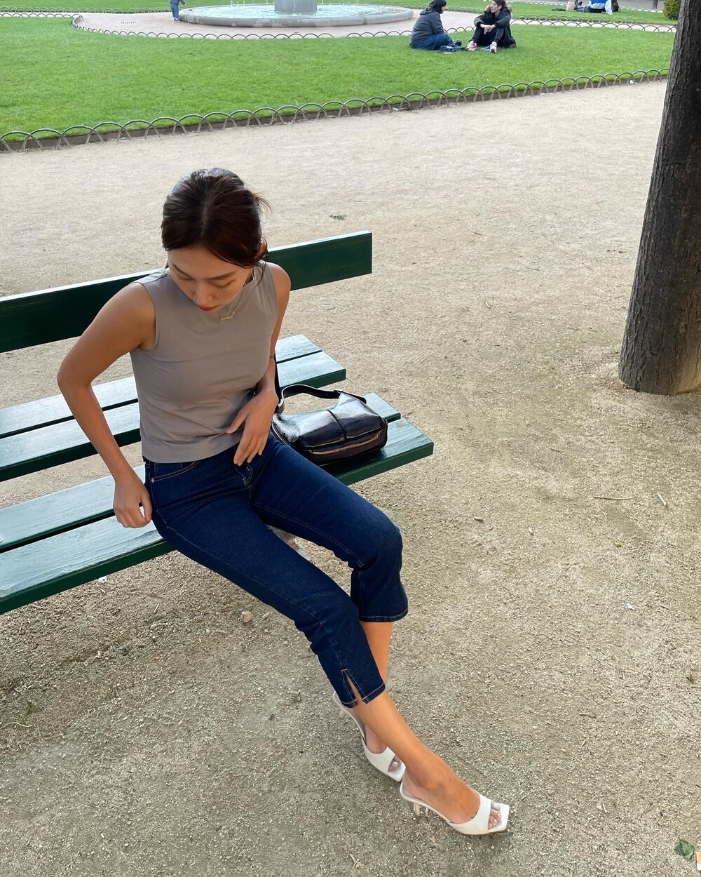 7부 기장에 정확히 예쁜 바지단이 레그라인까지 참 슬림하게 표현해주니 꼬옥 추천드려봅니다. 특히나 사이드 슬릿이 종아리 면적을 상대적으로 얇아보이게하니 이 것 만으로도 소장가치 충분하지요?
