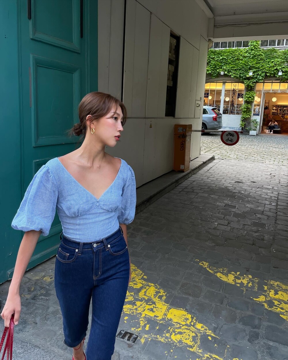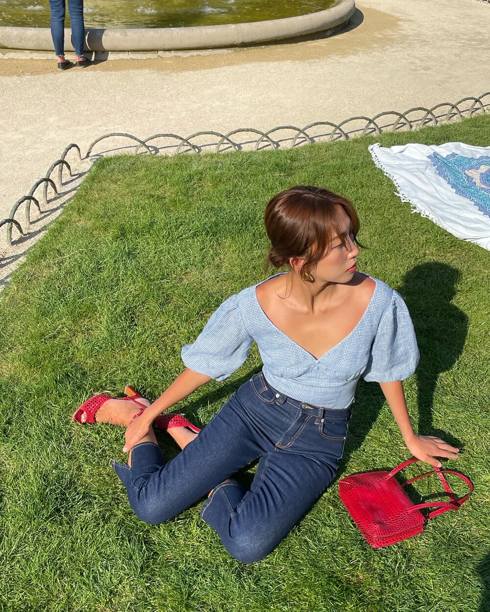 MEMO 데님 핏은 이제 아시는 분들은 다 아실거에요.복숭아처럼 볼륨감있는 힙라인은 말해 뭐해 입아픈데 처음 시도해보는 이 소재가 바디에 좀 탄력적으로 감겨 맵시가 더욱 예쁘게 표현되네요.