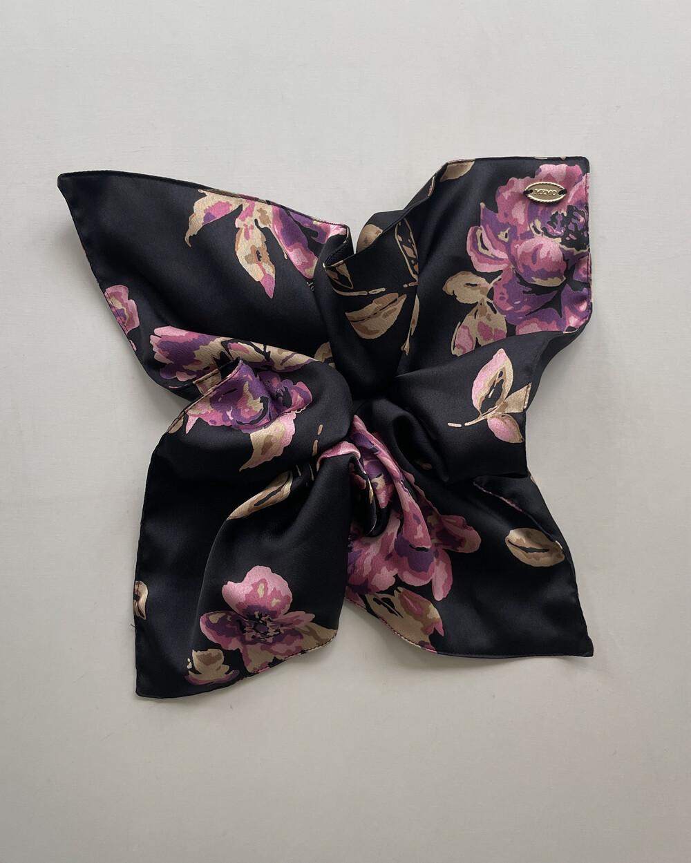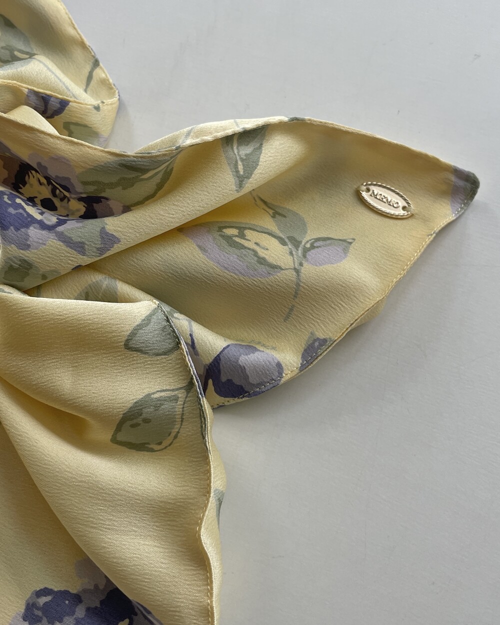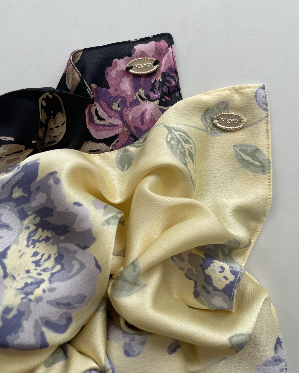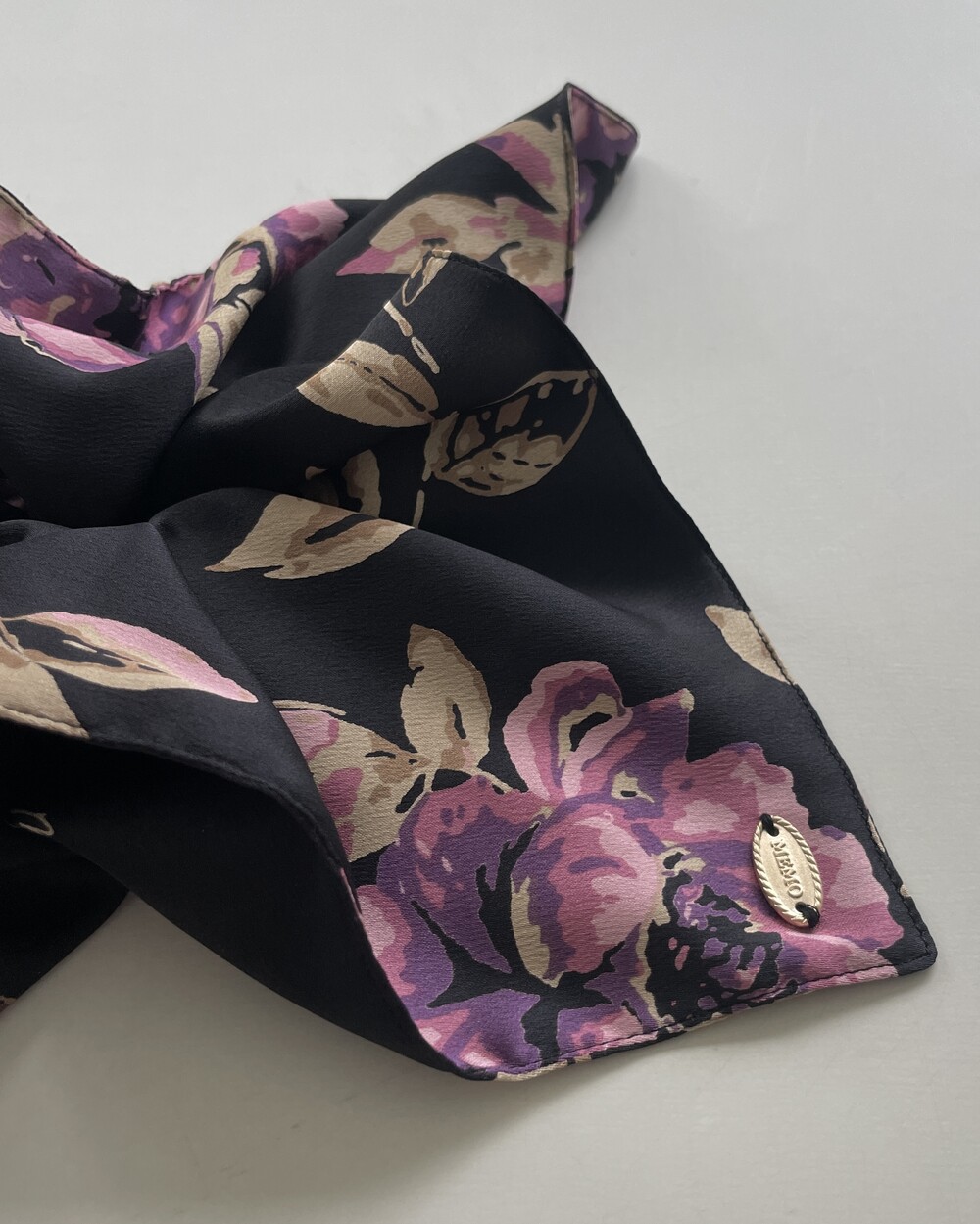 손수건 형태인데 , 한 면의 프린트가 절개되지 않도록 특수 재단하여, 마구 묶어도 꼬임이 쏠리거나 울룩 불룩해지지 않고 쉽게 예쁜 폼이 연출되더라구요.