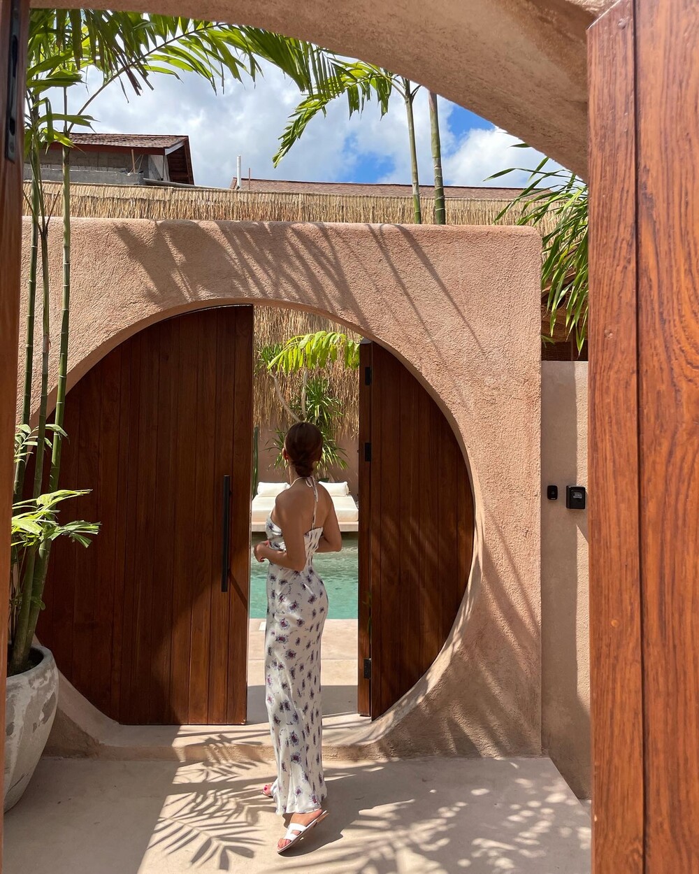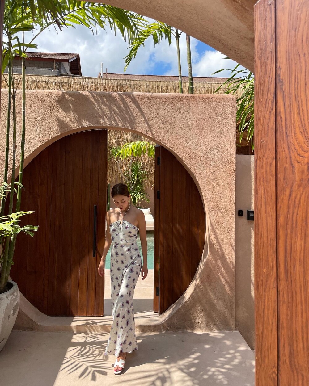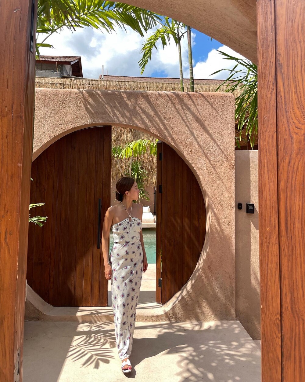독특한 형태의 가슴라인은 스트링을 조절하여 홀터넥을 연출하기도, 서클형태의 디테일 혹은 x자의 센슈얼하고 역동적 스타일을 연출하기도 합니다.