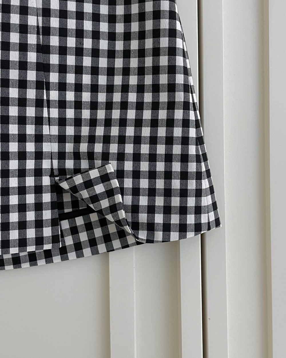 절개선이 어디인지 찾기 어려울 만큼 체크도 꼼꼼하게 맞추었구요, 디테일 컷에서도 확인 가능하시겠지만 지퍼 시접까지도 노출되지 않도록 마감했으니 자신있게 선보여드립니다.
