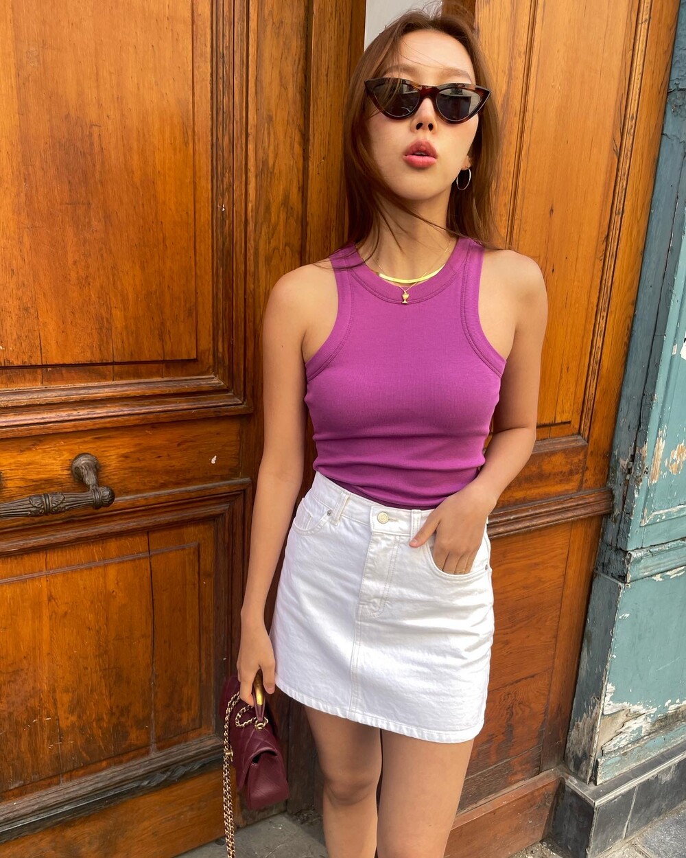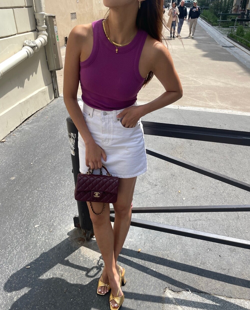 플레이하기에 따라 우아한 리조트룩도 쉽게 연출되는데 심플한 져치탑이나 화이트셔츠와 함께라면 충분할거에요.