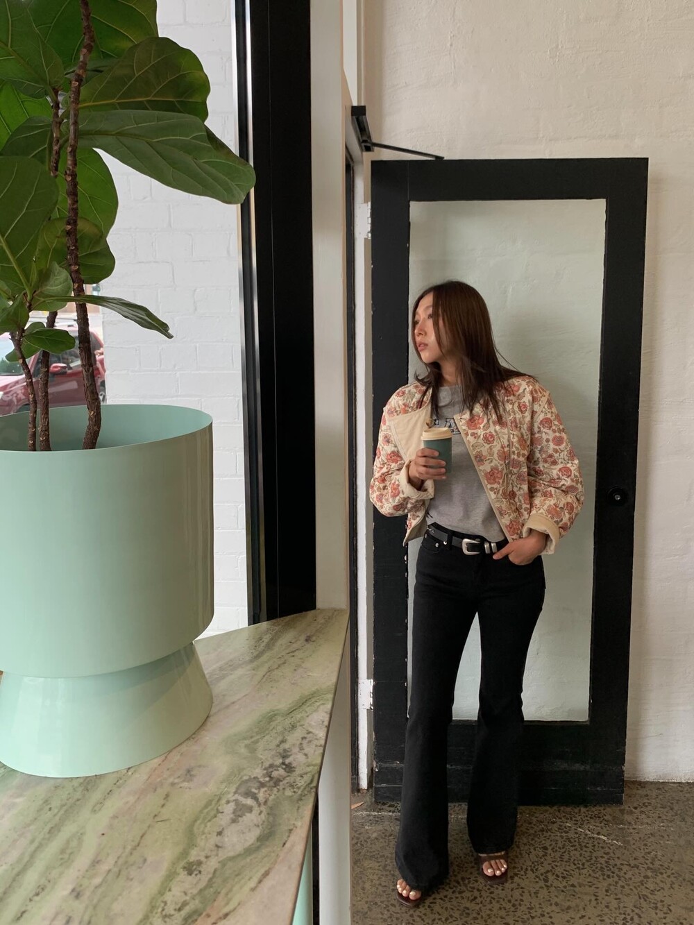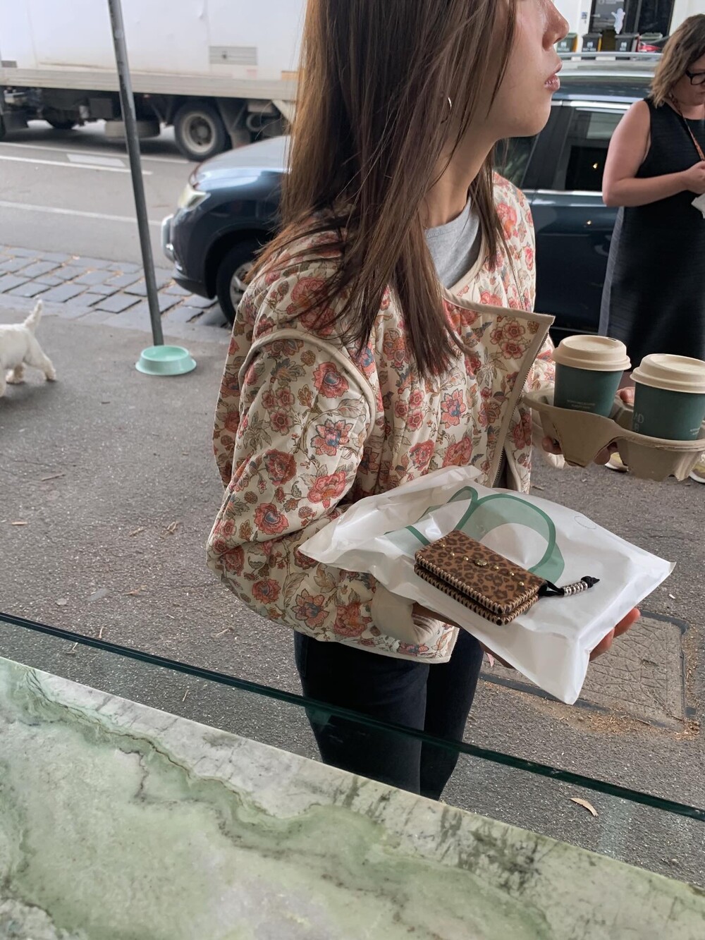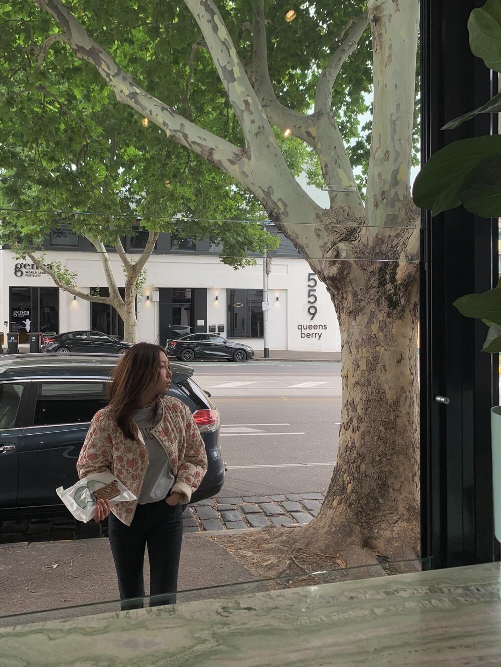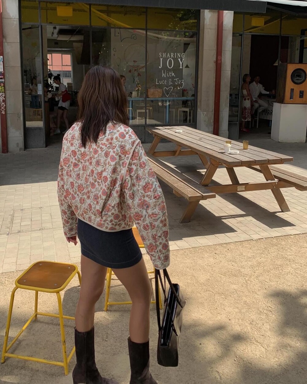 반대 솔리드 면은 라이트 베이지 컬러로 아우터 한 피스로 다양한 연출이 가능하답니다 .