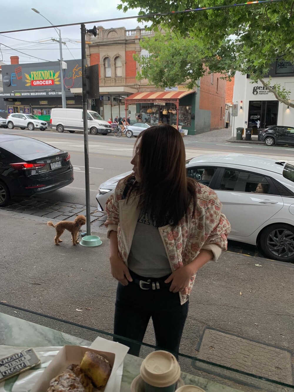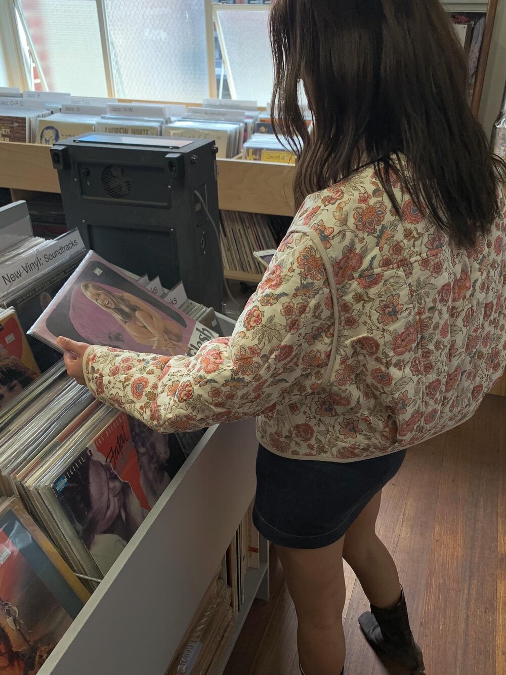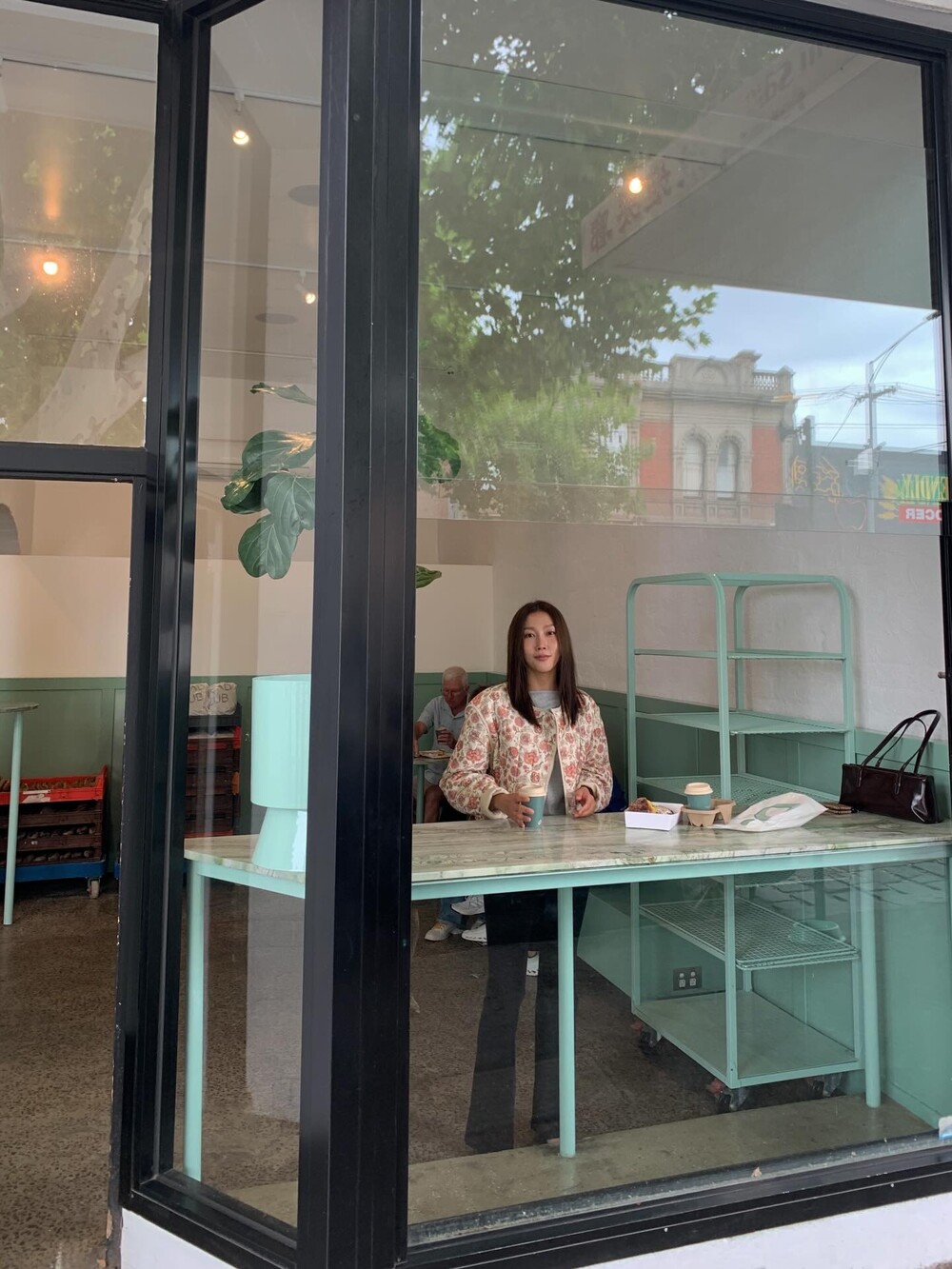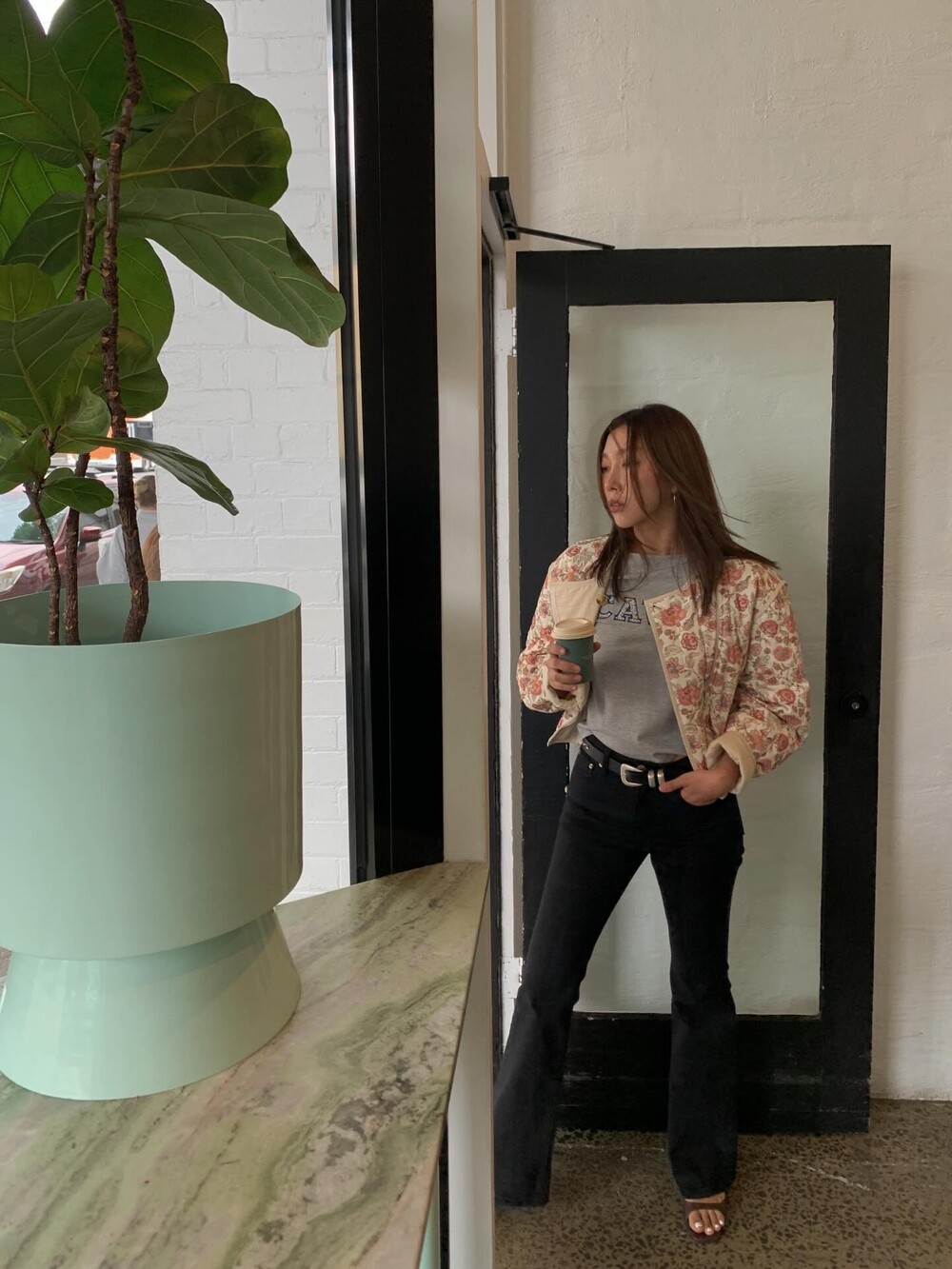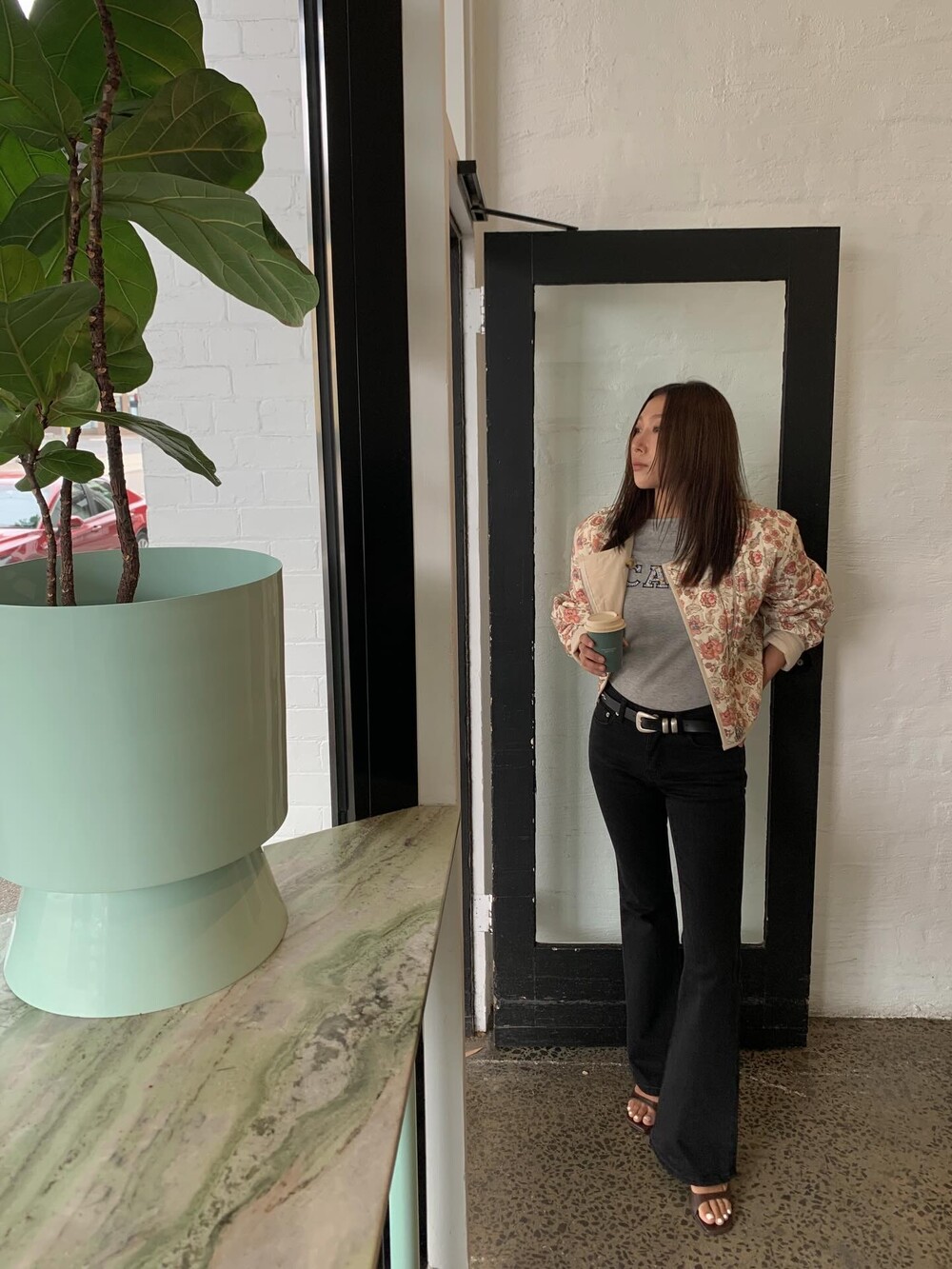 반대 솔리드 면은 라이트 베이지 컬러로 아우터 한 피스로 다양한 연출이 가능하답니다 .