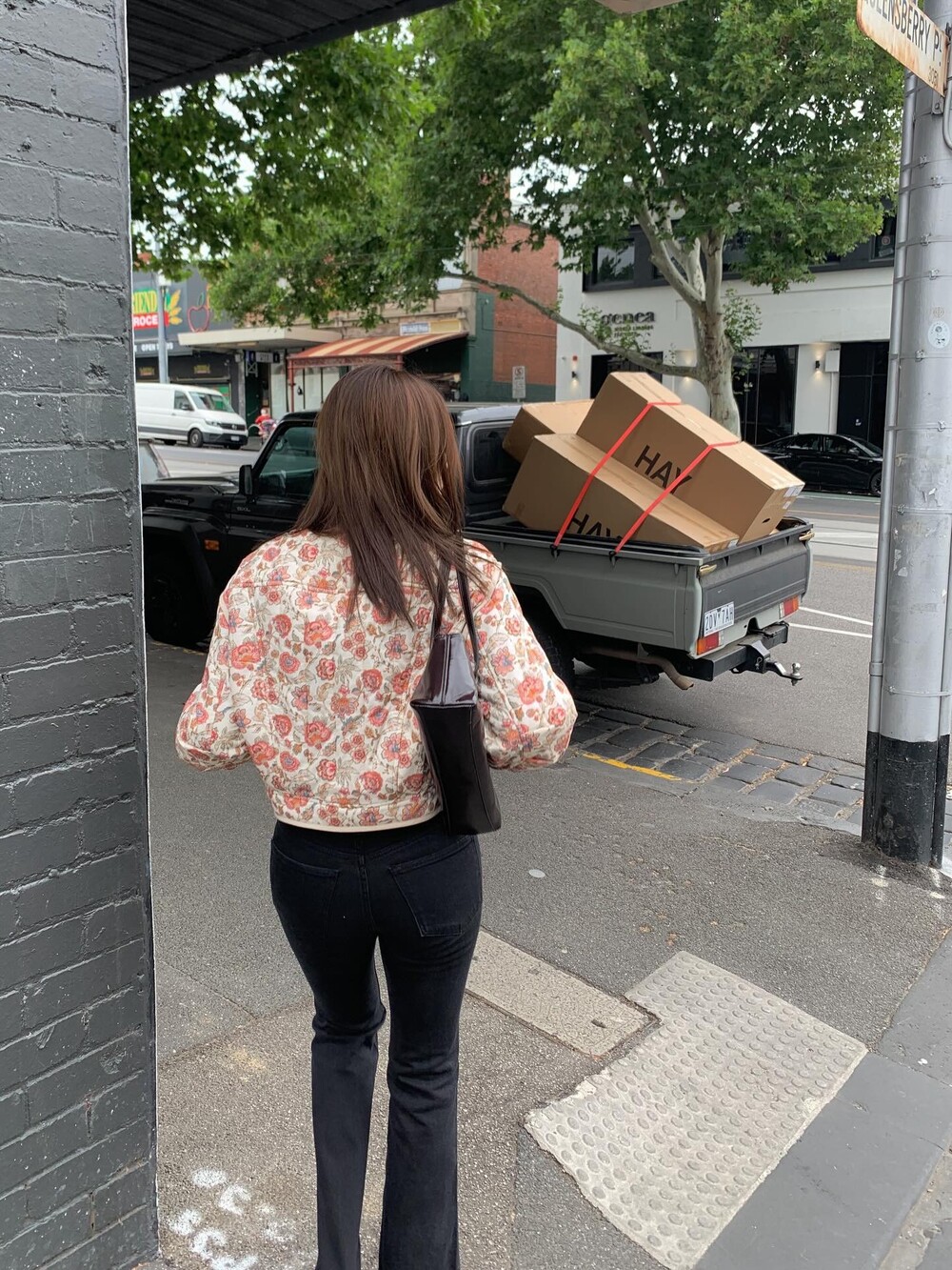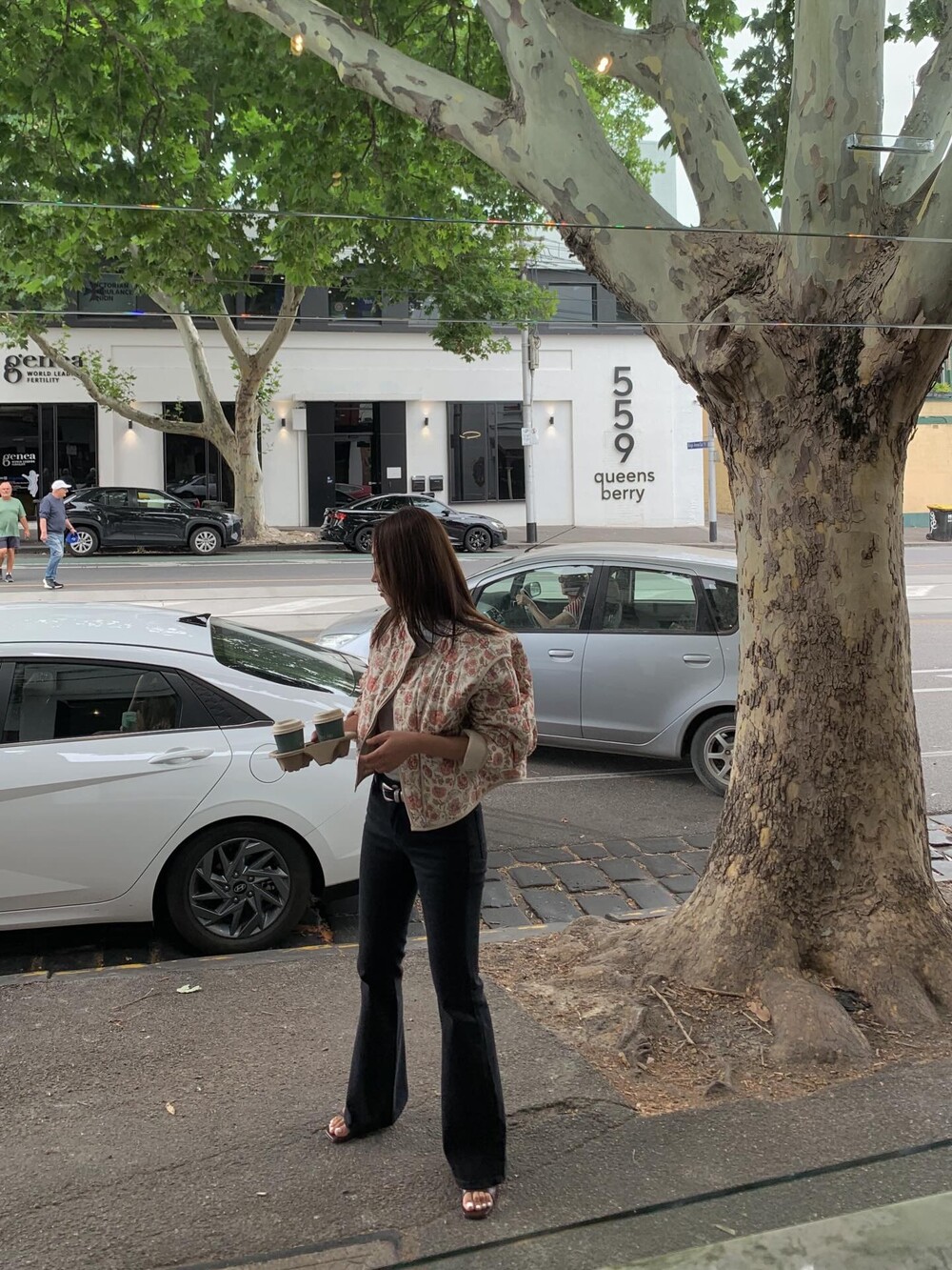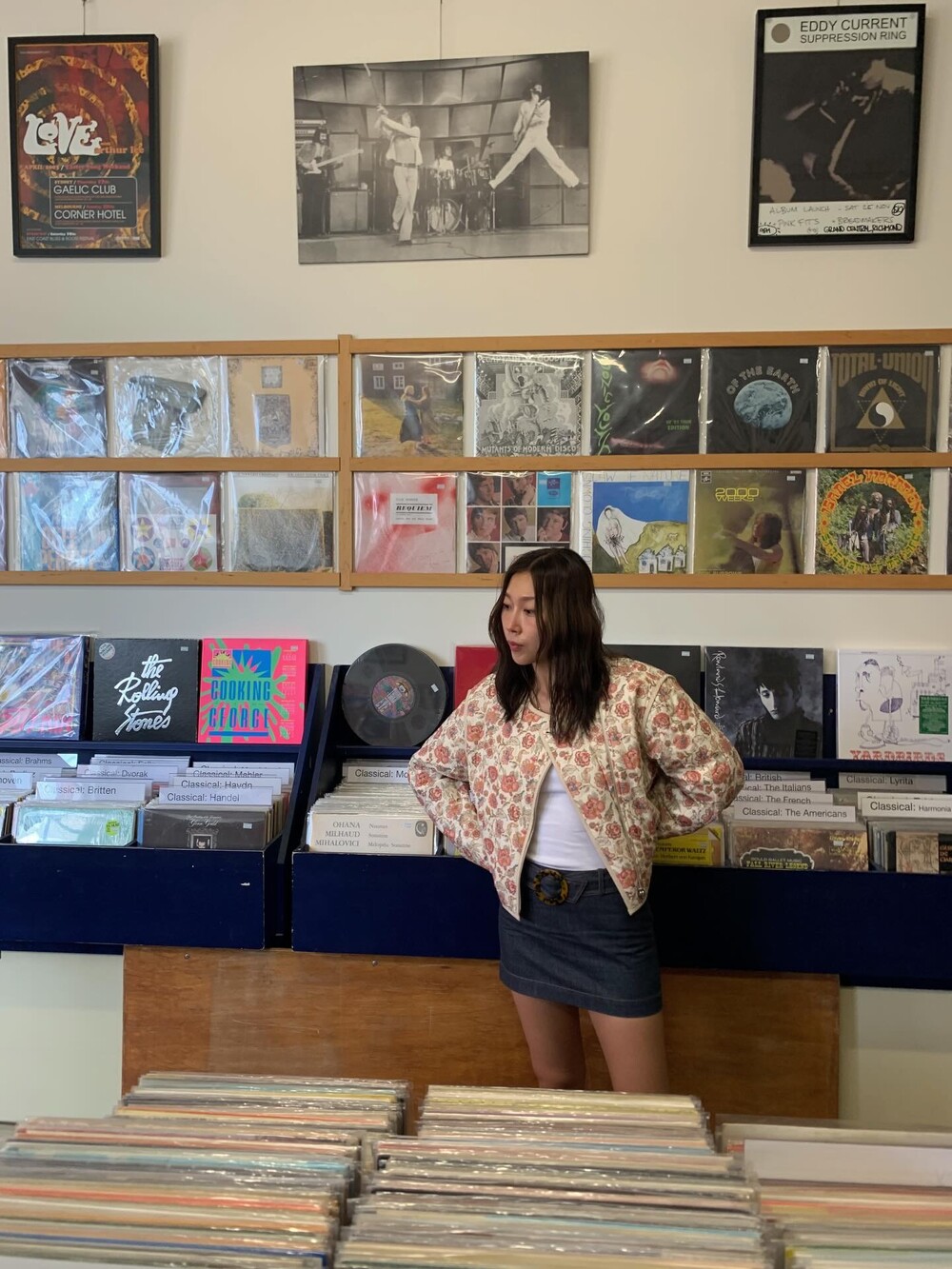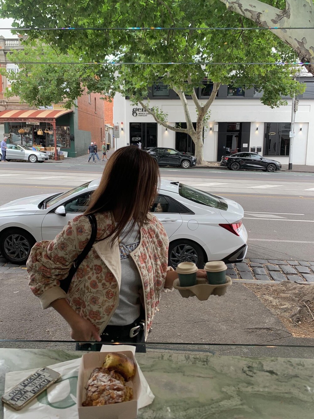 반대 솔리드 면은 라이트 베이지 컬러로 아우터 한 피스로 다양한 연출이 가능하답니다 .
