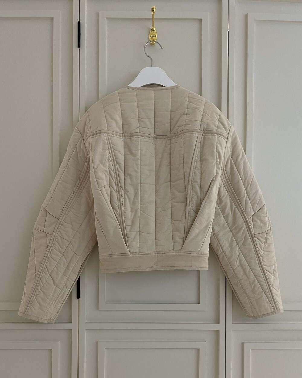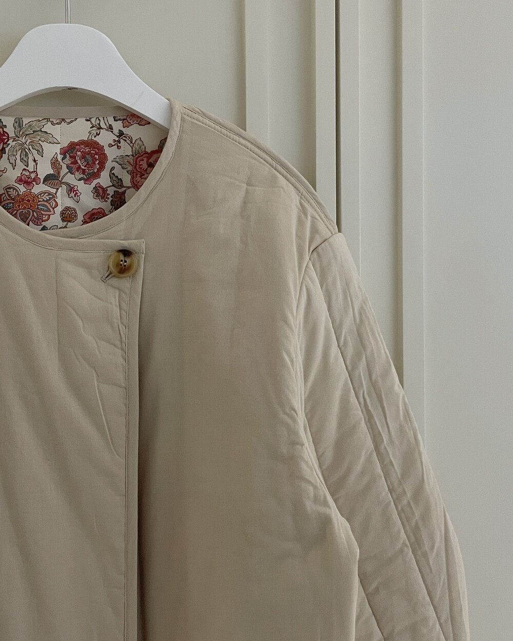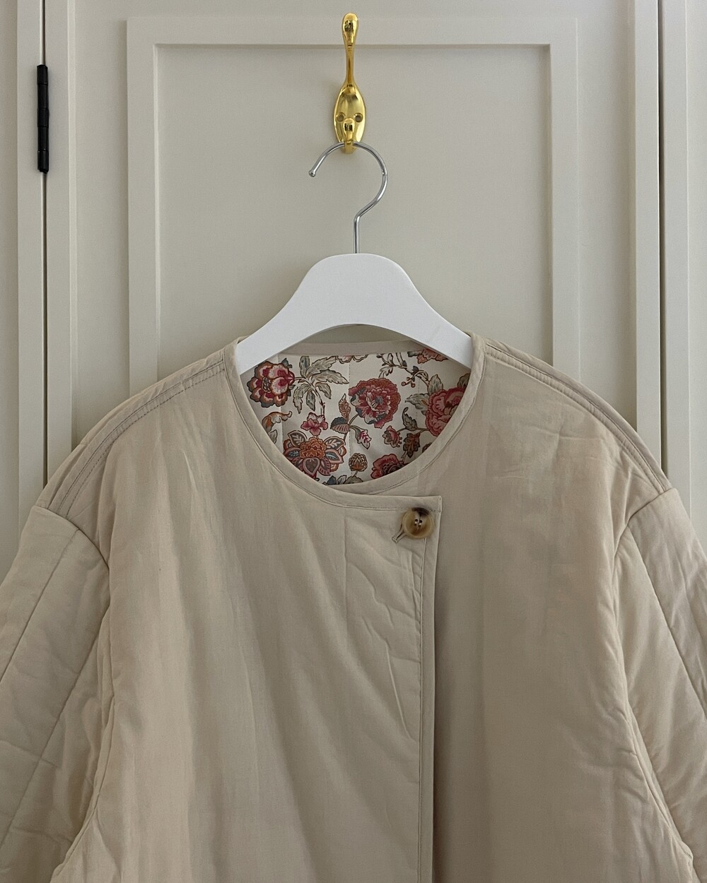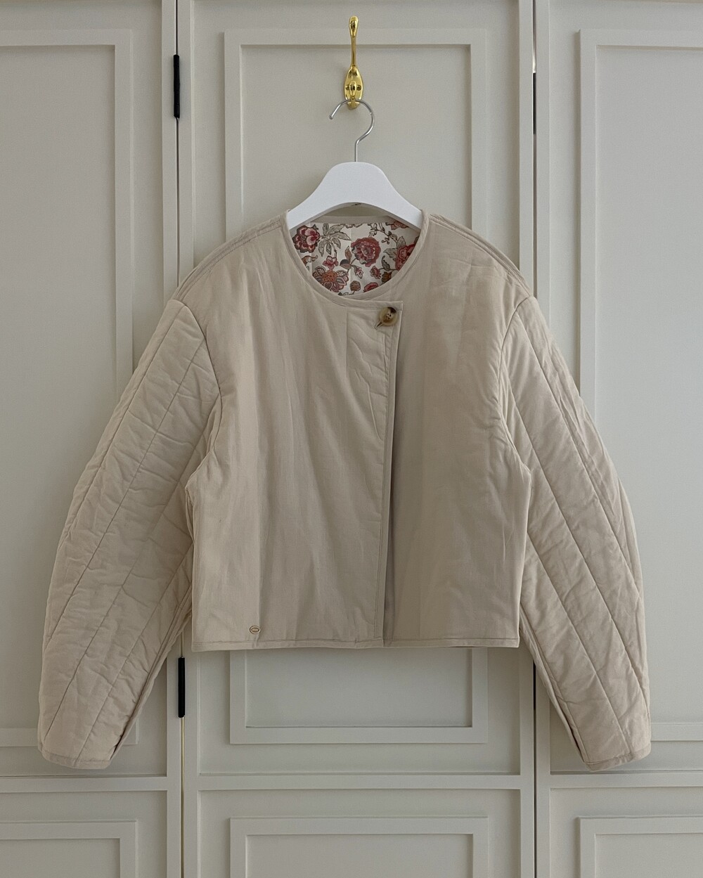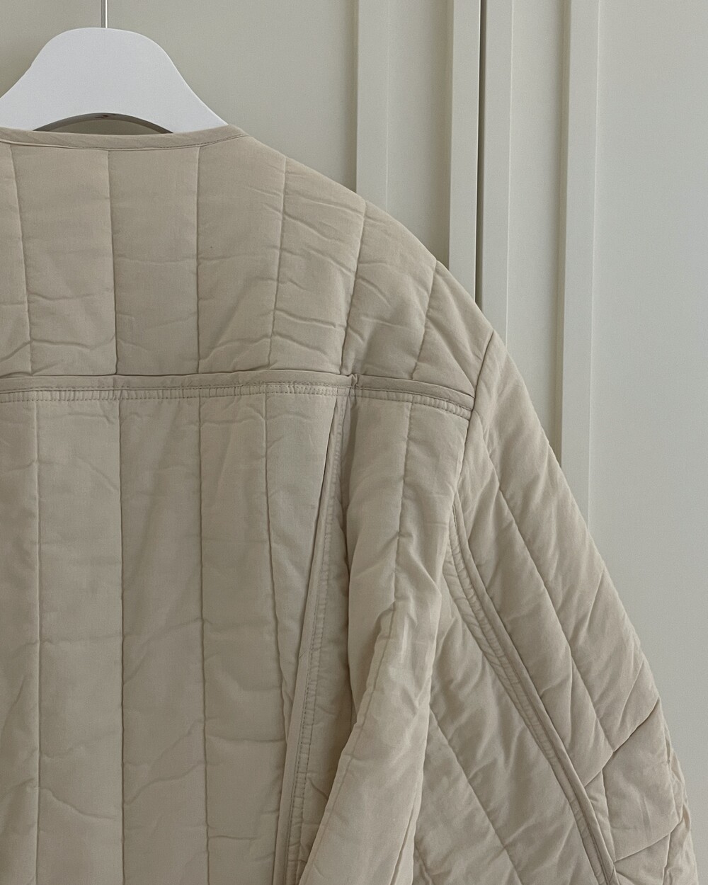 완만한 곡선의 구조적 실루엣이 매력적인 퀼팅 면 양면 점퍼입니다.