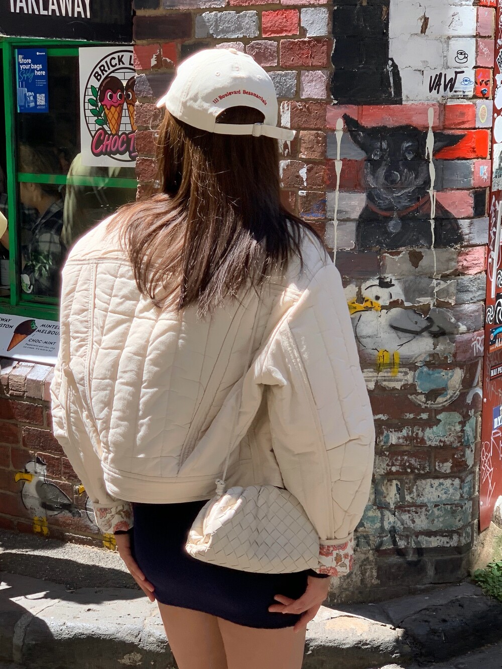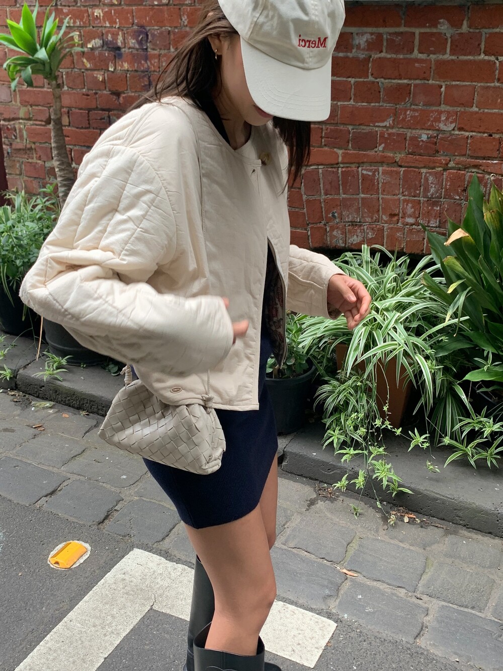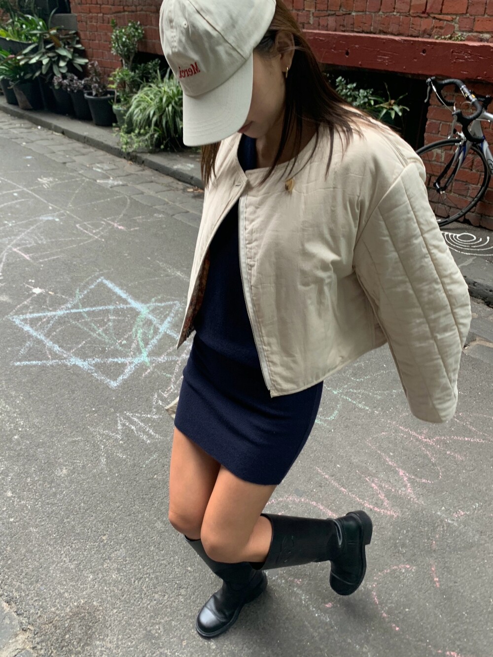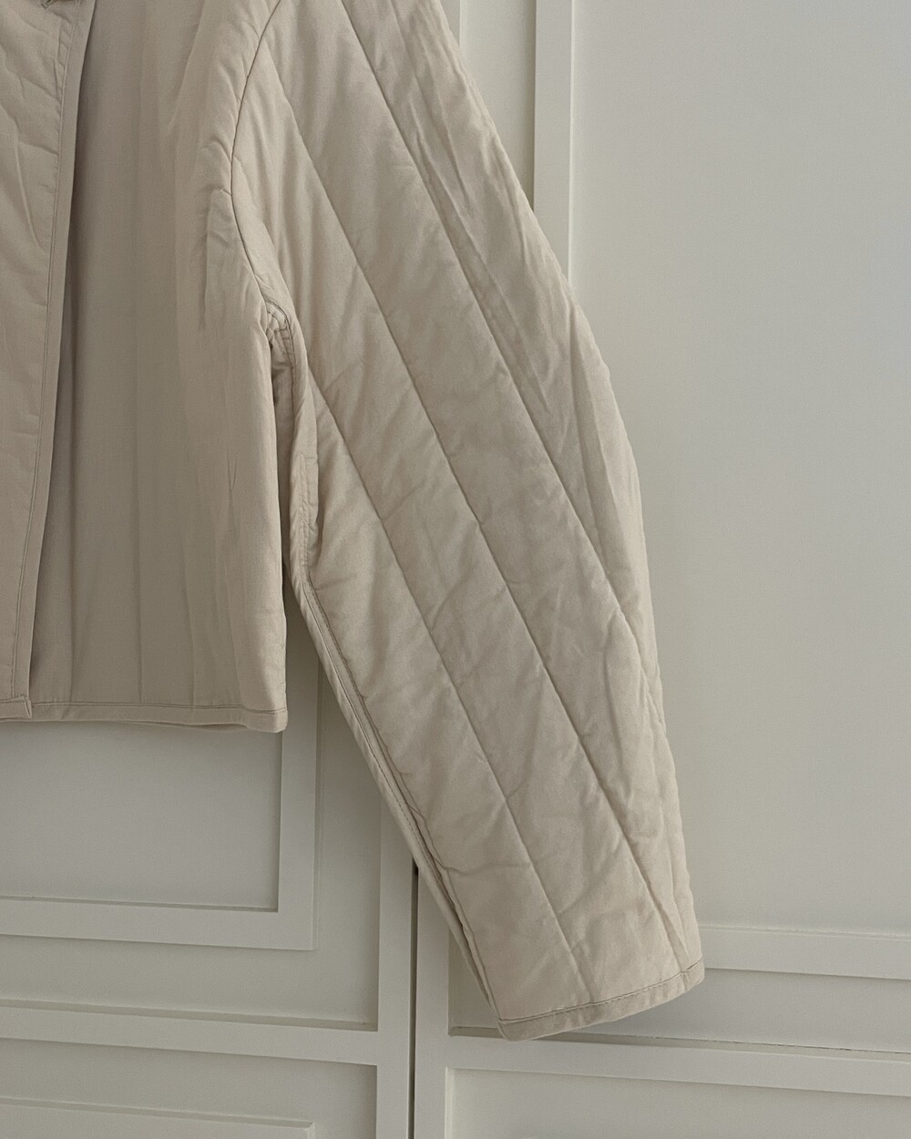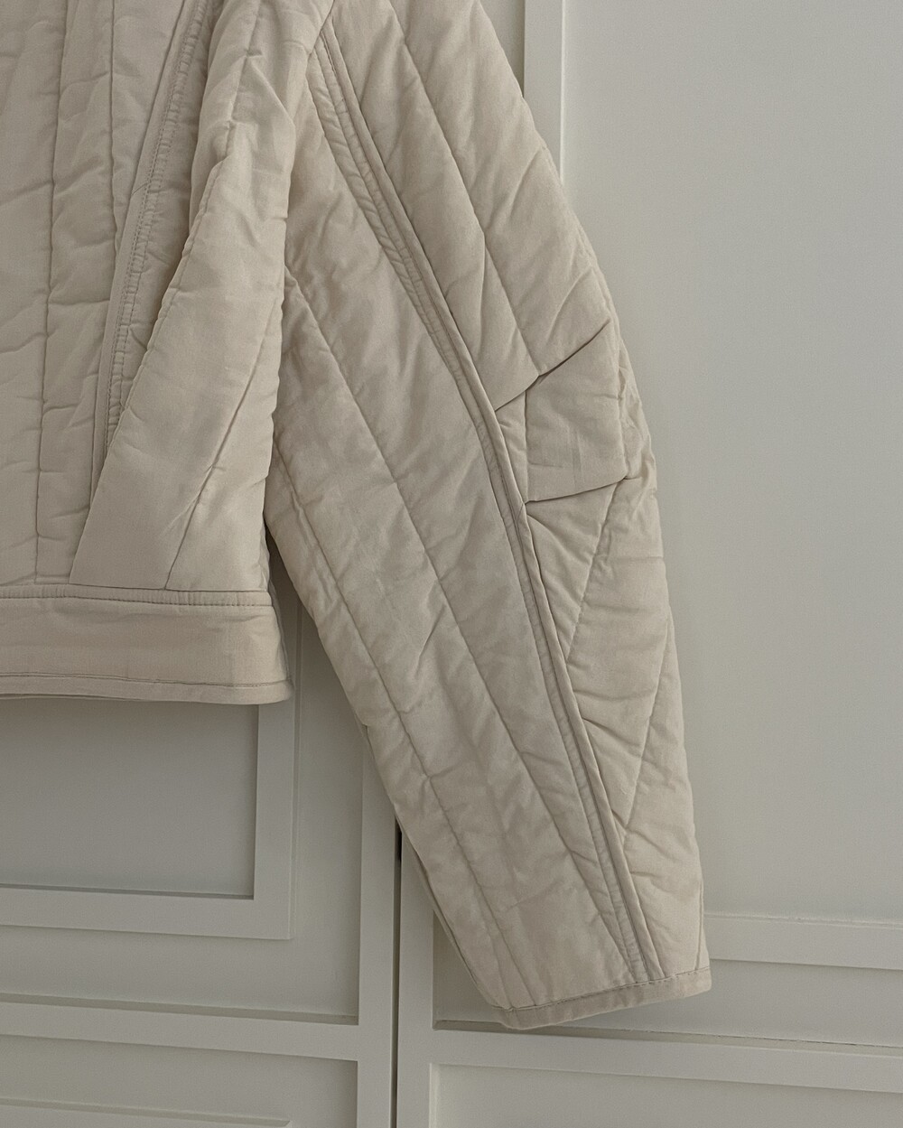 완만한 곡선의 구조적 실루엣이 매력적인 퀼팅 면 양면 점퍼입니다.