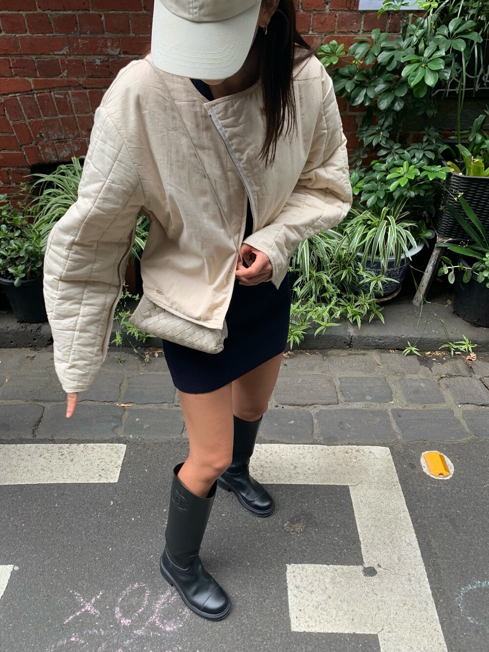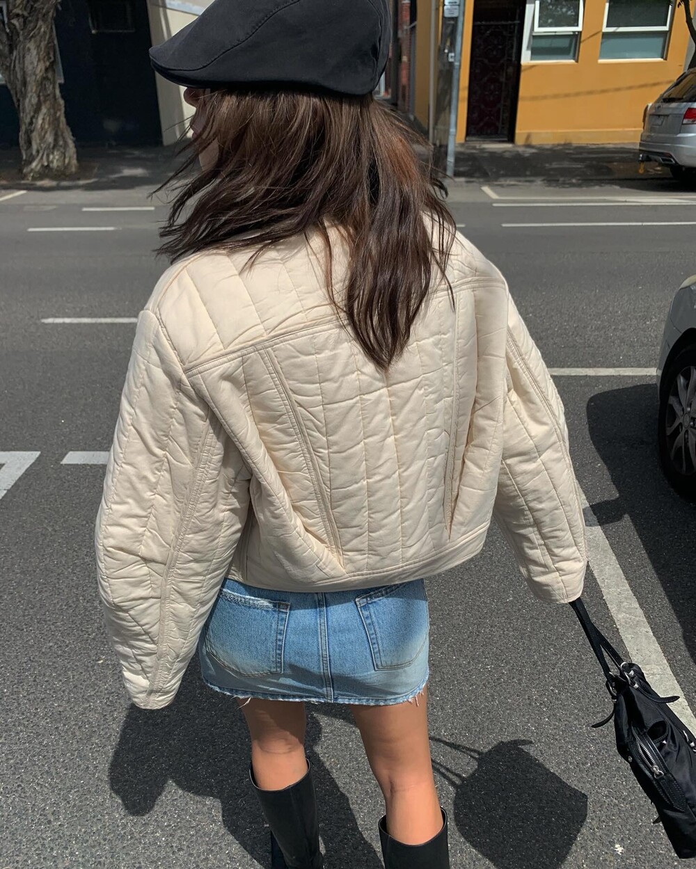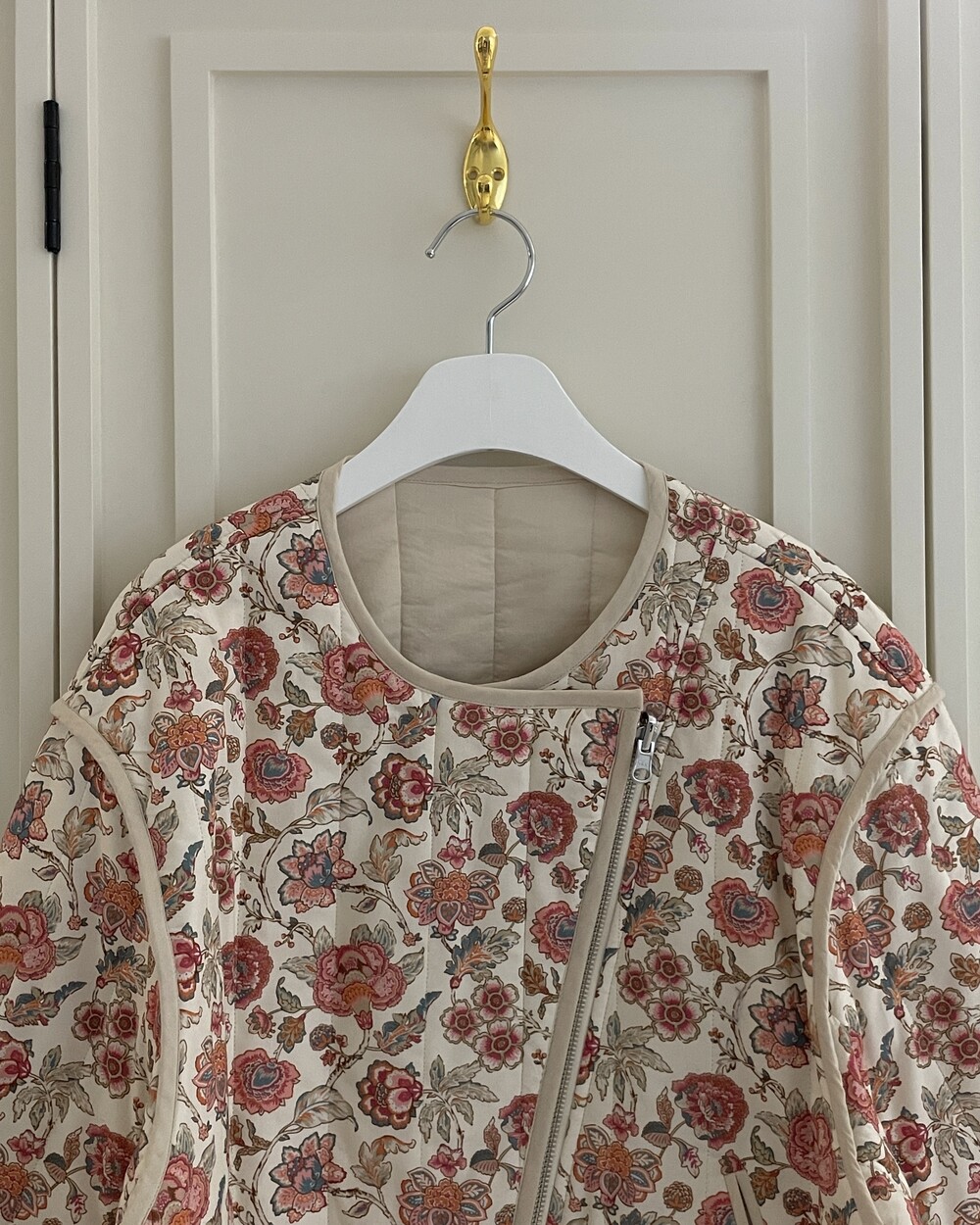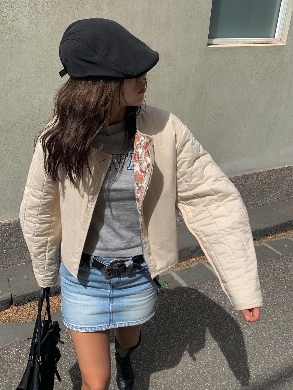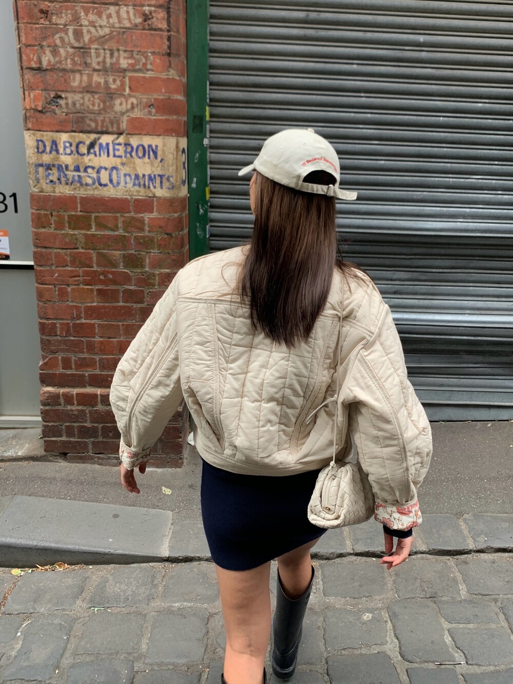 완만한 곡선의 구조적 실루엣이 매력적인 퀼팅 면 양면 점퍼입니다.
