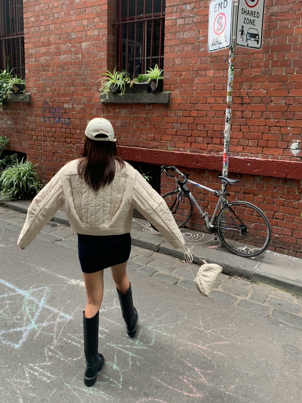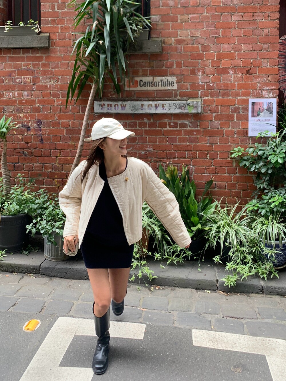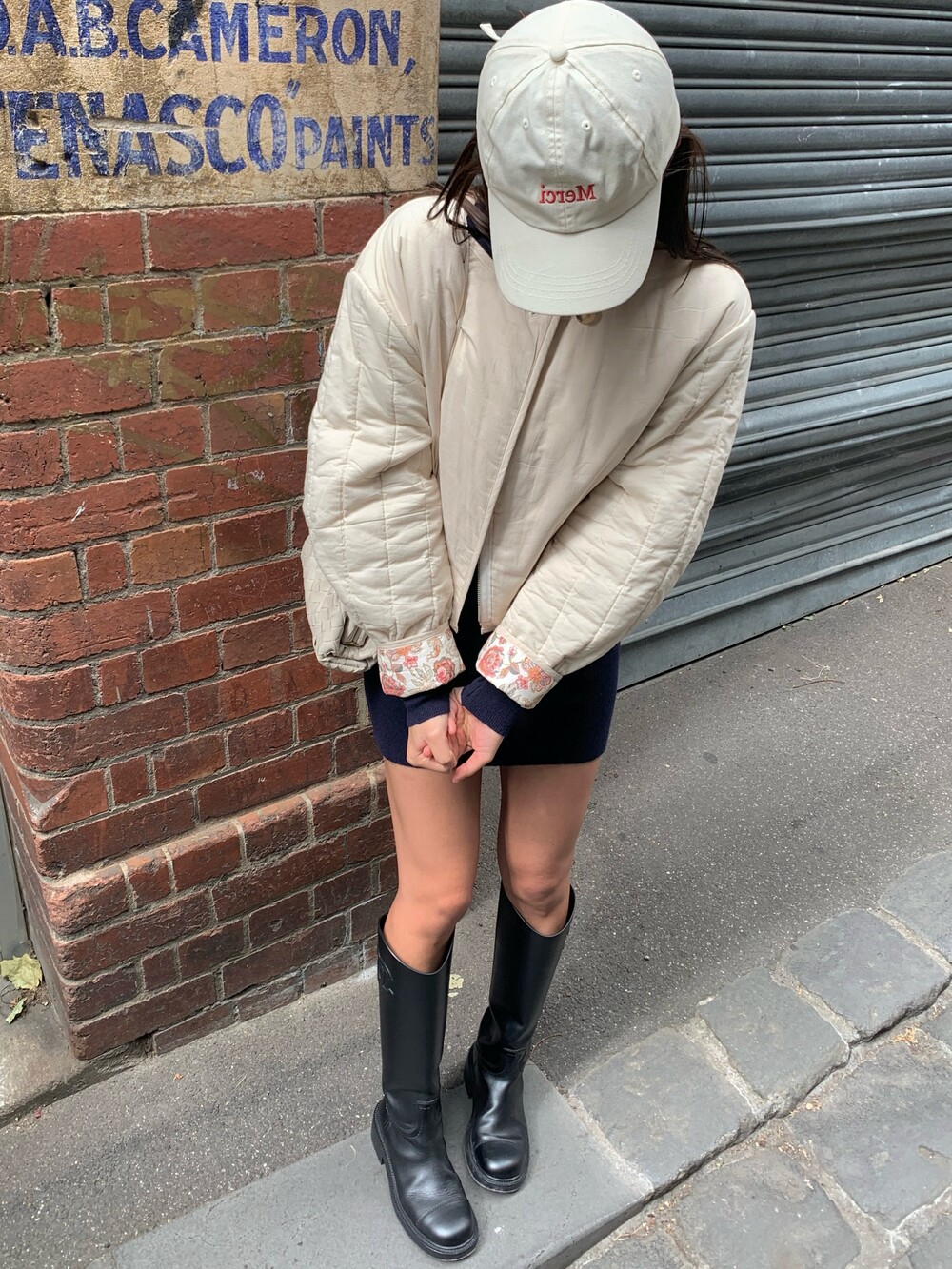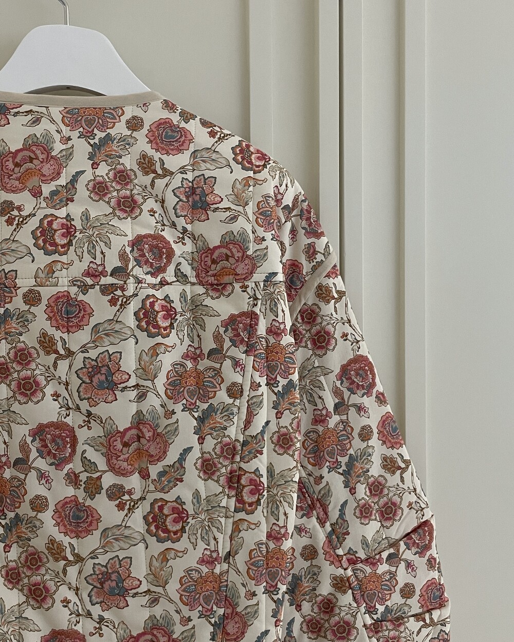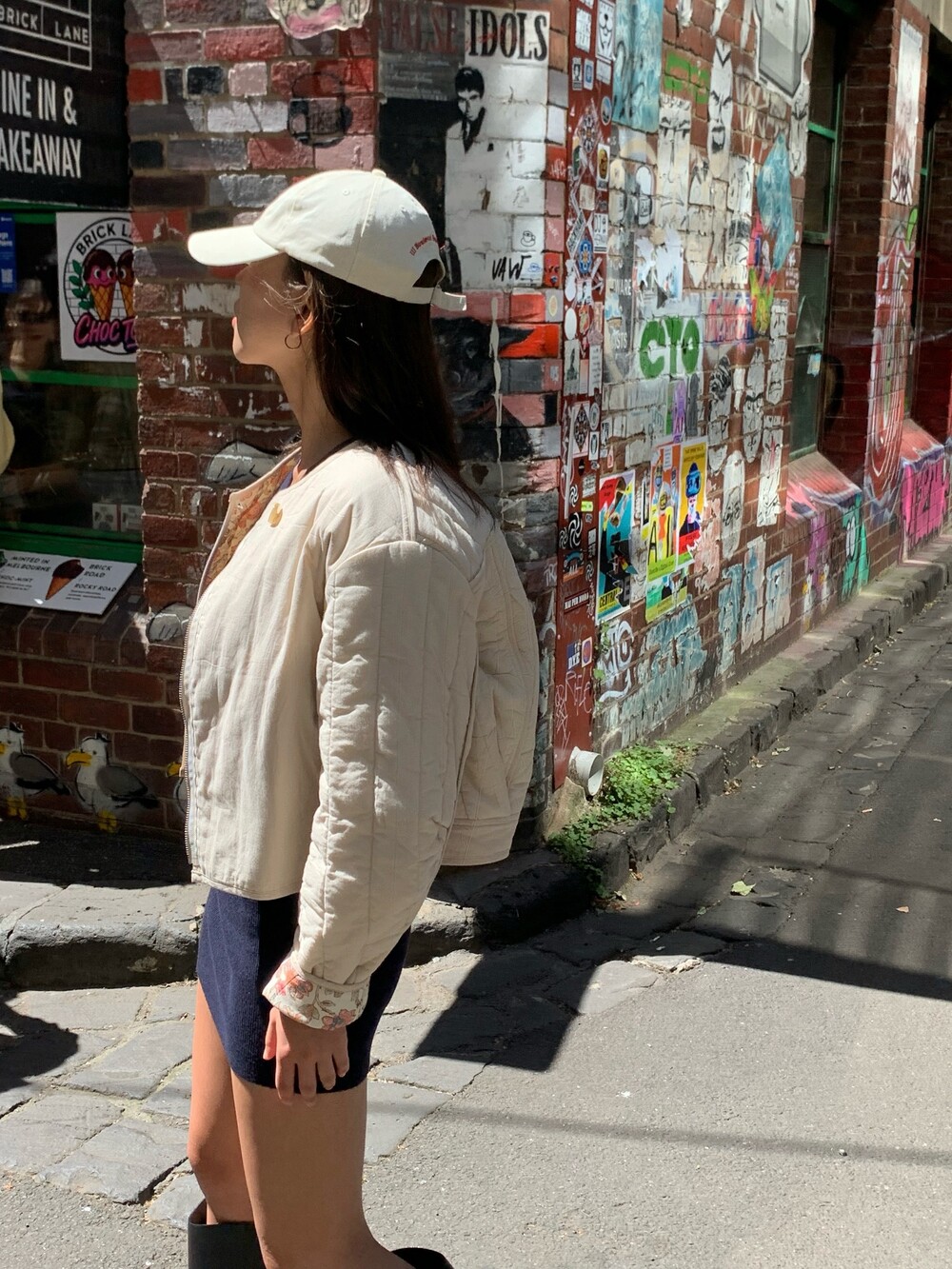 완만한 곡선의 구조적 실루엣이 매력적인 퀼팅 면 양면 점퍼입니다.