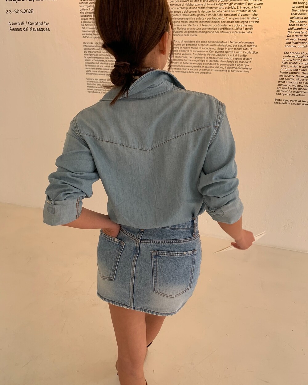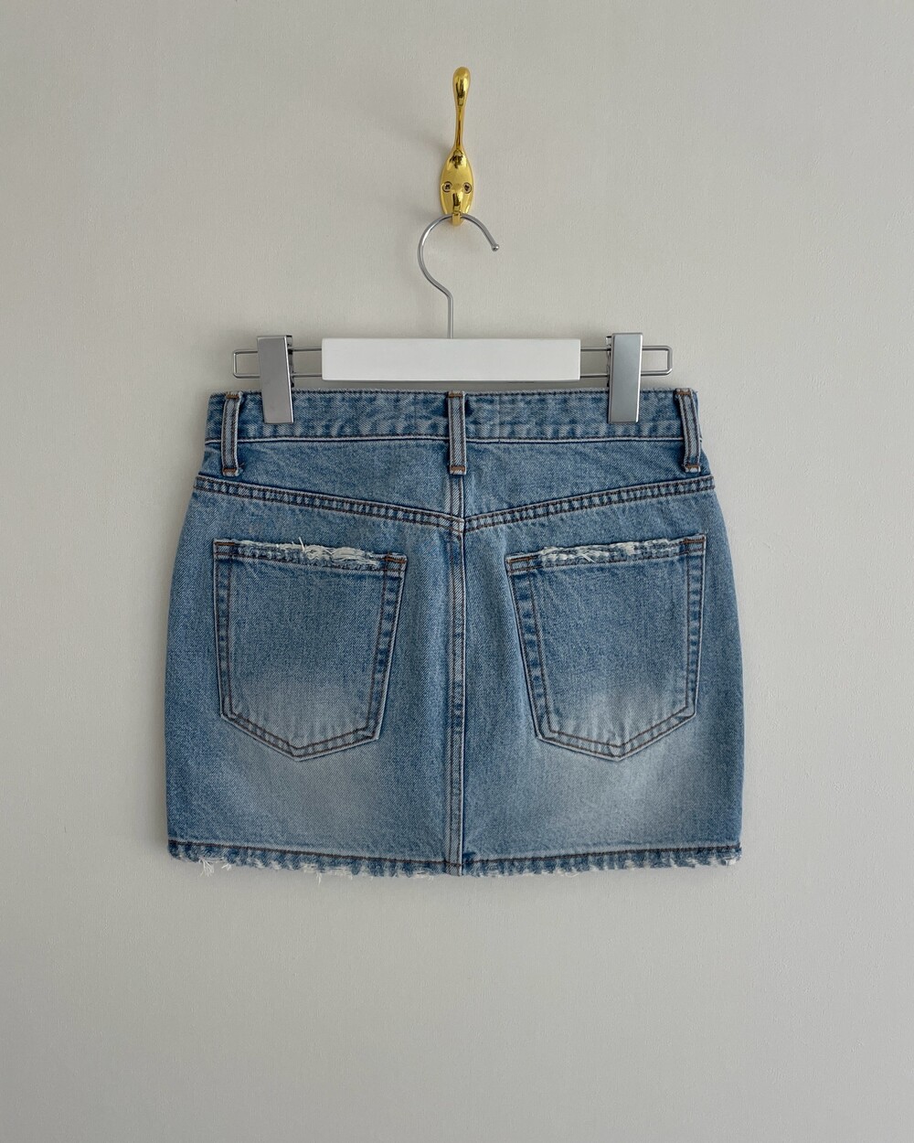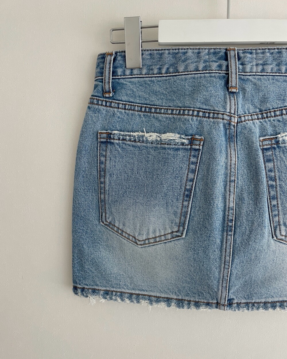 SK ALDO는 허리라인 아주 여유롭게 미드웨이스트로 고려한 정통 데님 워싱 기법을 가미한 미니 스커트 라인이에요.