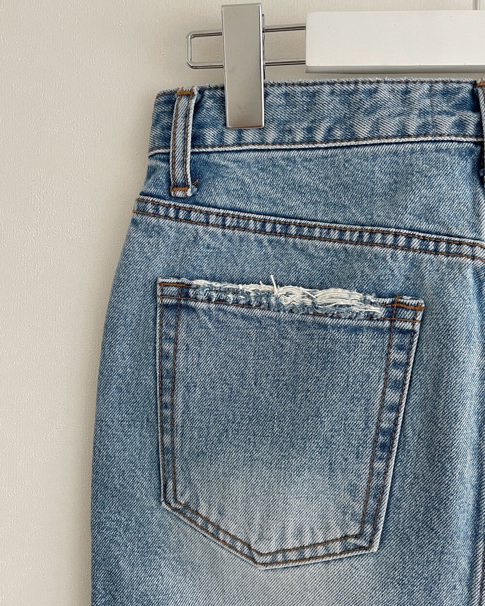 대부분 밑단이 러우엣지로 뚝 잘려있거나 데미지가 너무 강하거나 워싱이 되다 만 느낌에 어설퍼 폼나질 않지요.