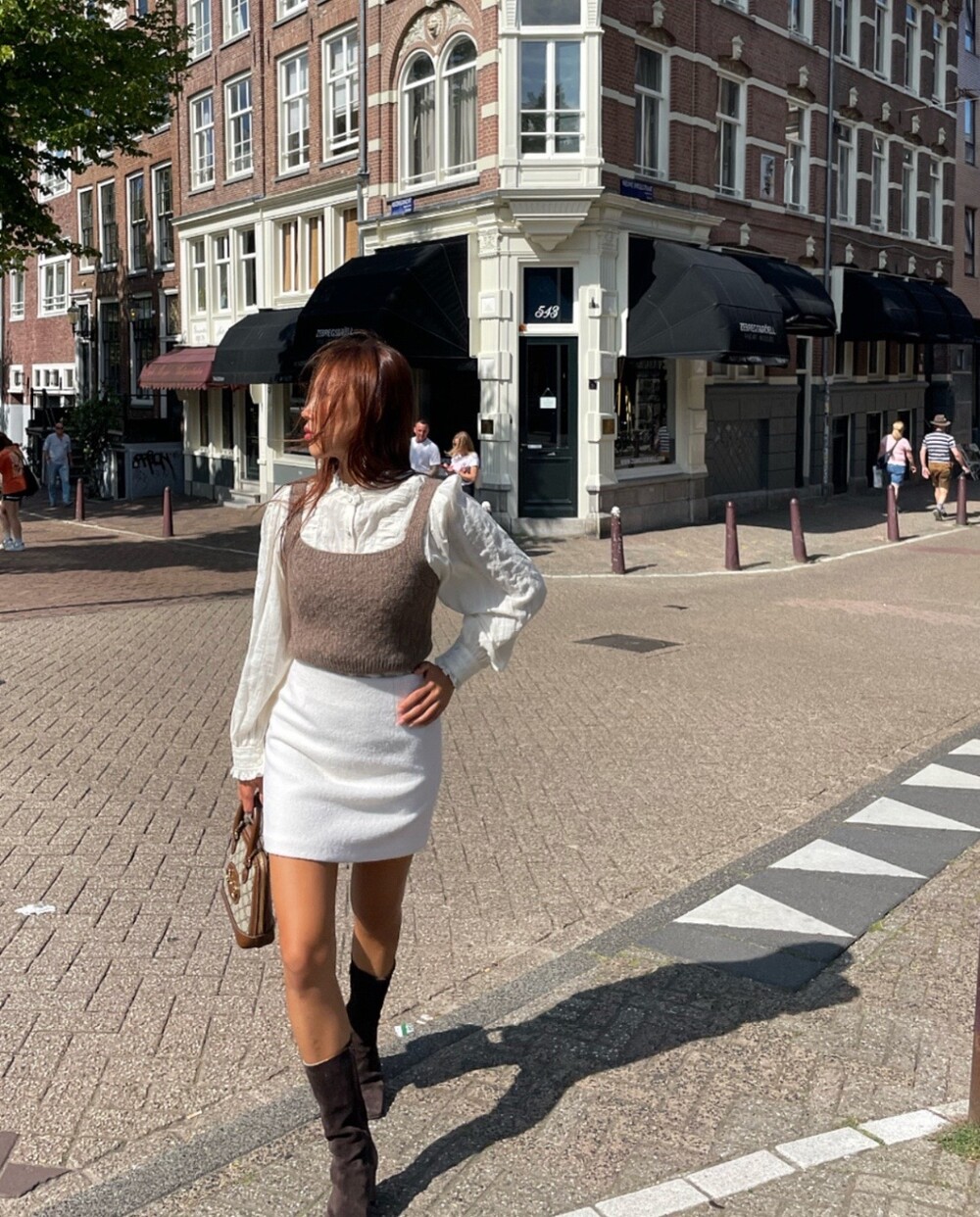 정직한 스퀘어 라인의 잘 만들어진 니트베스트.