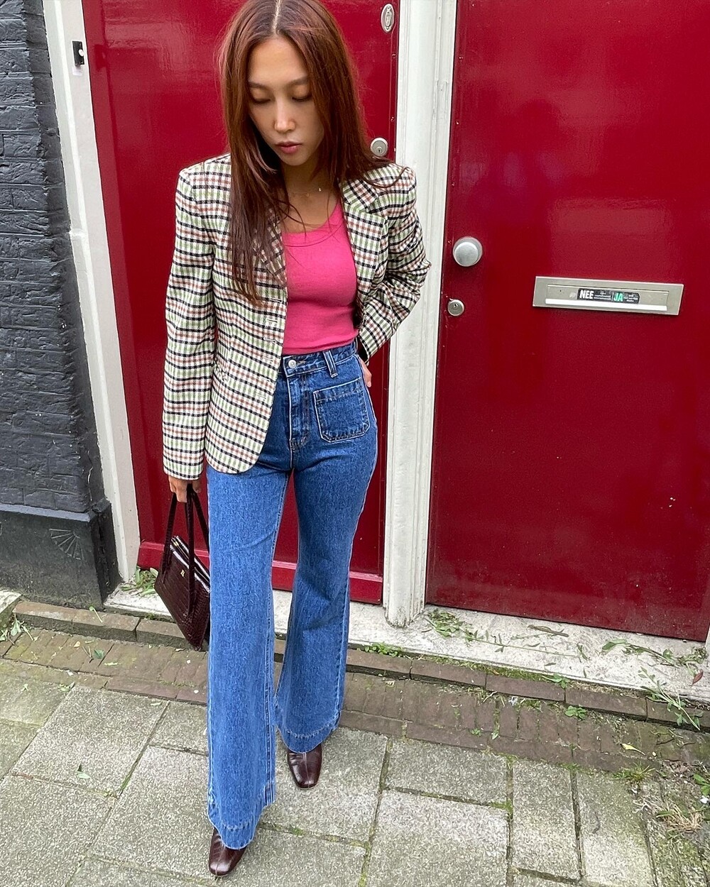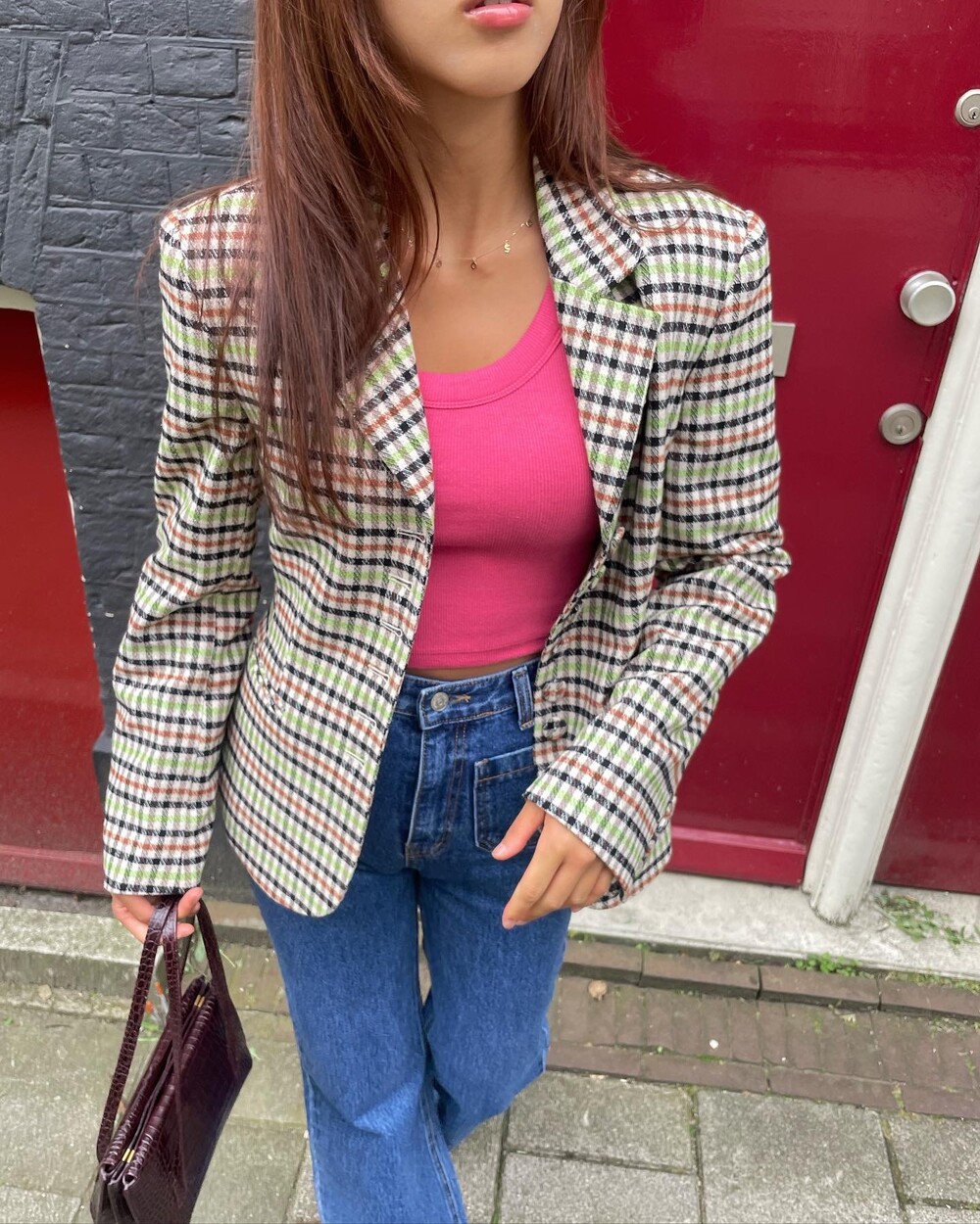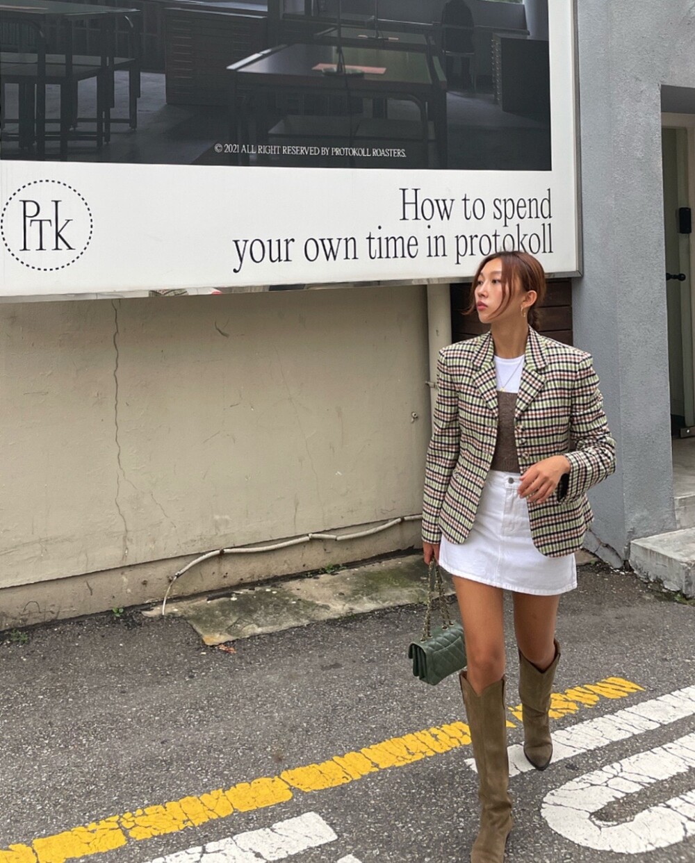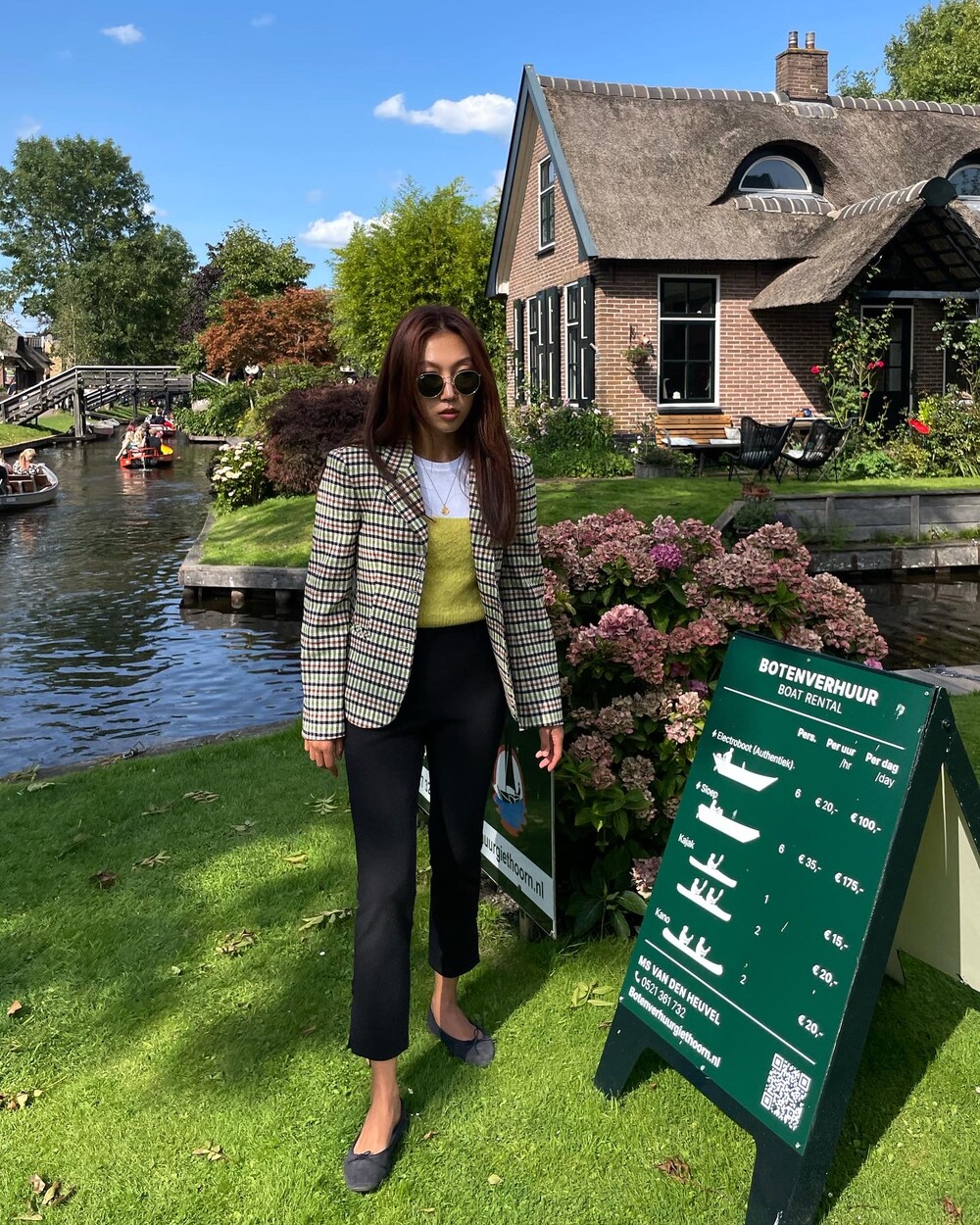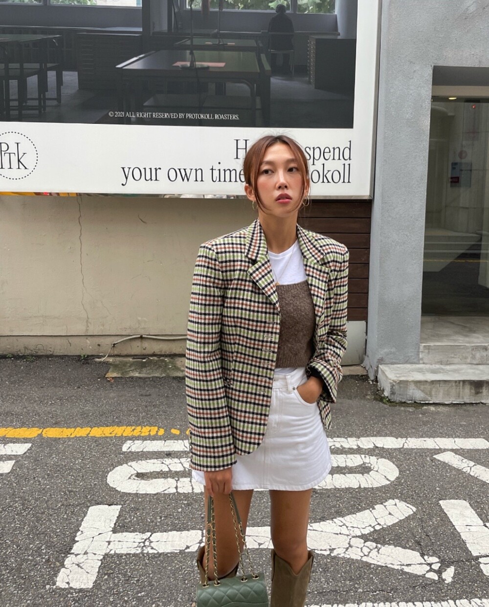 아오리사과의 청량한 라이트그린을 어찌 이렇게 대담하게 풀었는지! 존재감 강한 컬러를 카멜과 블랙, 아이보리 류로 눌러주며 무게감을 더했는데 아주 이국적이면서 귀티납니다.