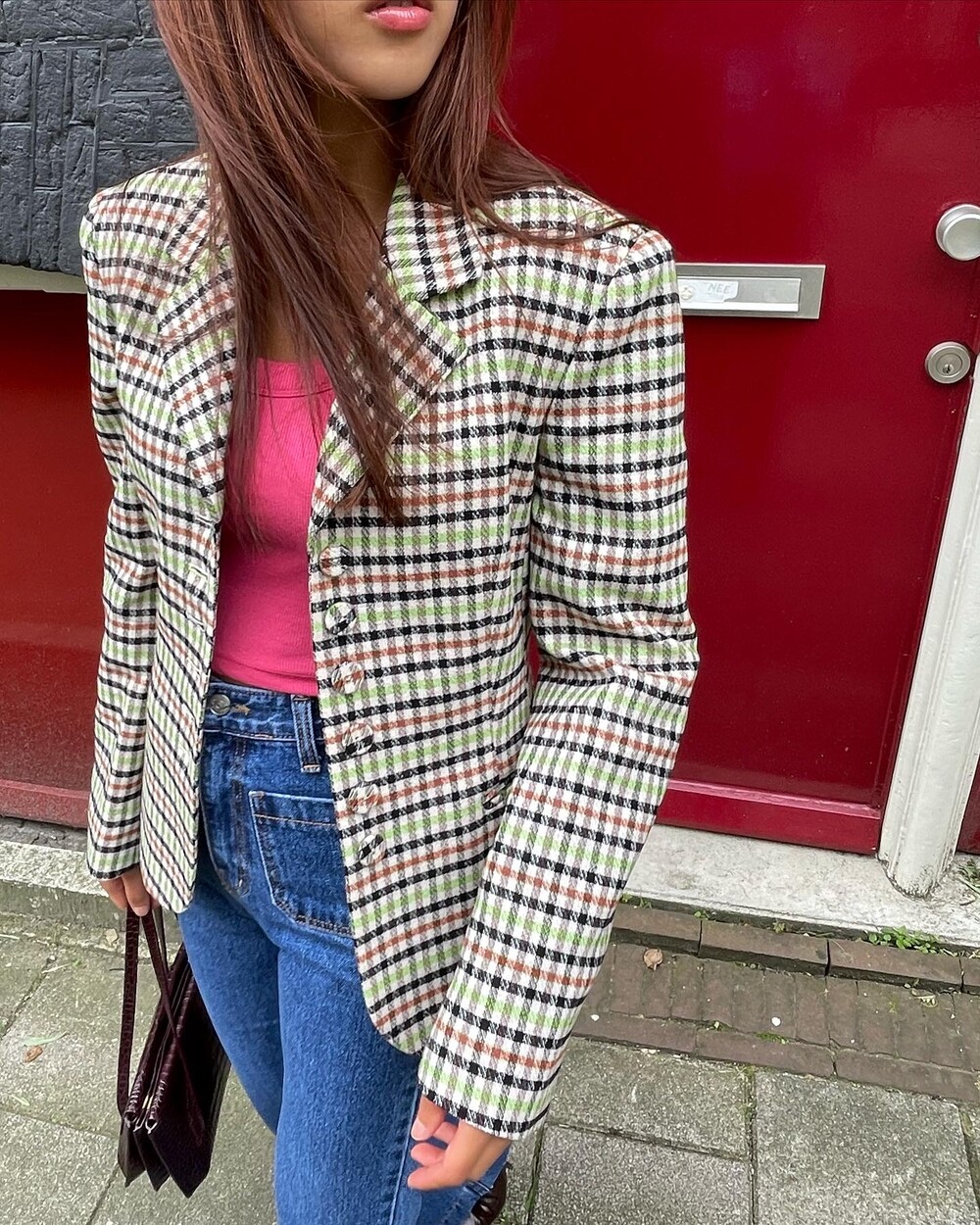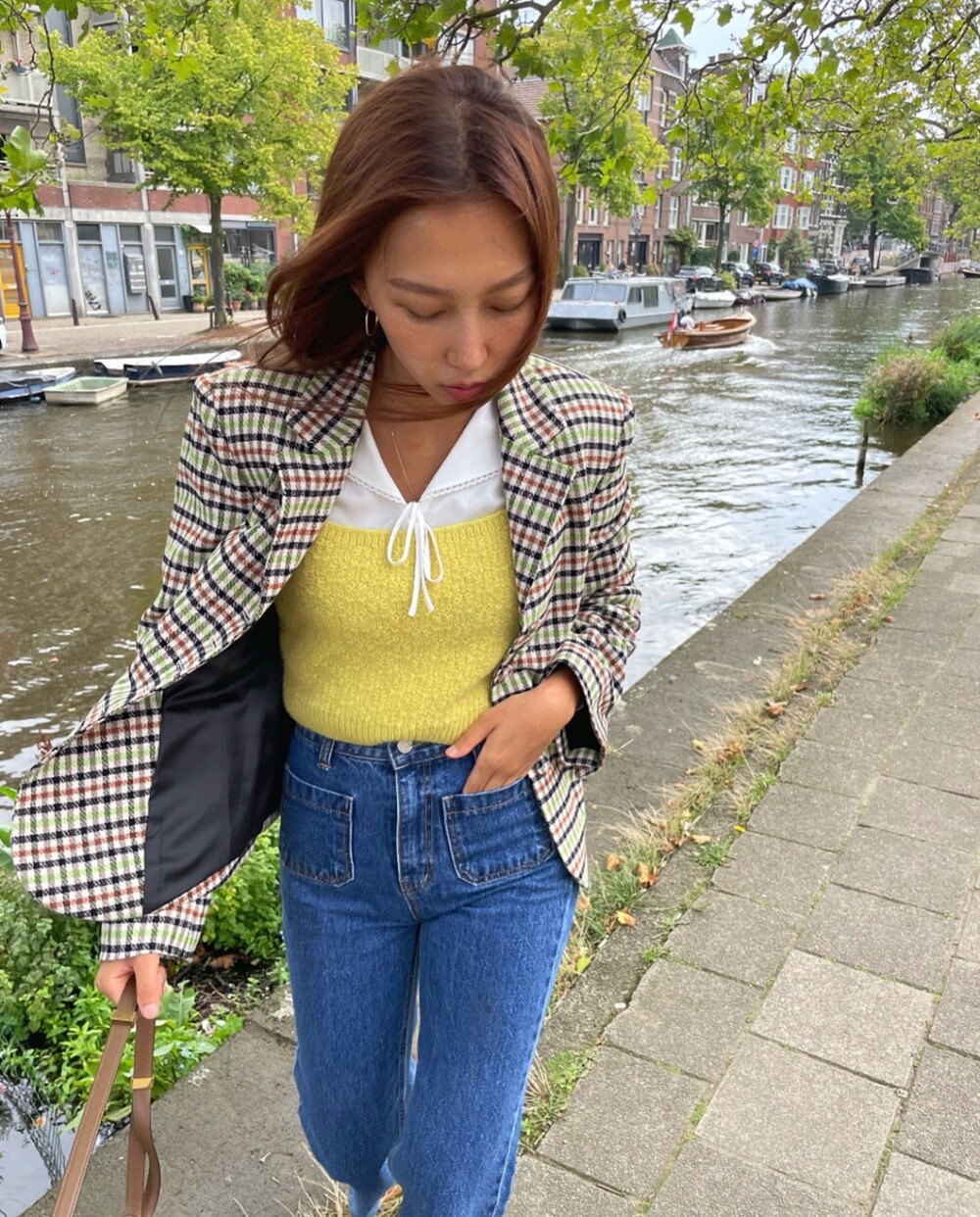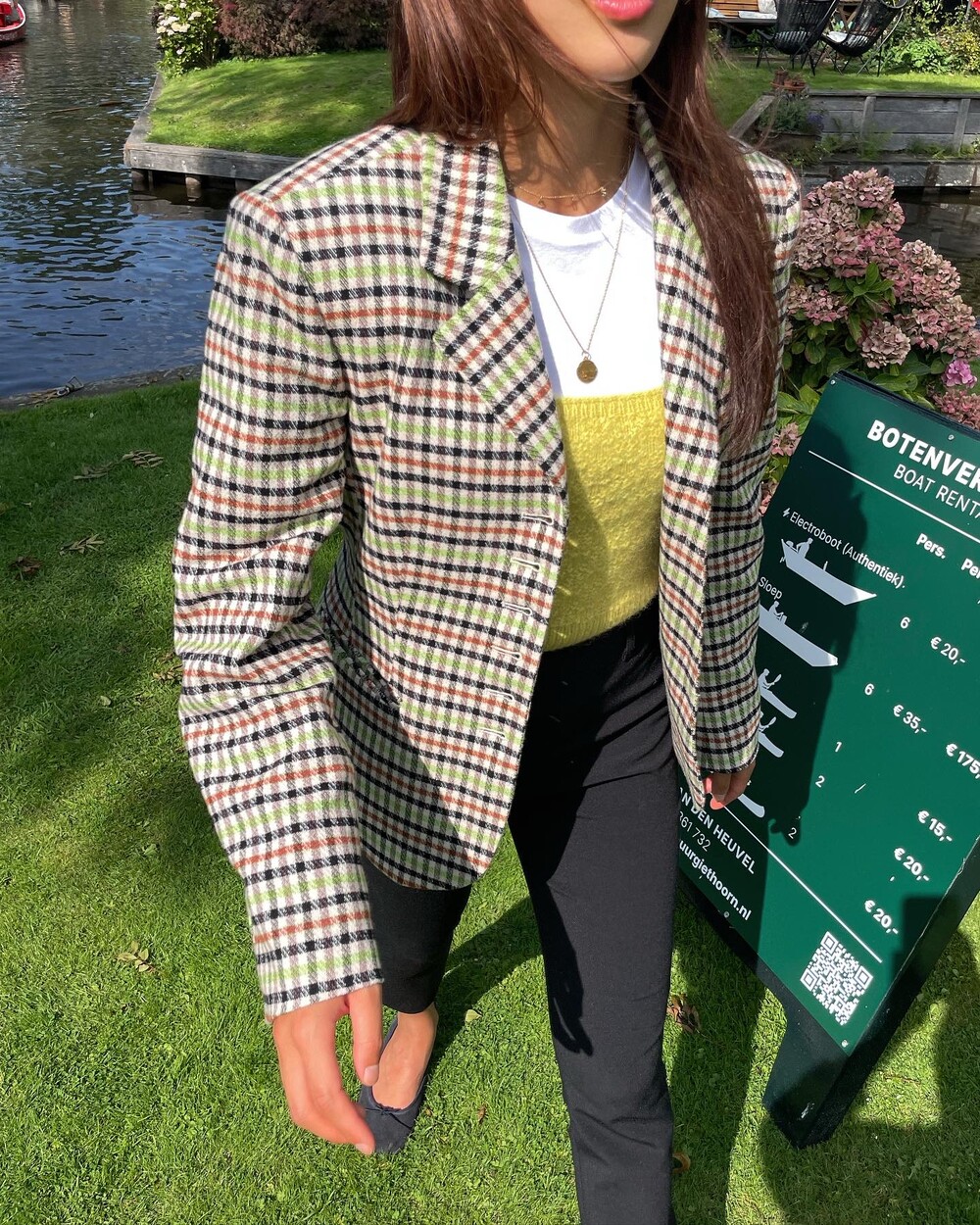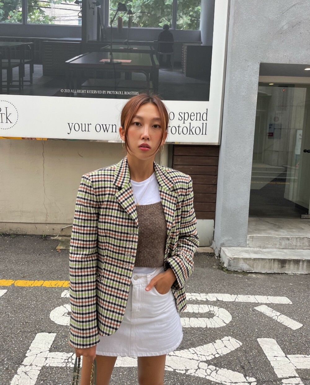 아오리사과의 청량한 라이트그린을 어찌 이렇게 대담하게 풀었는지! 존재감 강한 컬러를 카멜과 블랙, 아이보리 류로 눌러주며 무게감을 더했는데 아주 이국적이면서 귀티납니다.