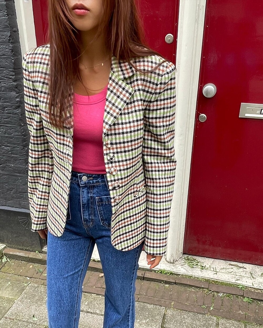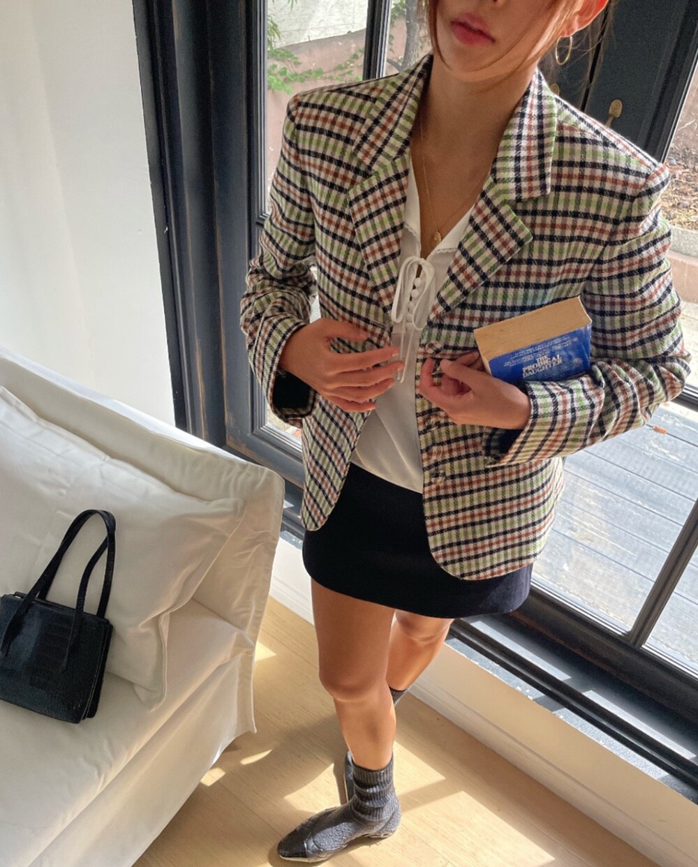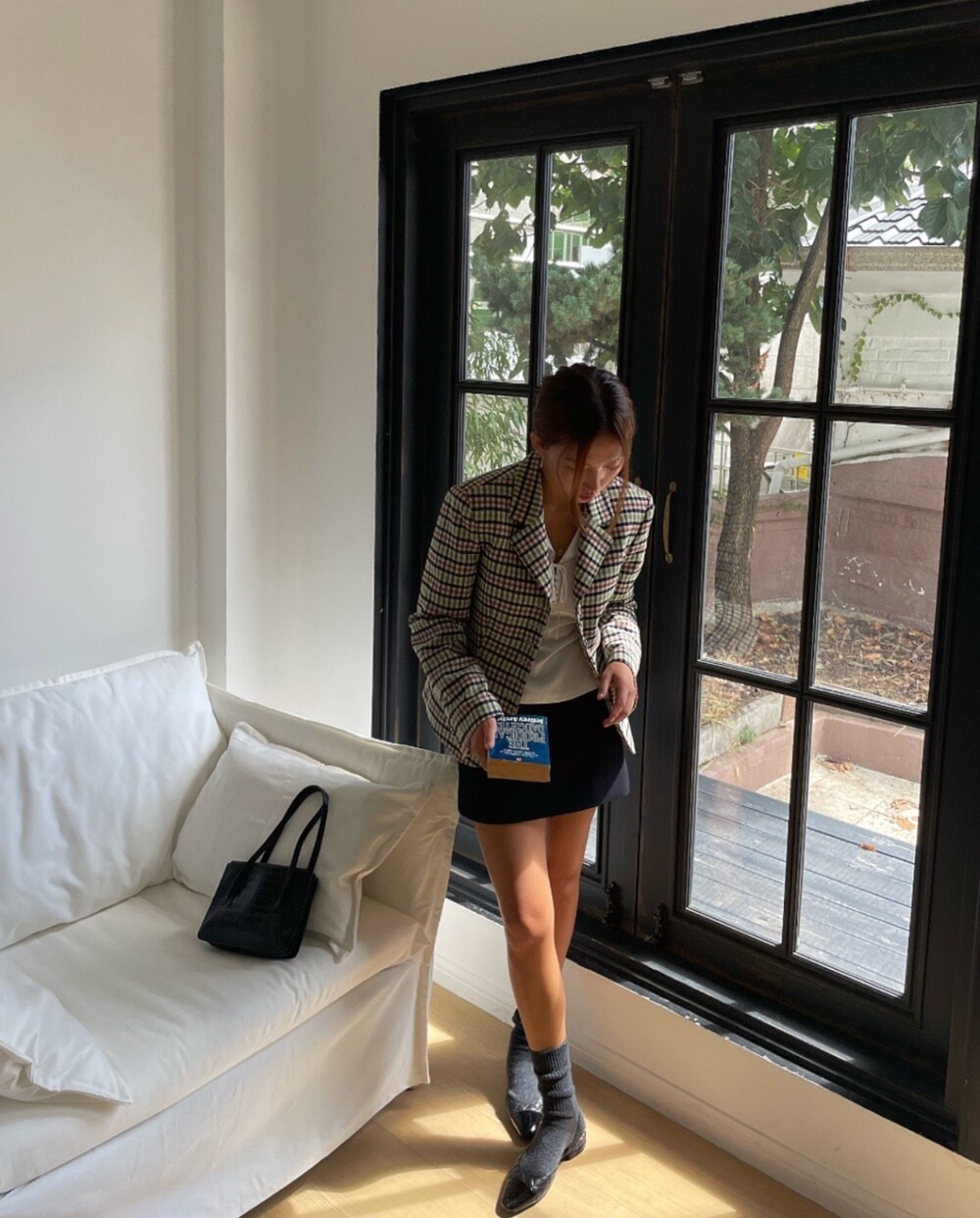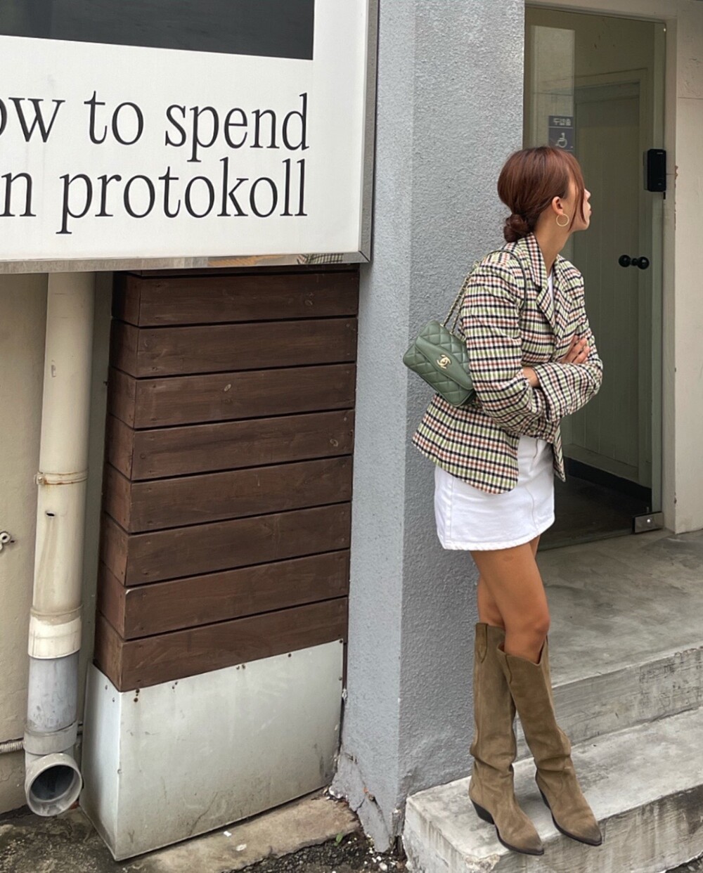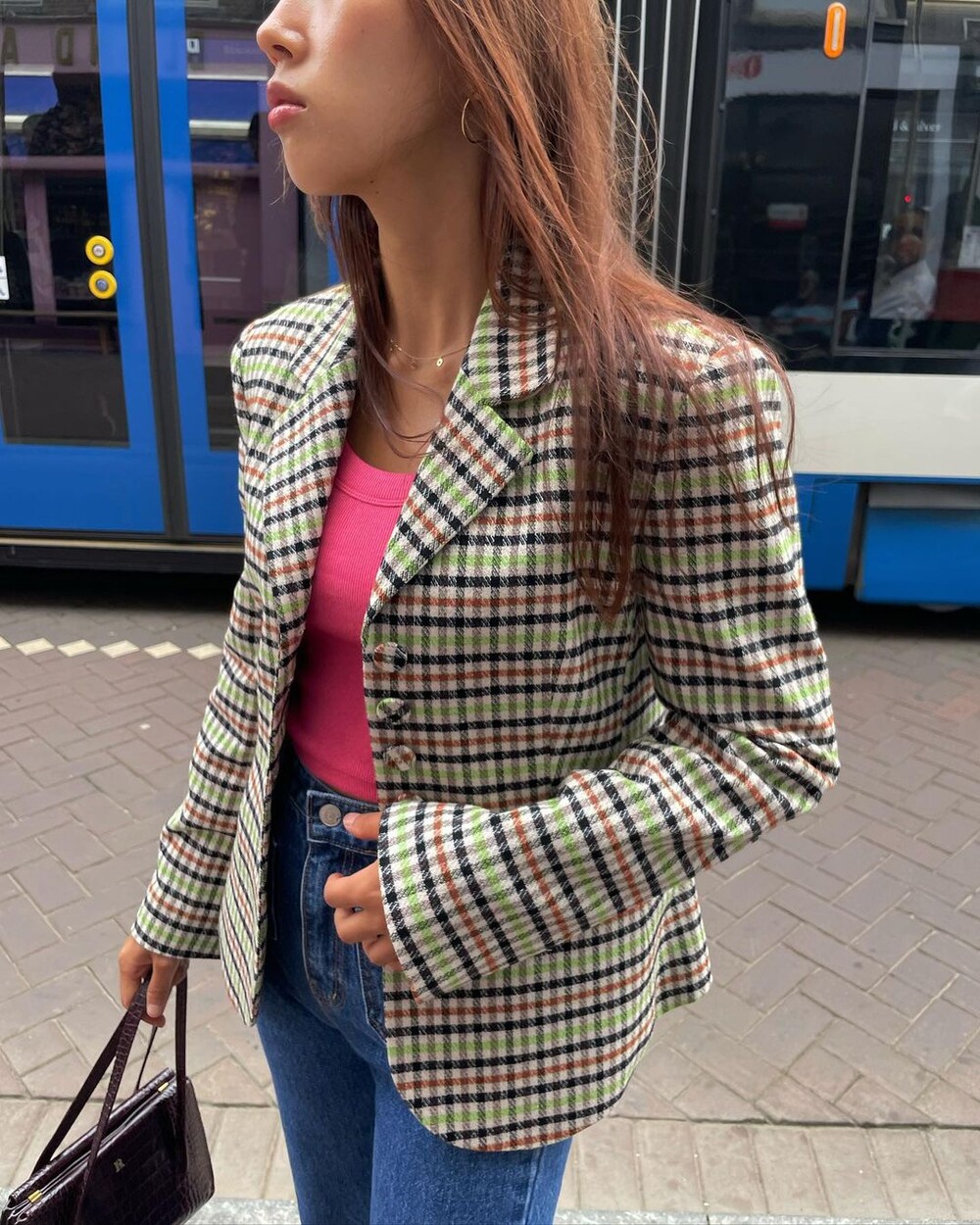 아오리사과의 청량한 라이트그린을 어찌 이렇게 대담하게 풀었는지! 존재감 강한 컬러를 카멜과 블랙, 아이보리 류로 눌러주며 무게감을 더했는데 아주 이국적이면서 귀티납니다.