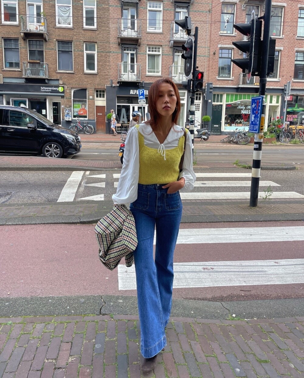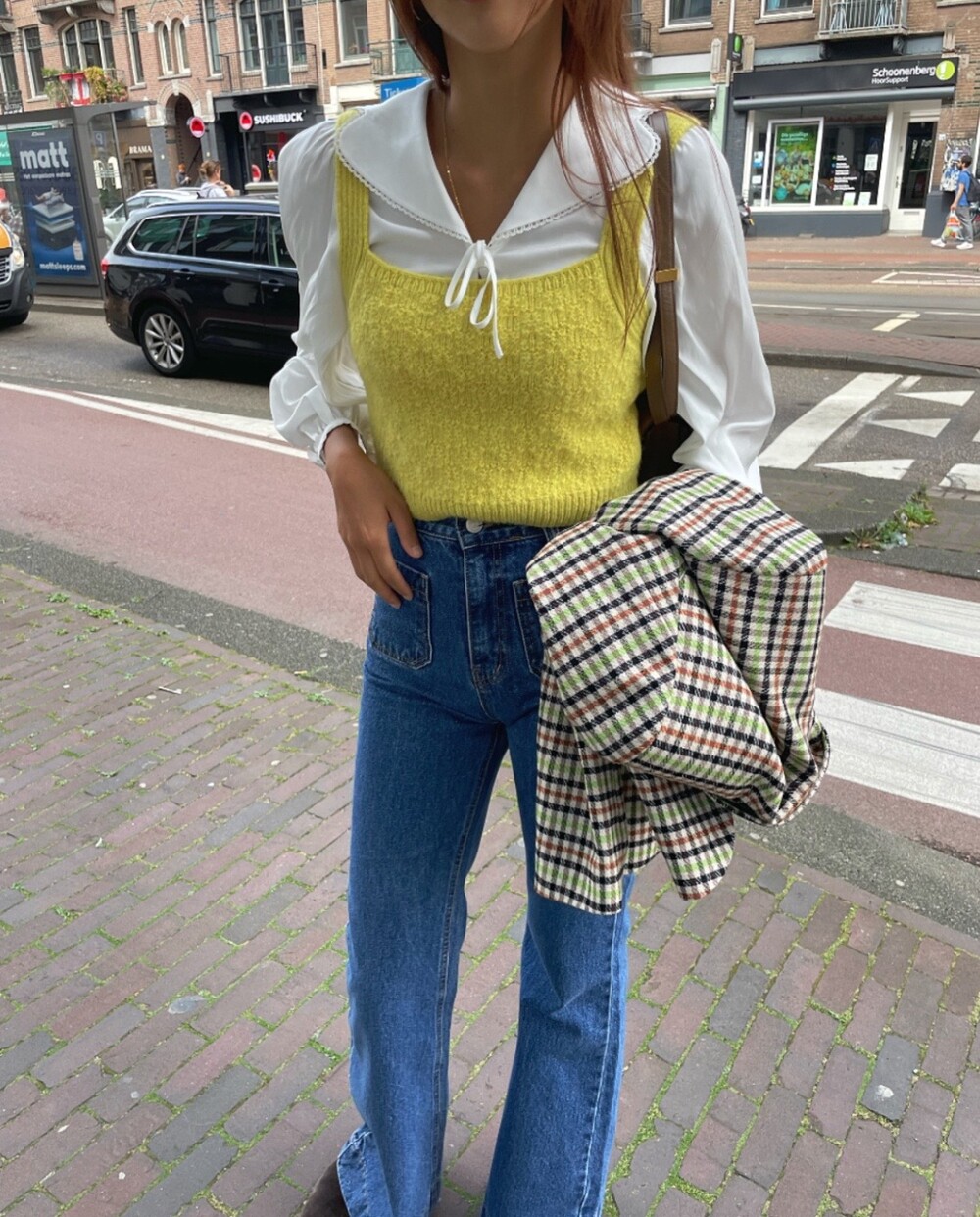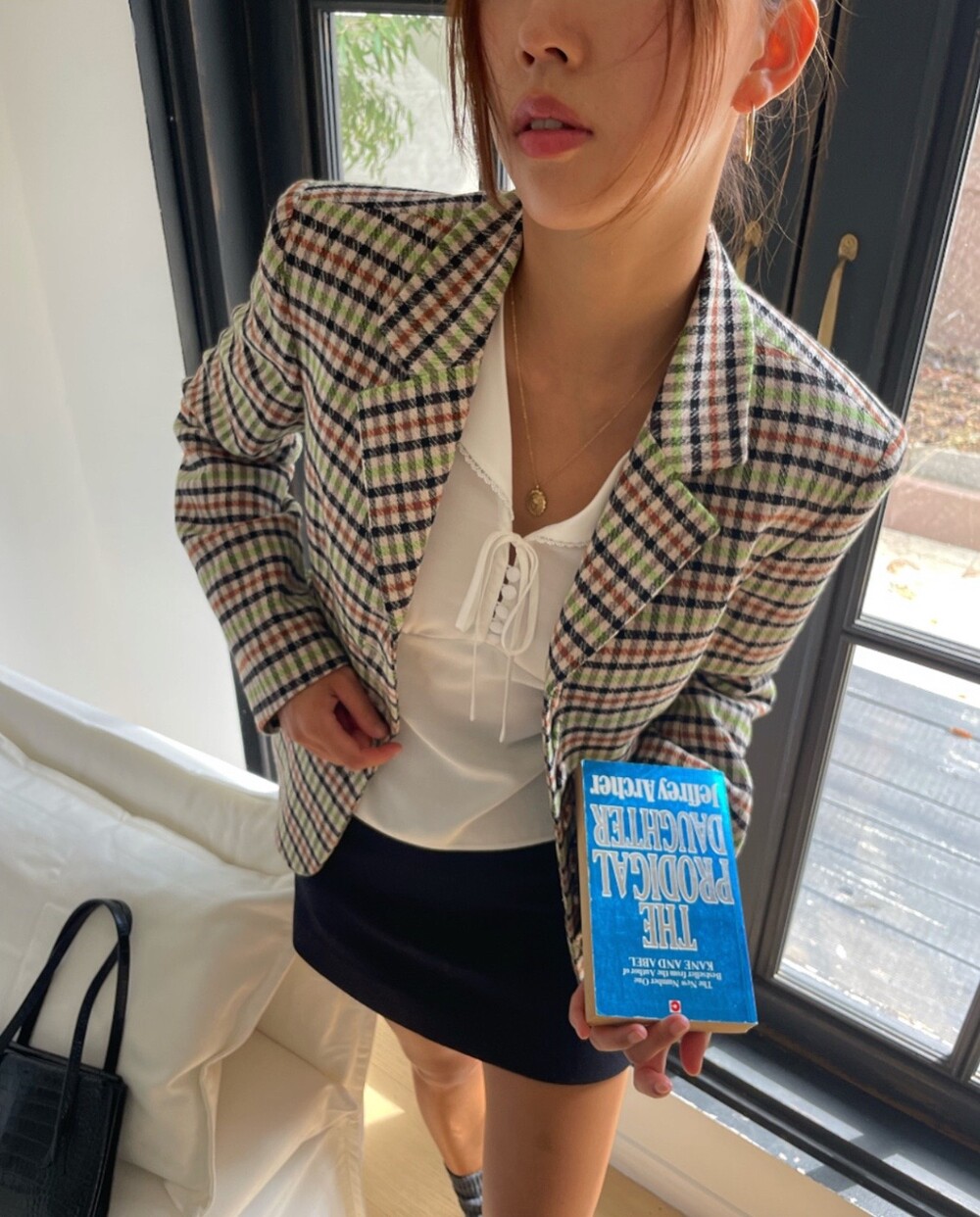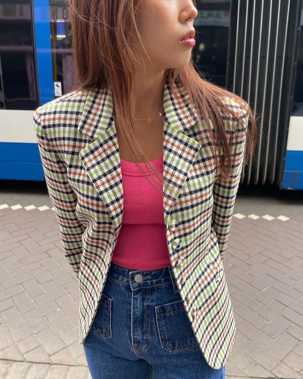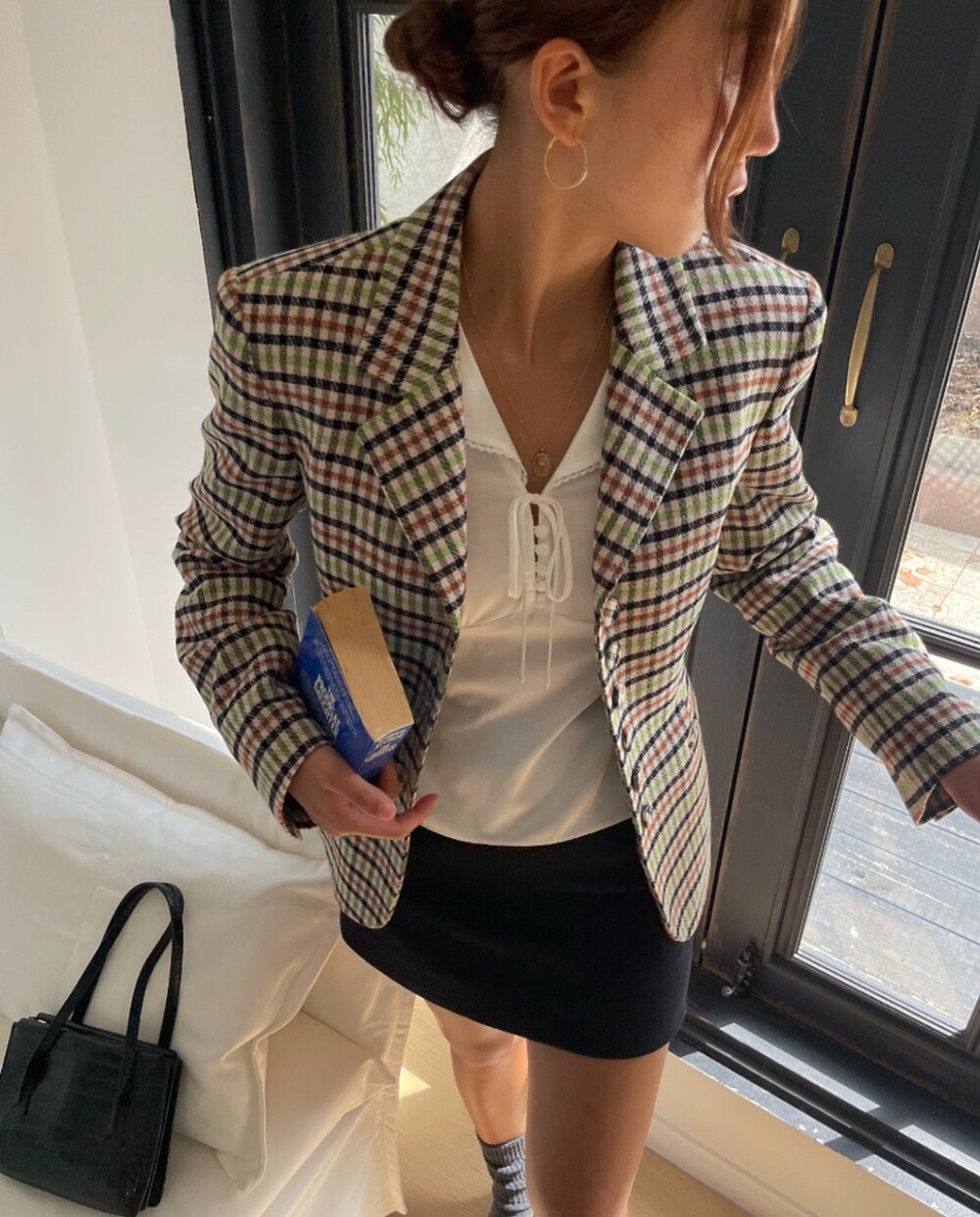 아오리사과의 청량한 라이트그린을 어찌 이렇게 대담하게 풀었는지! 존재감 강한 컬러를 카멜과 블랙, 아이보리 류로 눌러주며 무게감을 더했는데 아주 이국적이면서 귀티납니다.