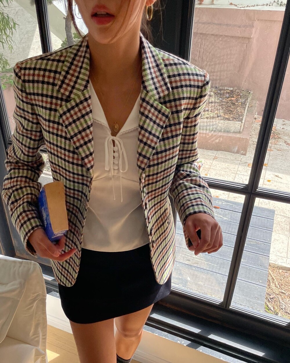 어렴풋 맛만 내는 자켓 말고 샤프하다고 표현할 수 있을만큼 허리라인을 잘록하게 잡아주는 아워글래스라인.