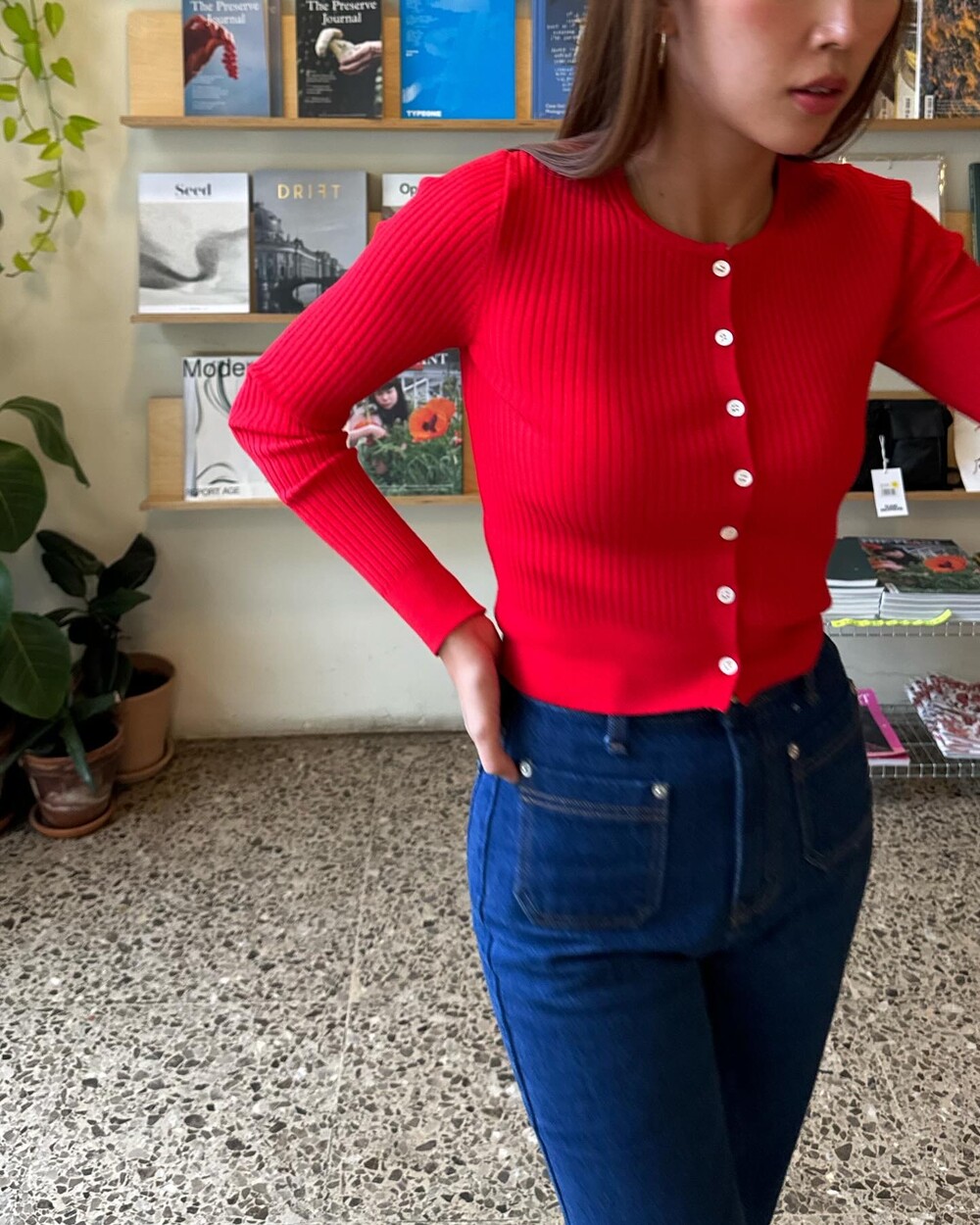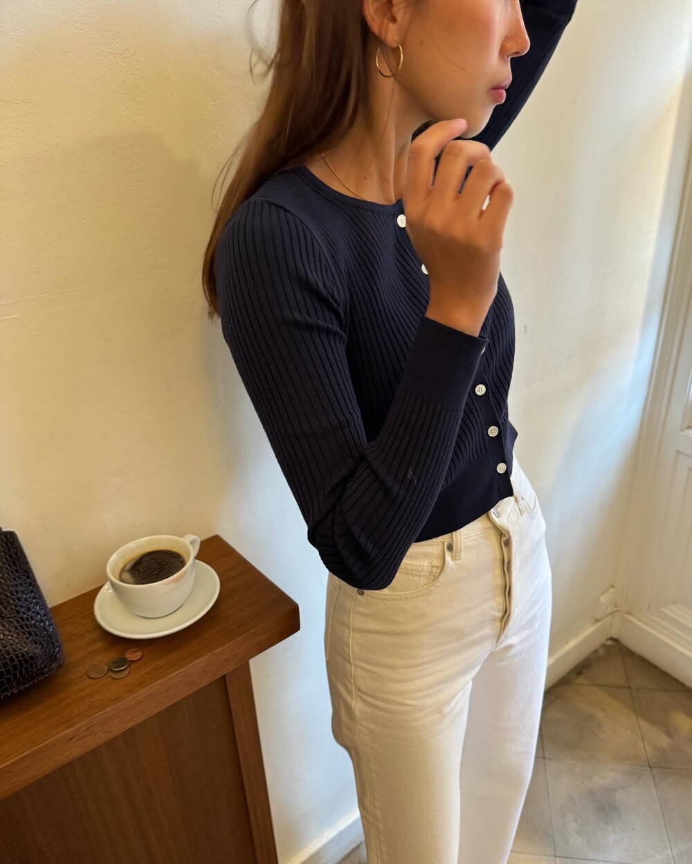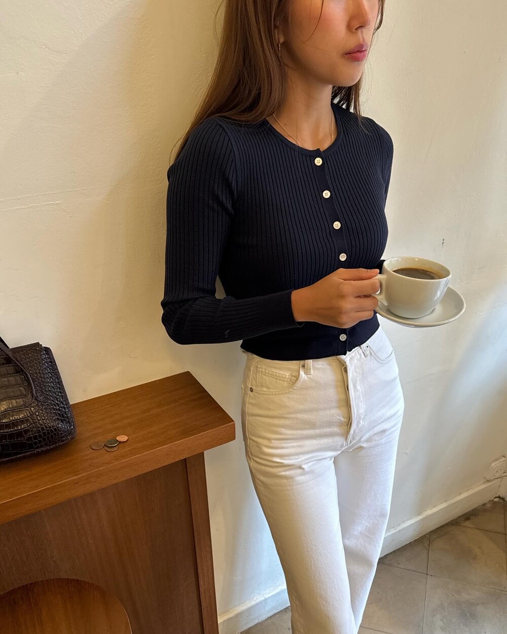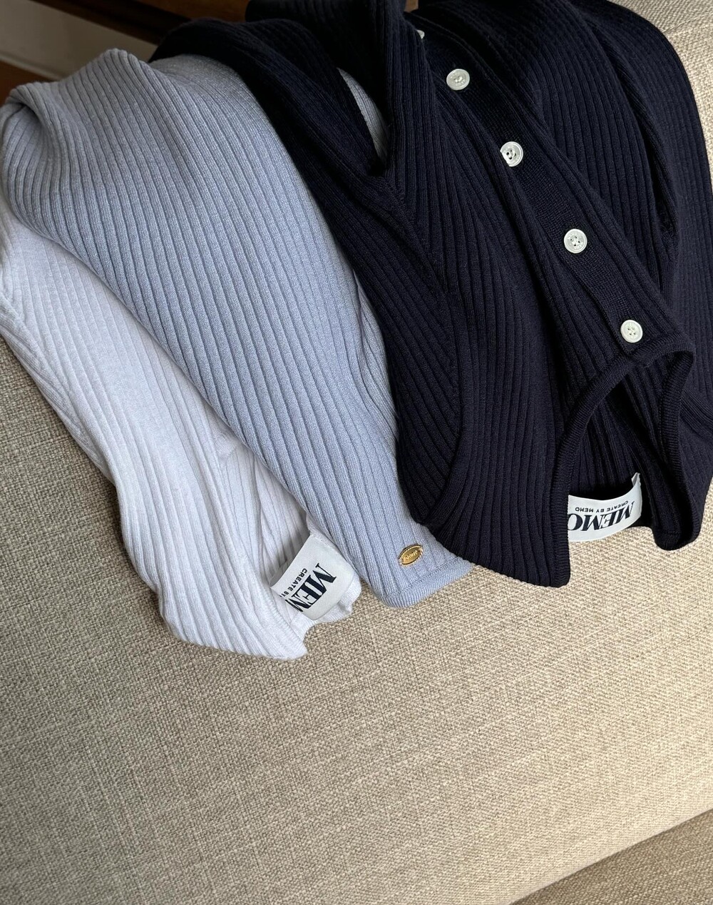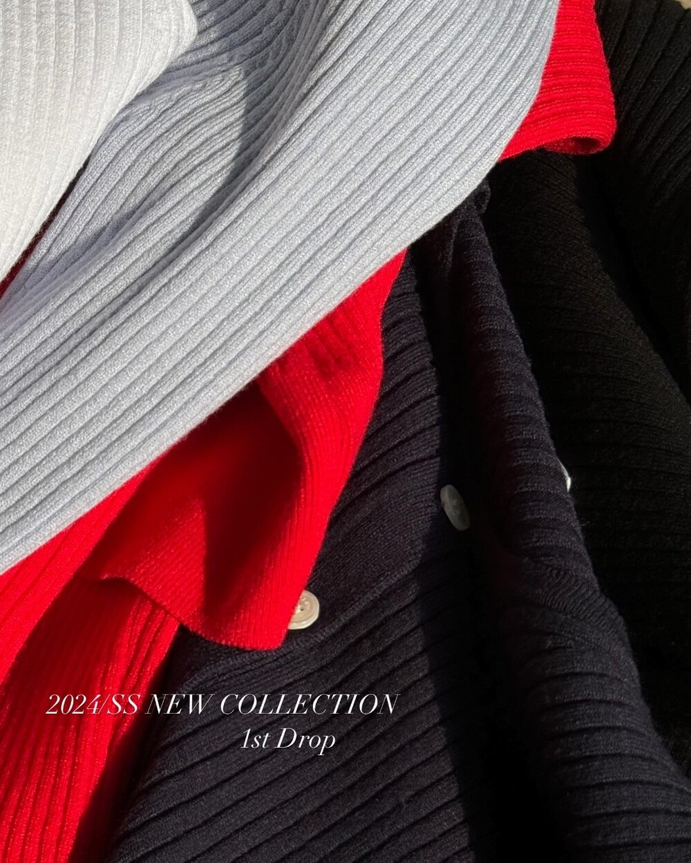 국내 편직 가능하다는 니트사 섭외하여 시중의 보편화된 ‘골지가디건’ 이라는 것 보다 조금 더 밀도 높여 16GG로, 거기다 짜임 스타일에도 조금 변형을 두어 생산했는데요. 만드는 과정이 까다로워 그렇지 어느 컬러 하나 비침으로 속썩이는 것 없이 태좋고 맵시나게 예뻤습니다. 한참 입고 툭 벗어도 모양새 유지 꽤 잘 되었구요.