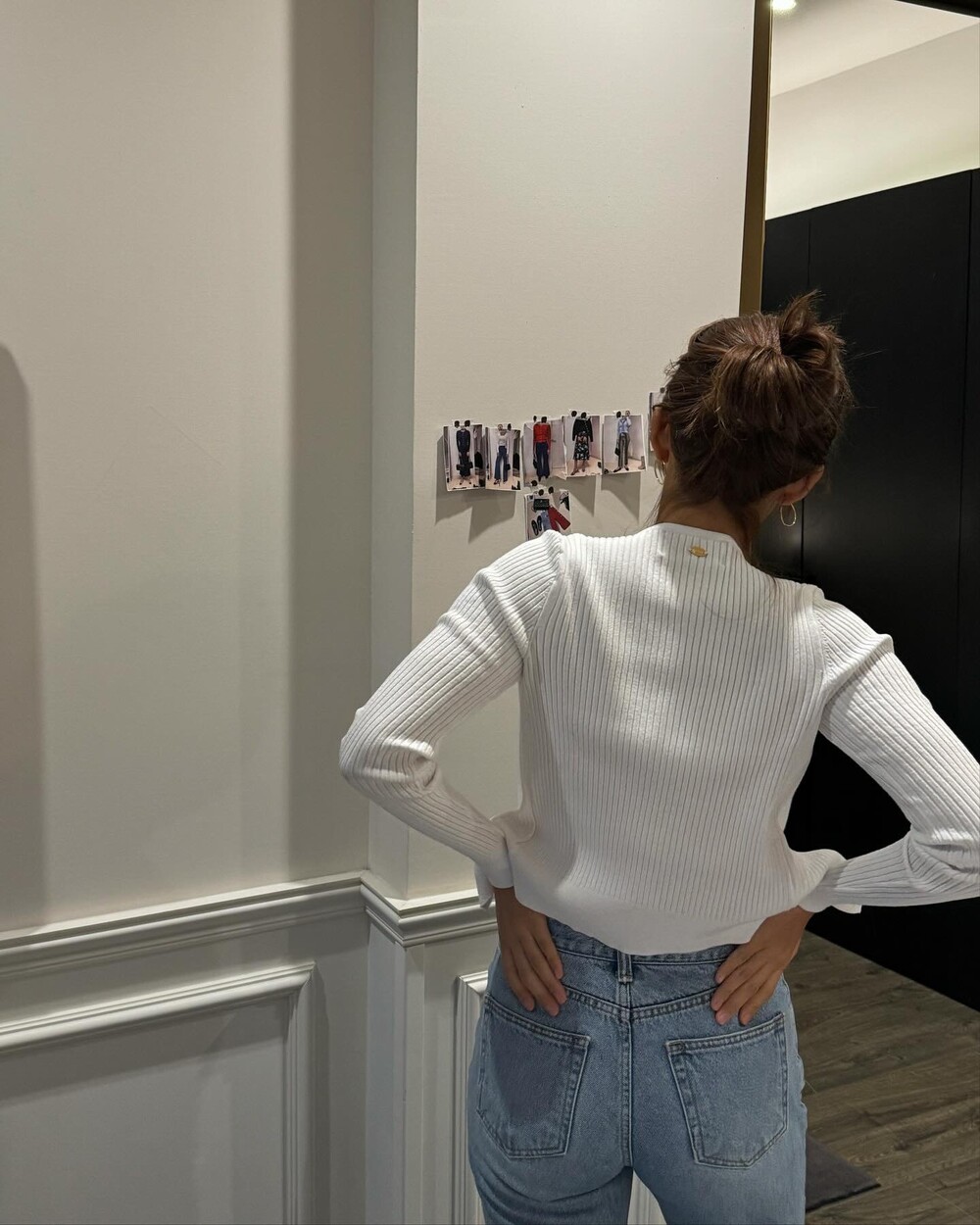 백 네크라인 즈음 24k 도금 라벨장식 얹어주니 단정하고 부티까지 나네요.