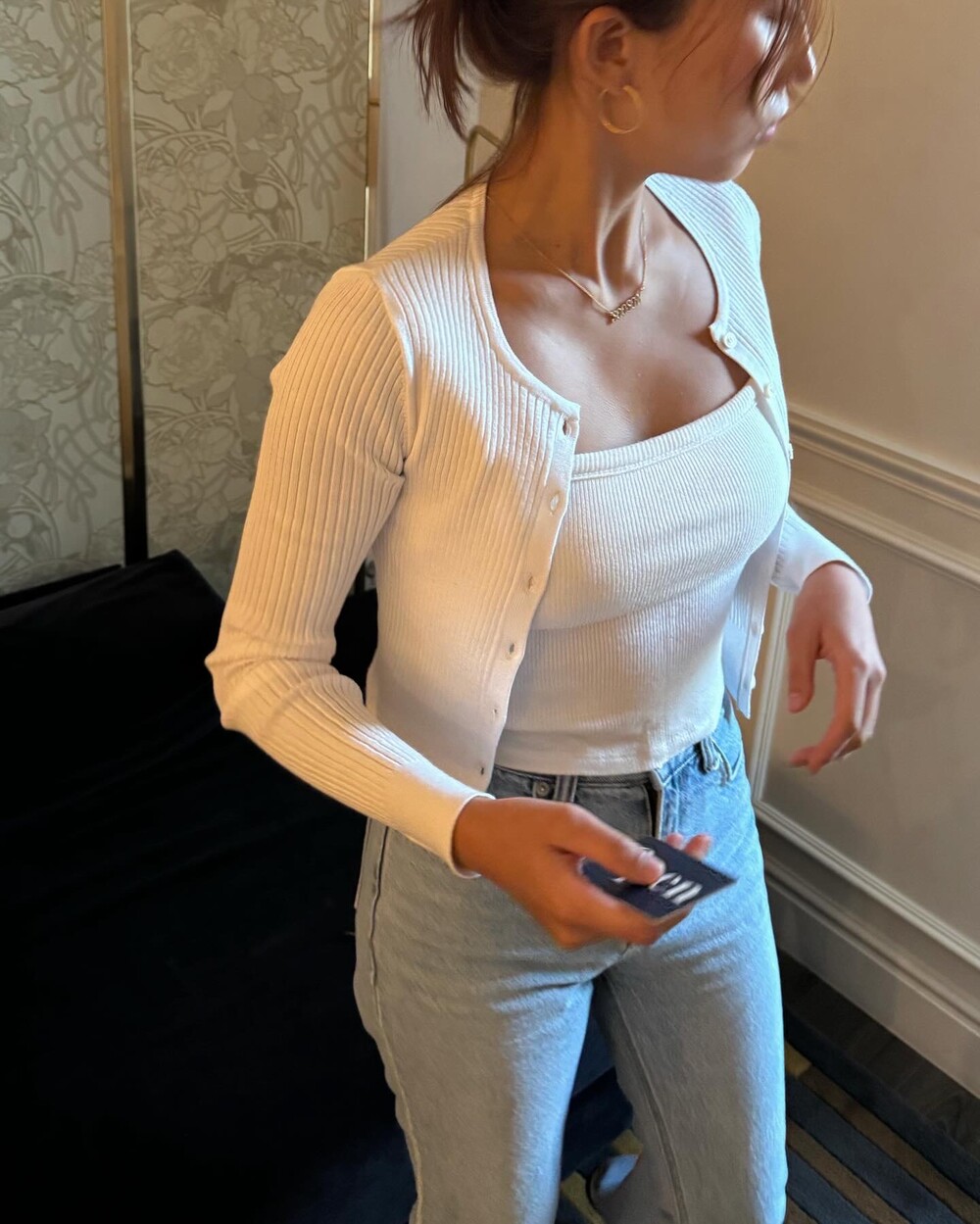 굳이 버튼 오픈하지 않고 머리 스윽 넣어 입어도 착용이 용이하며 오랜 시간 입어도 어깨쉐입 힘없이 늘어나지 않고 쫀쫀하게 받쳐주는.