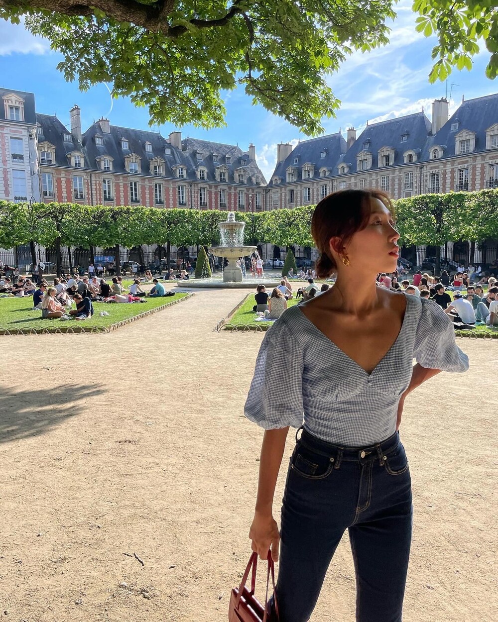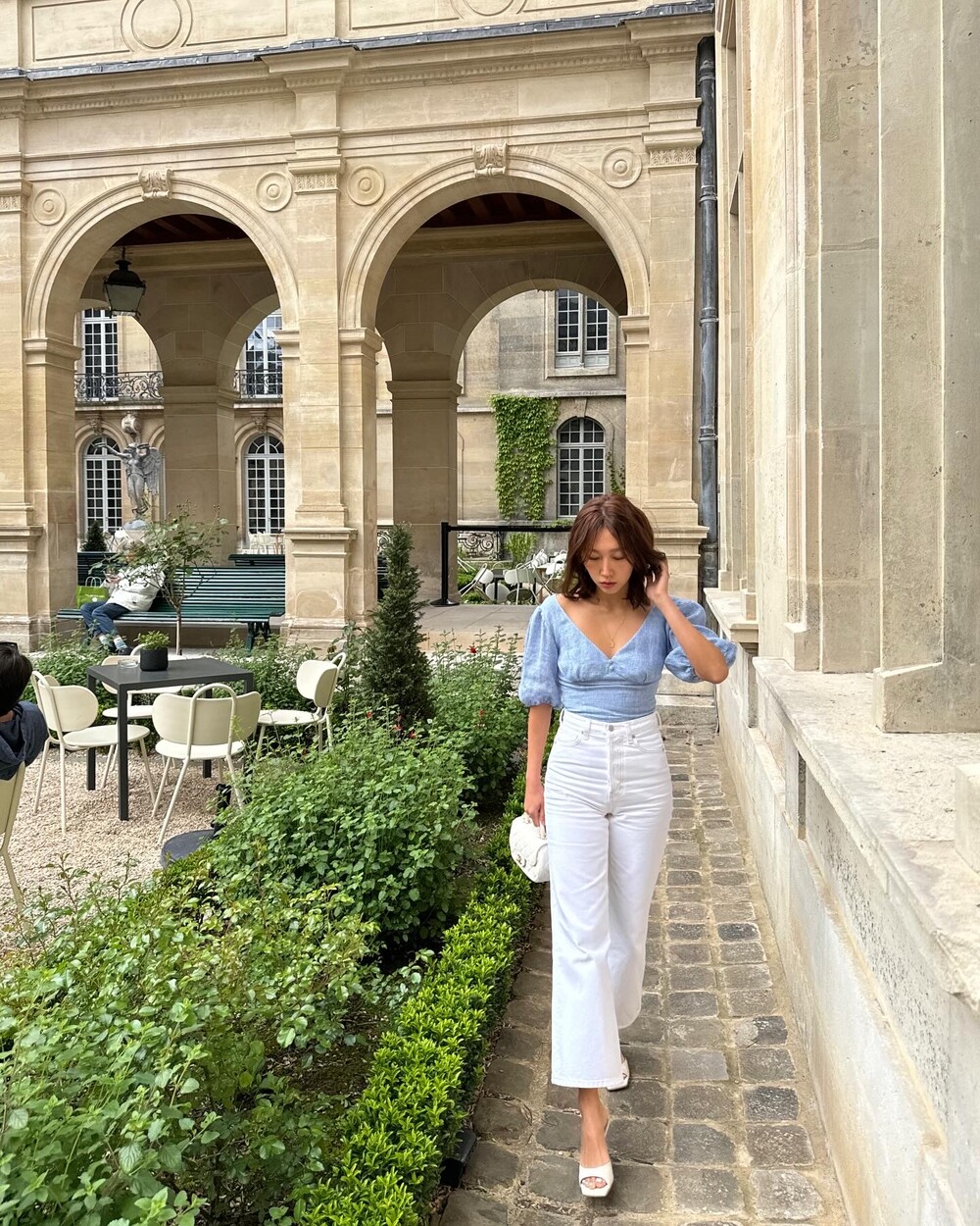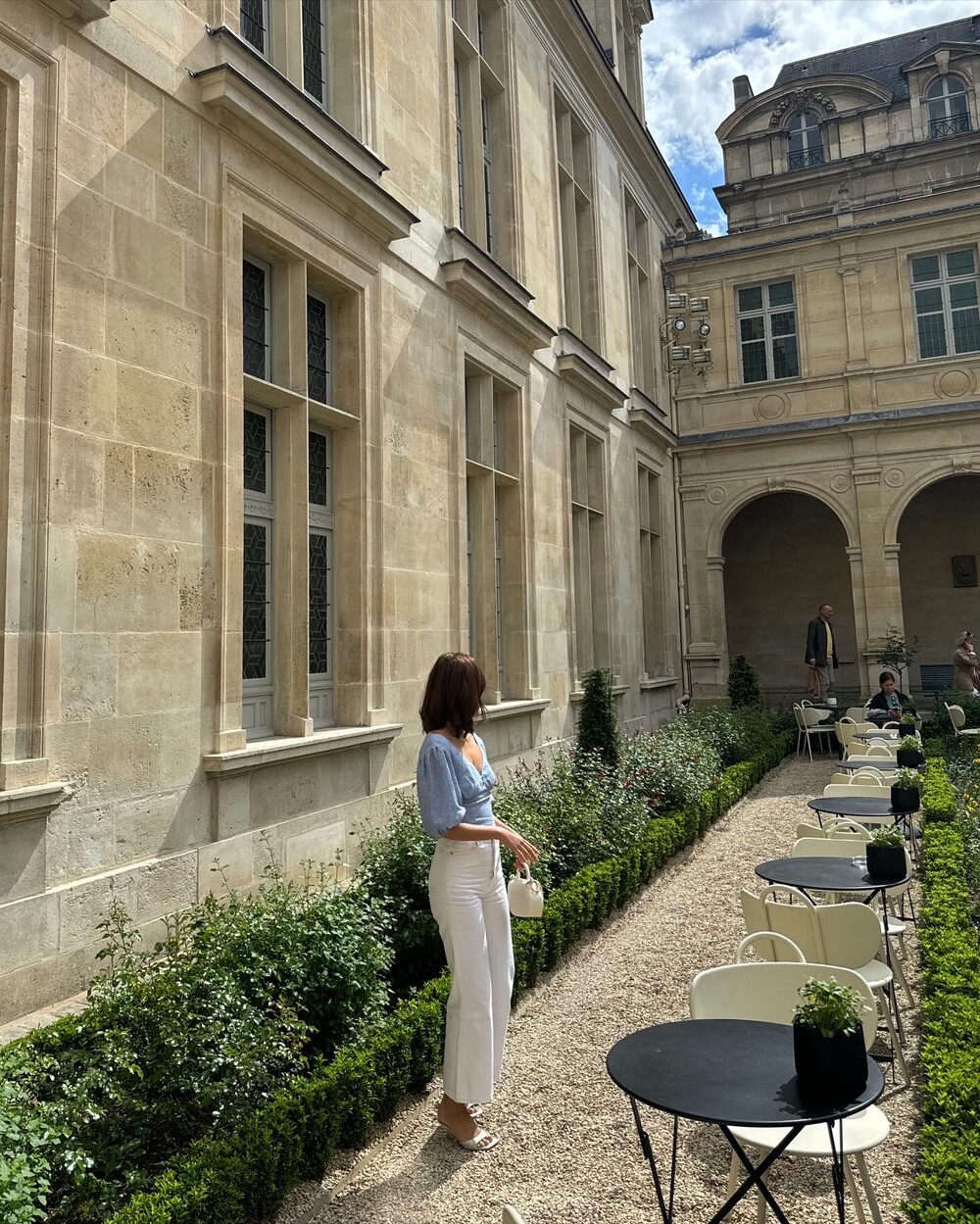 소재가 담백하게 린넨이여서 이 엘레강스한 블라우스를 충분히 캐주얼하게 활용할 수도 있구요.