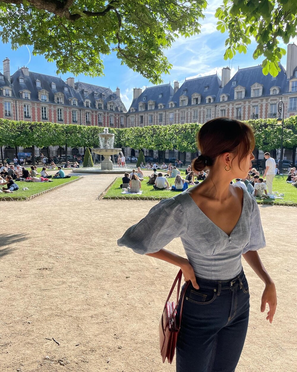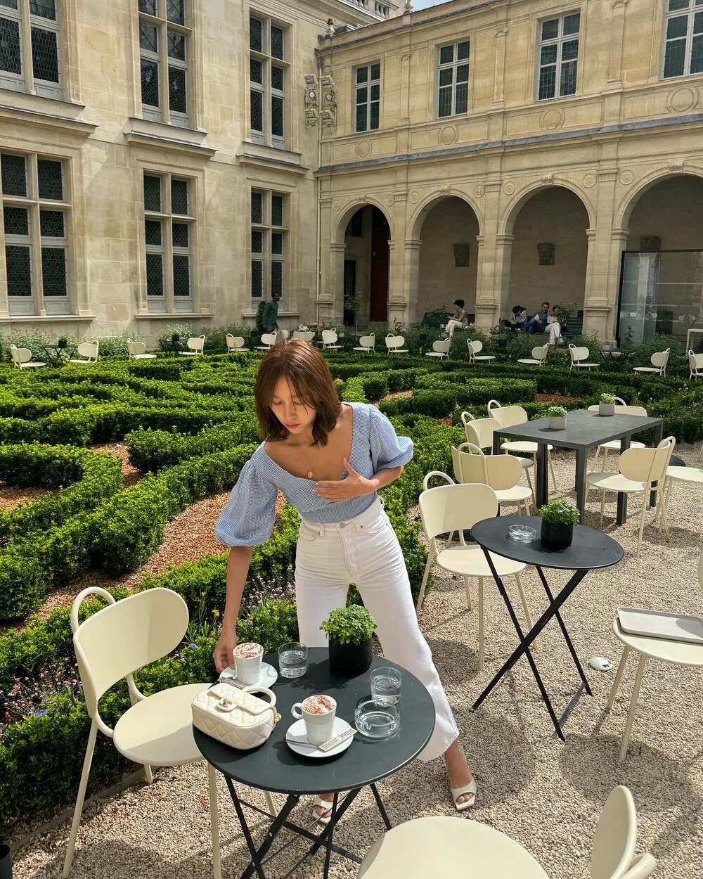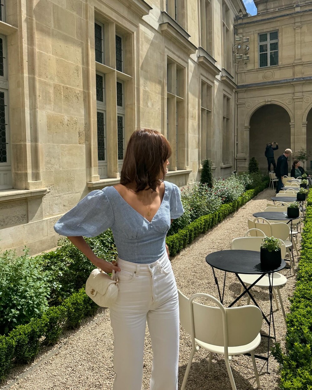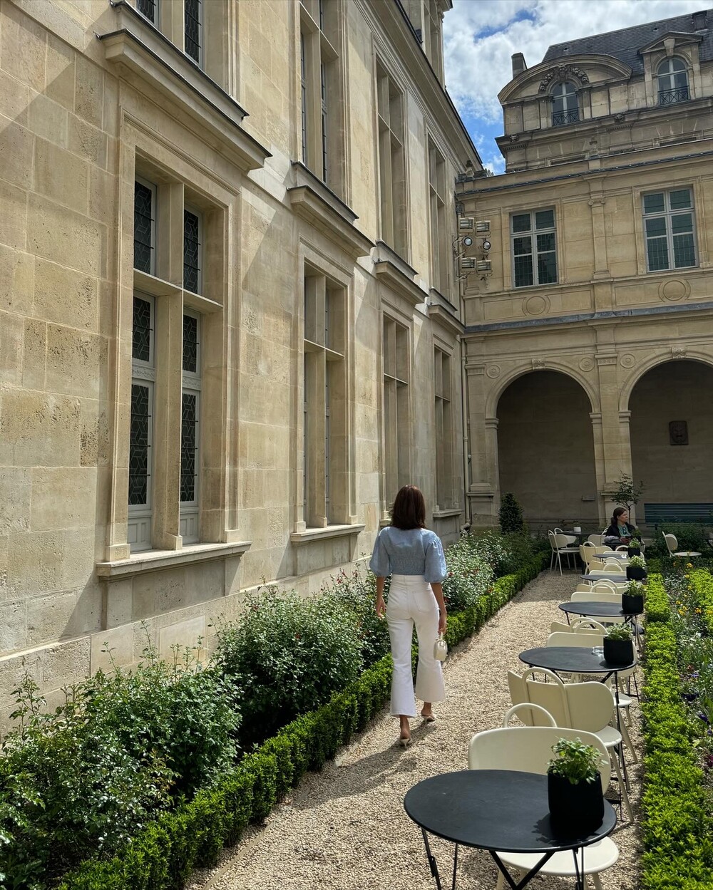 소재가 담백하게 린넨이여서 이 엘레강스한 블라우스를 충분히 캐주얼하게 활용할 수도 있구요.