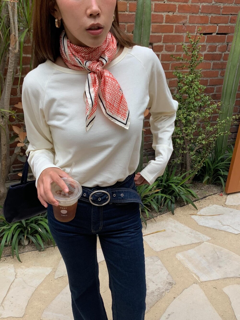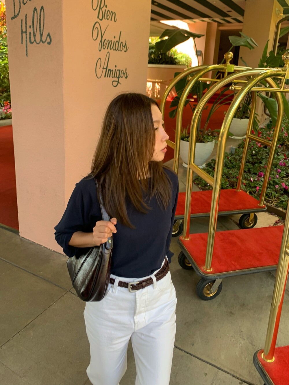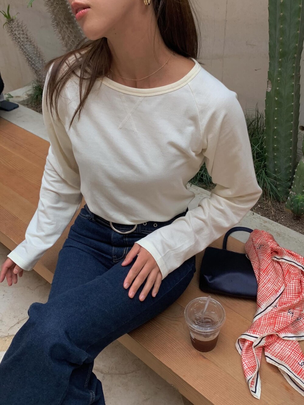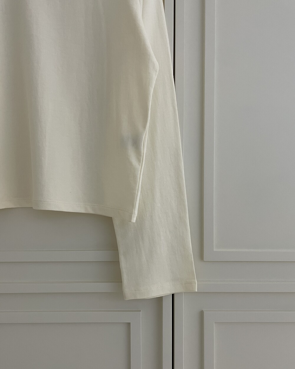 넥 라인을 보트텍으로 설정한 건 라운지 탑이 여타 베이직 티셔츠들과는 200% 구분지어주는 디테일이라고 생각해요.