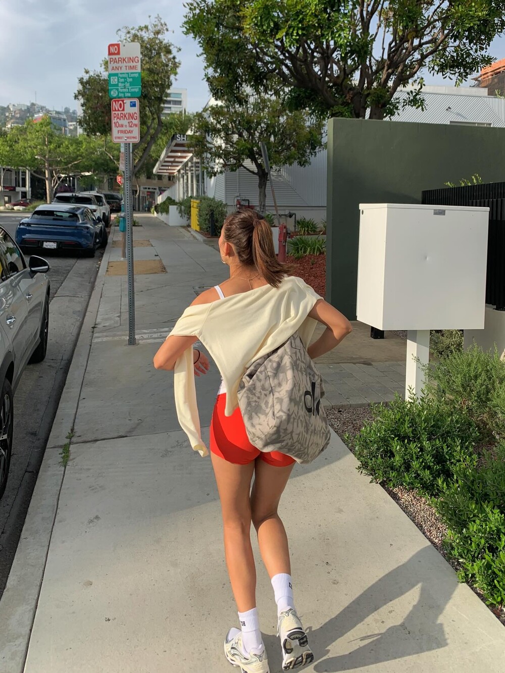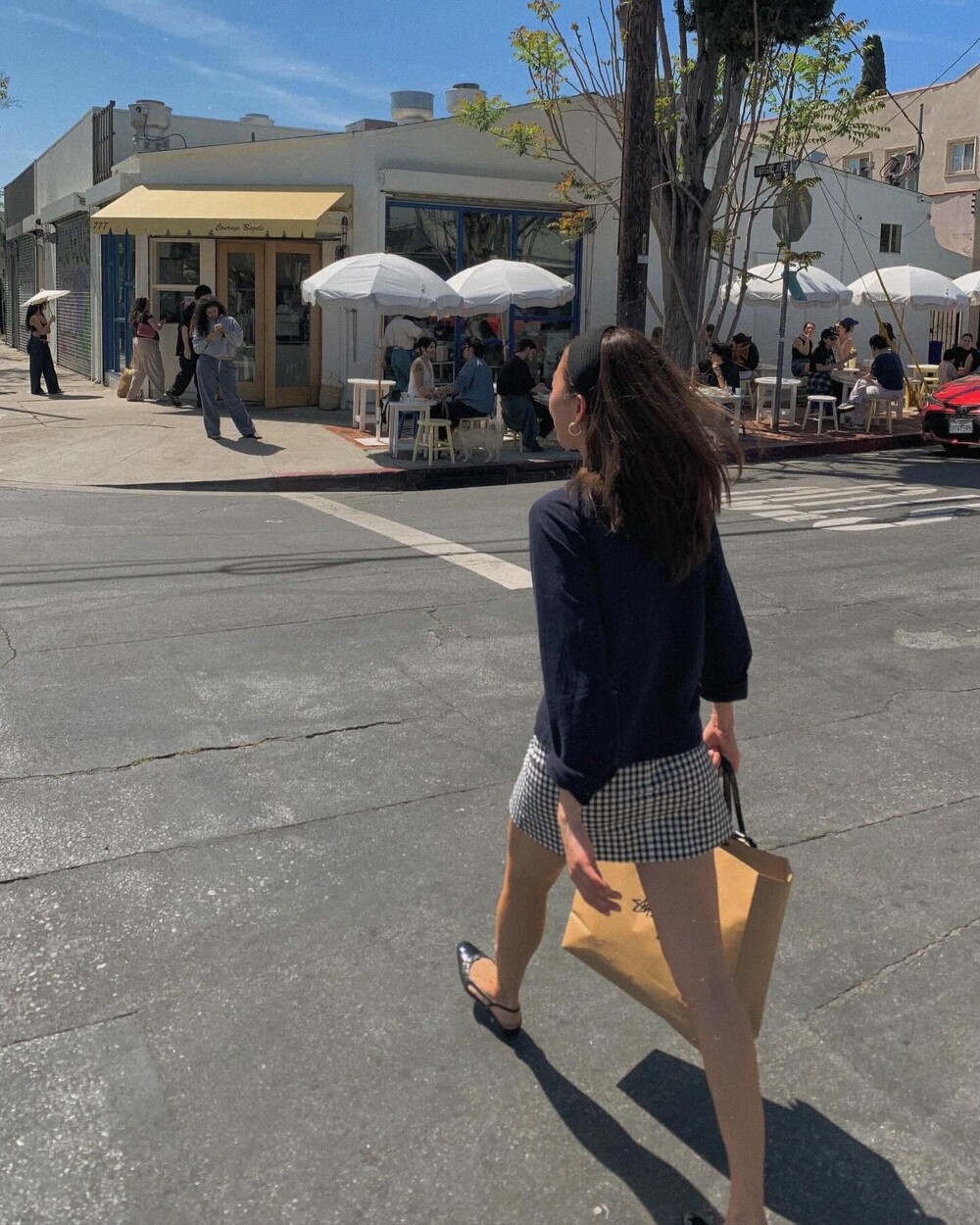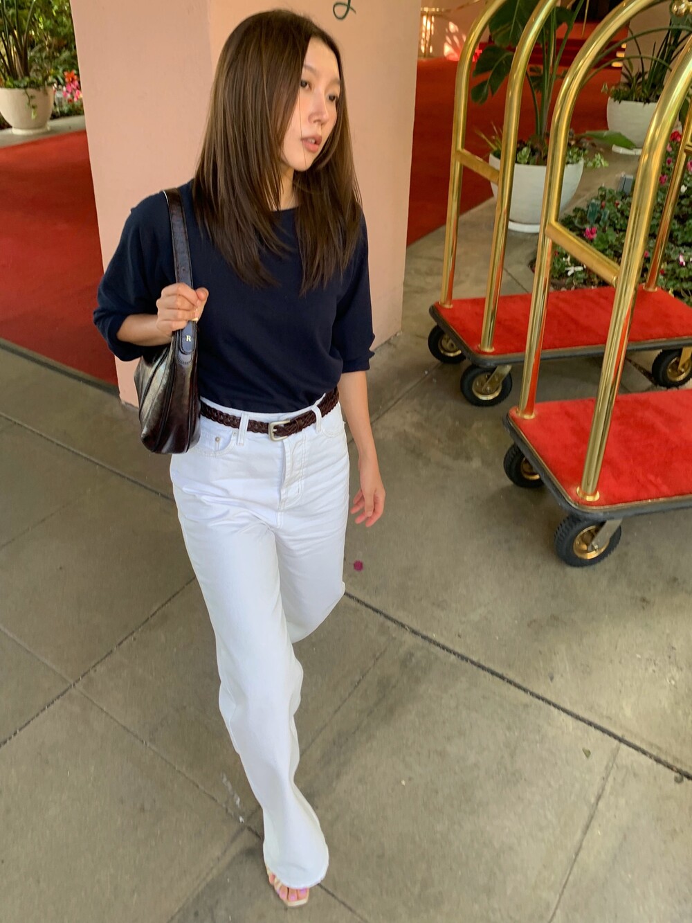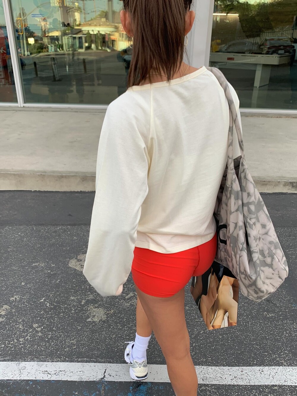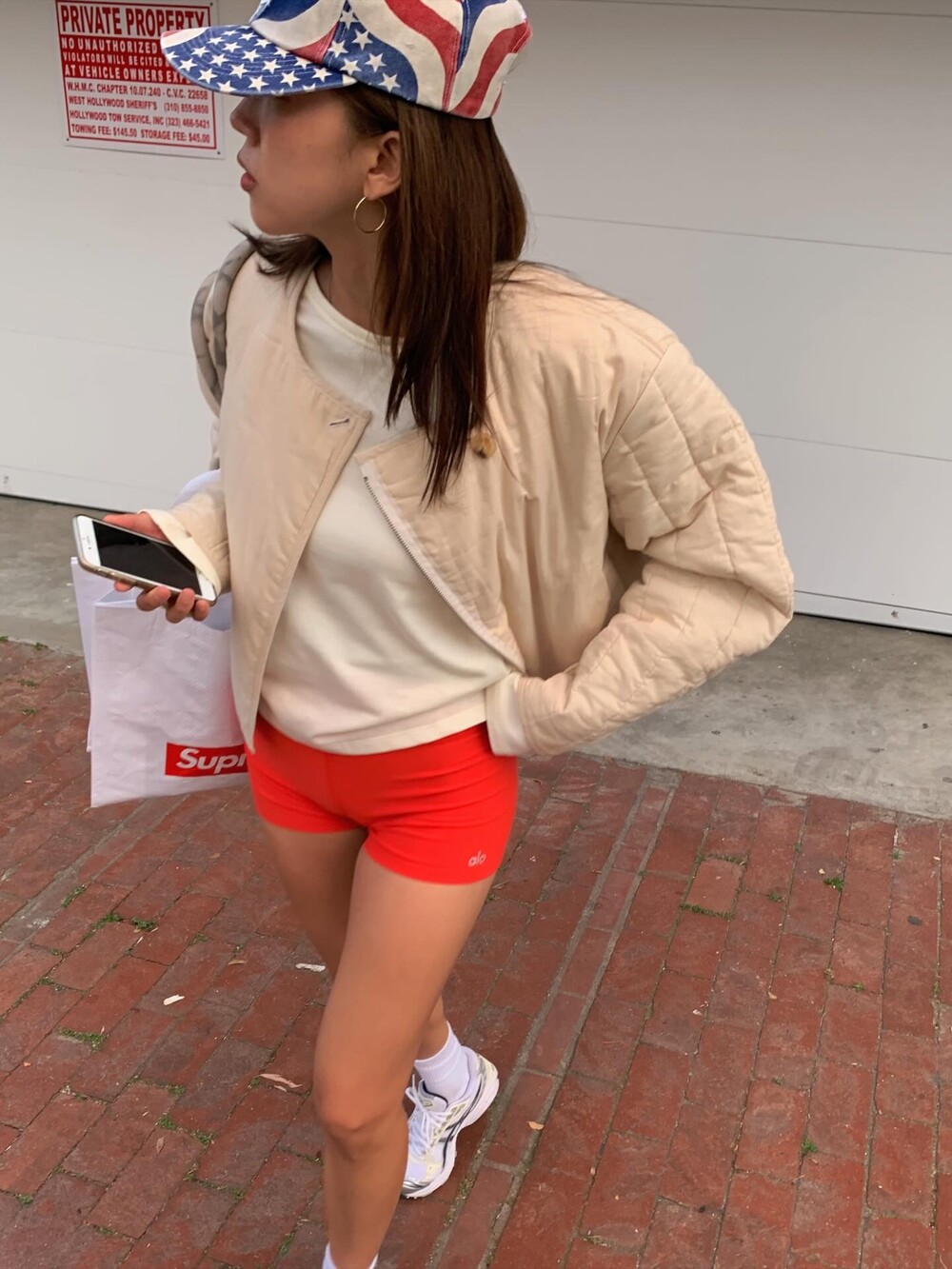 위에서 말씀드렸 듯 이 넥라인 하나로 스포츠 웨어에 매치해도 은근한 페미닌 무드가 연출되기 때문에