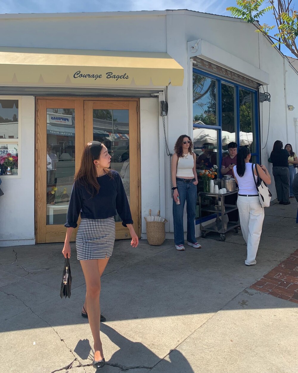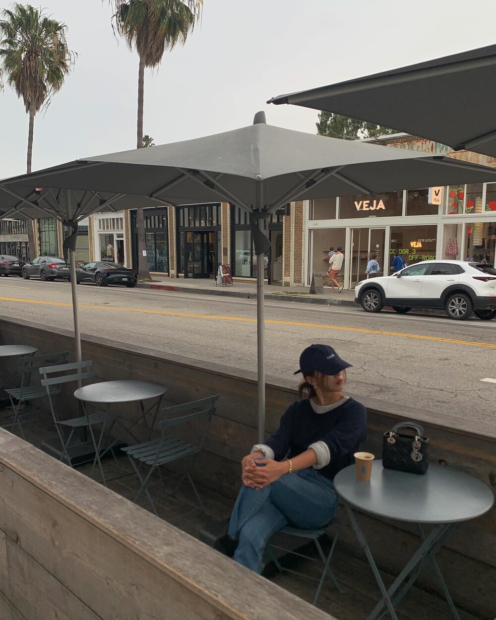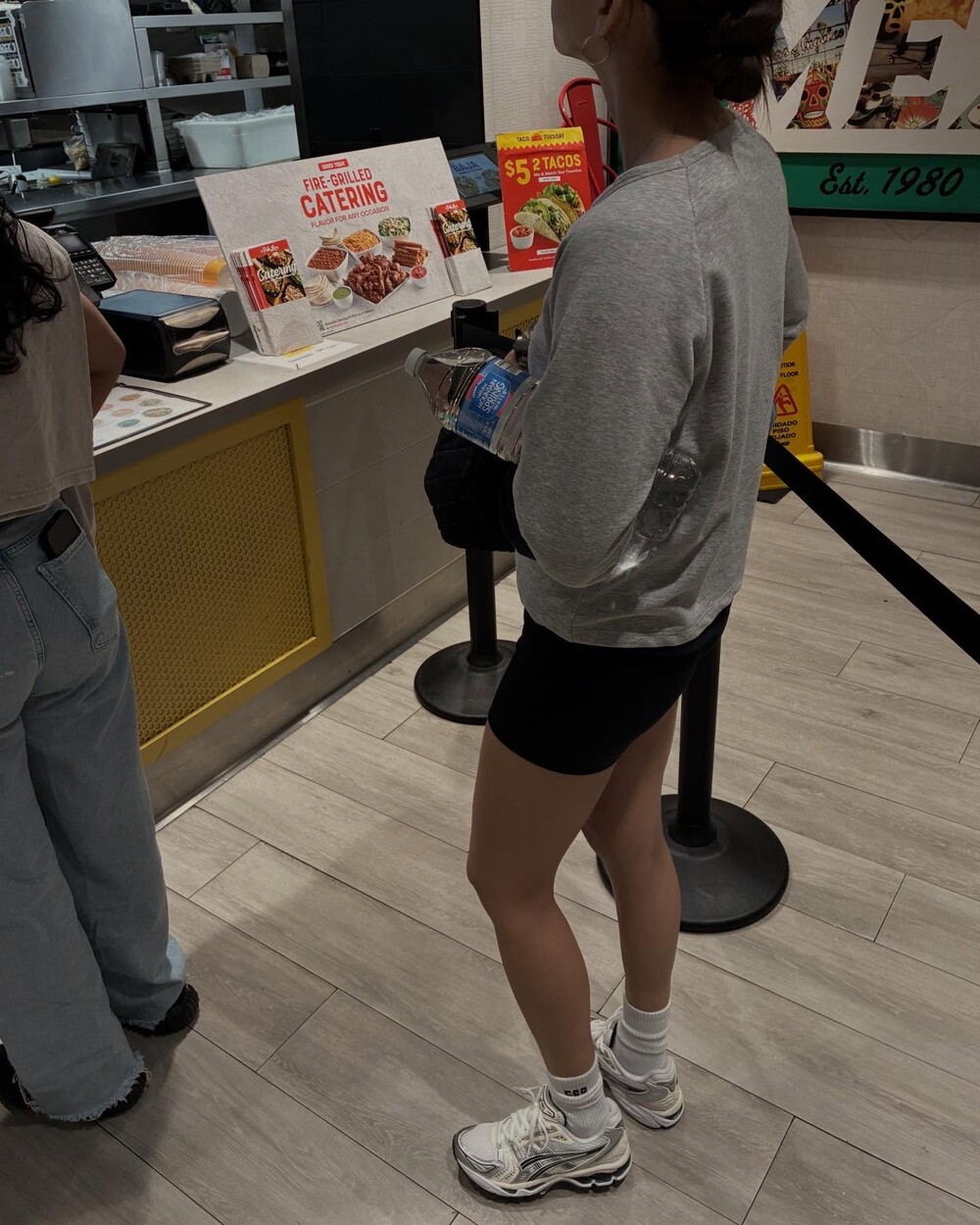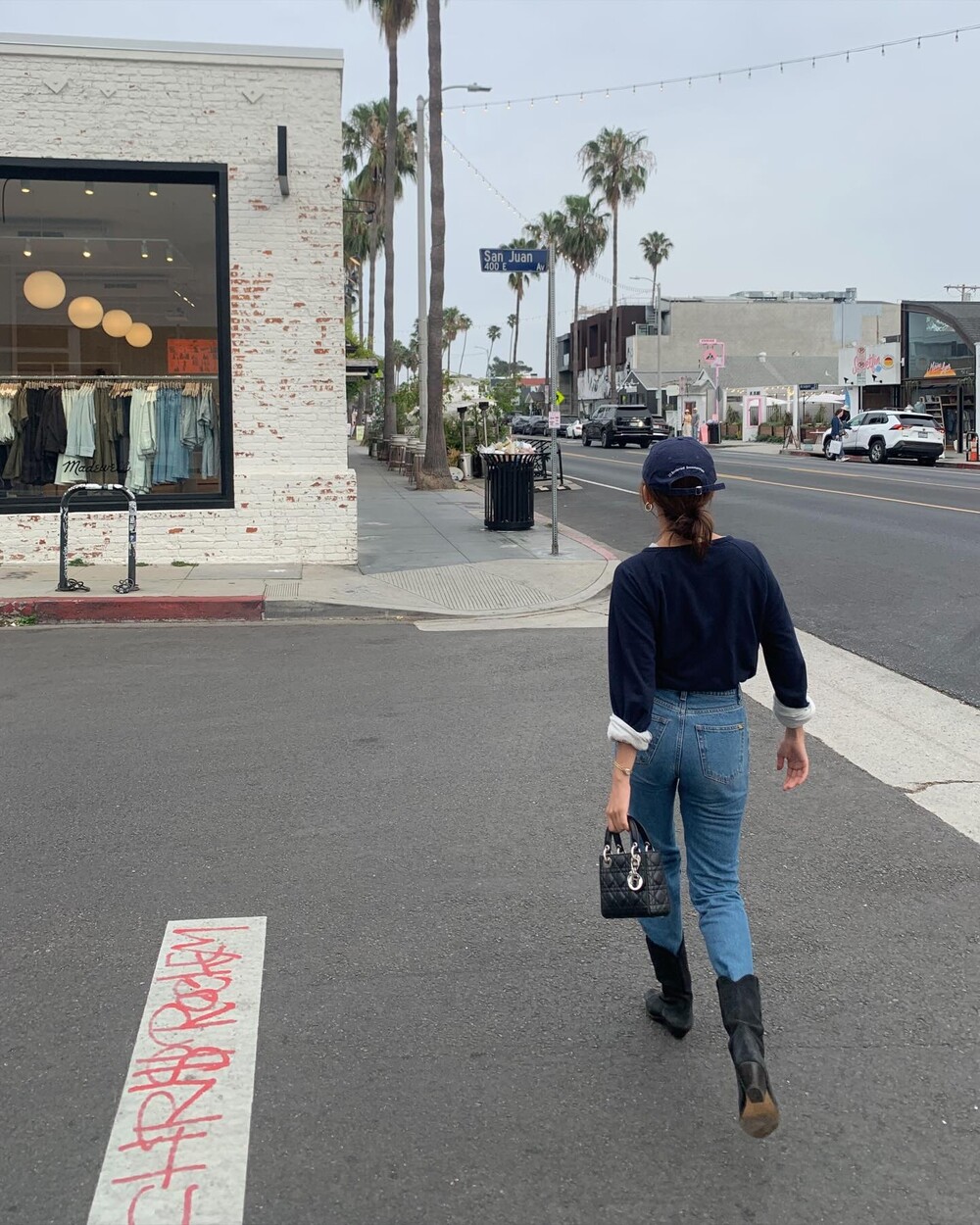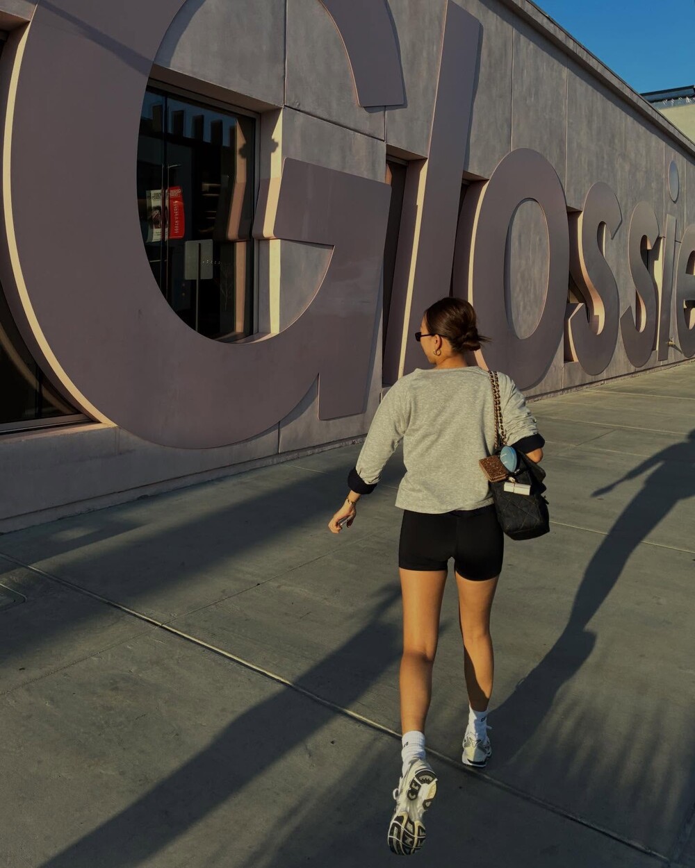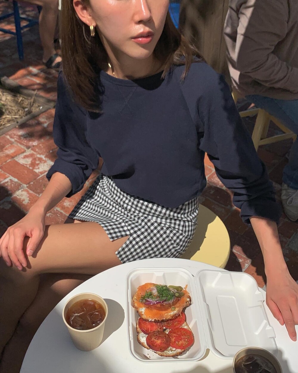 위에서 말씀드렸 듯 이 넥라인 하나로 스포츠 웨어에 매치해도 은근한 페미닌 무드가 연출되기 때문에