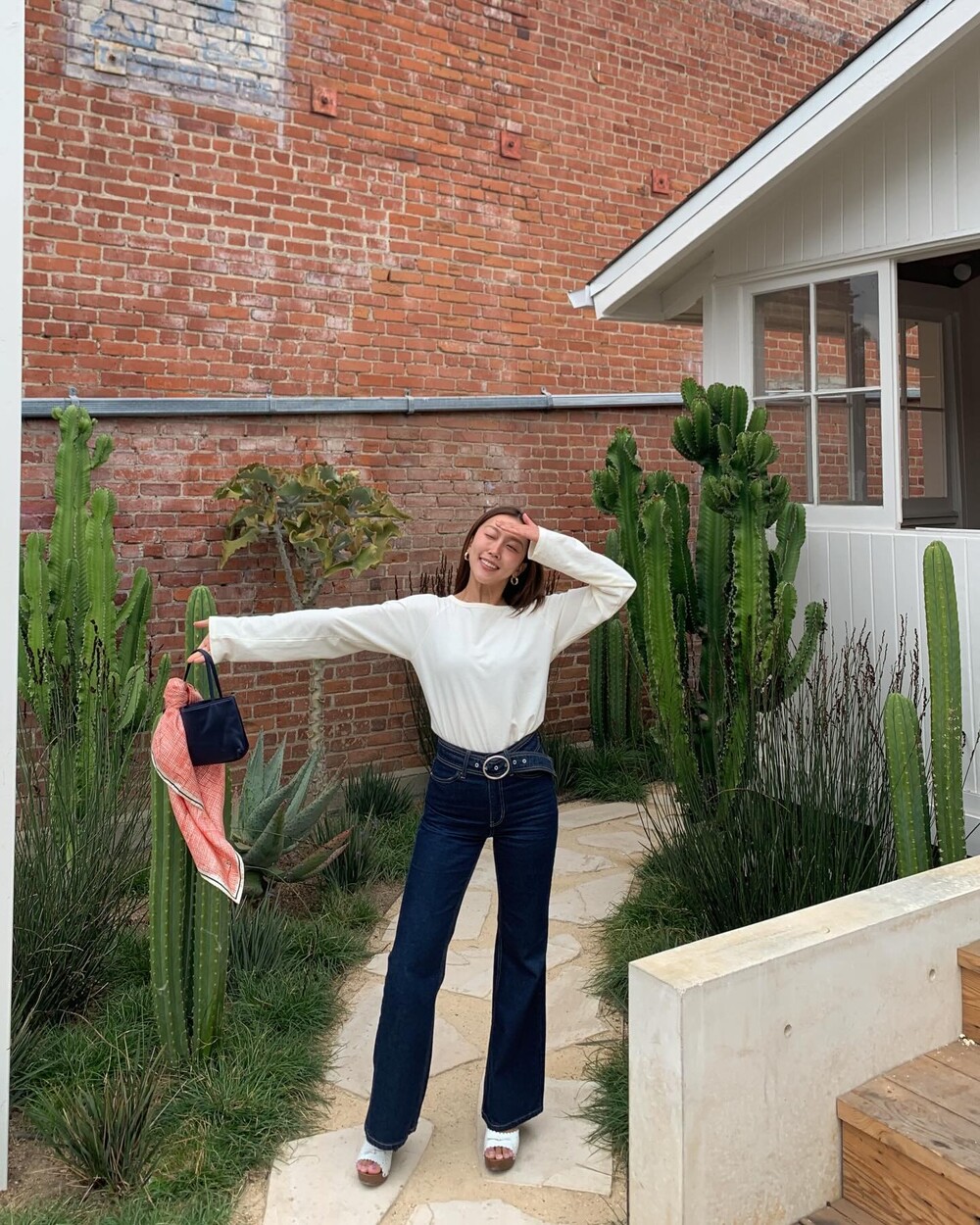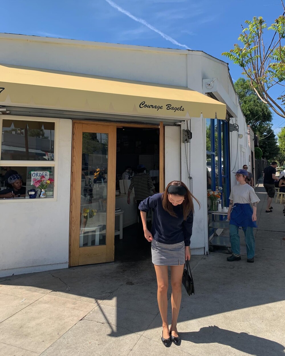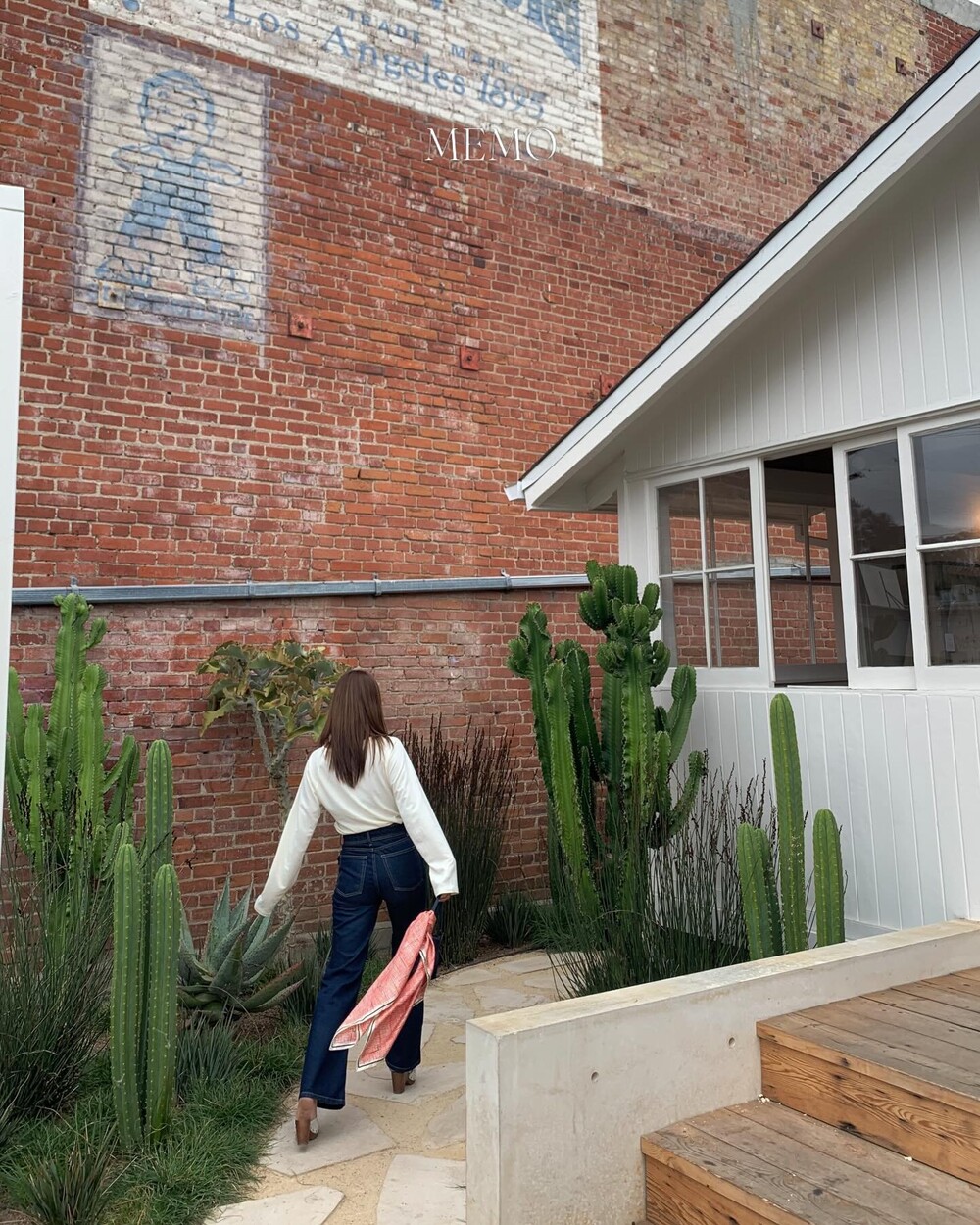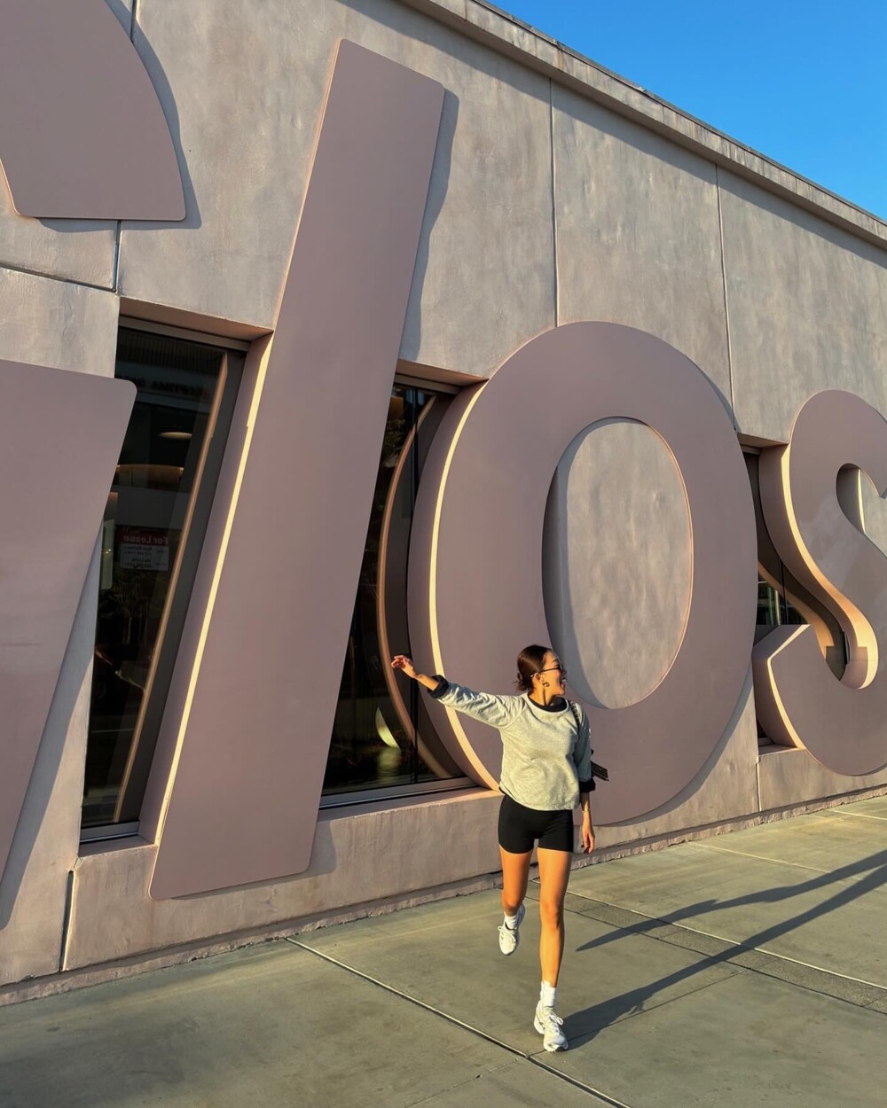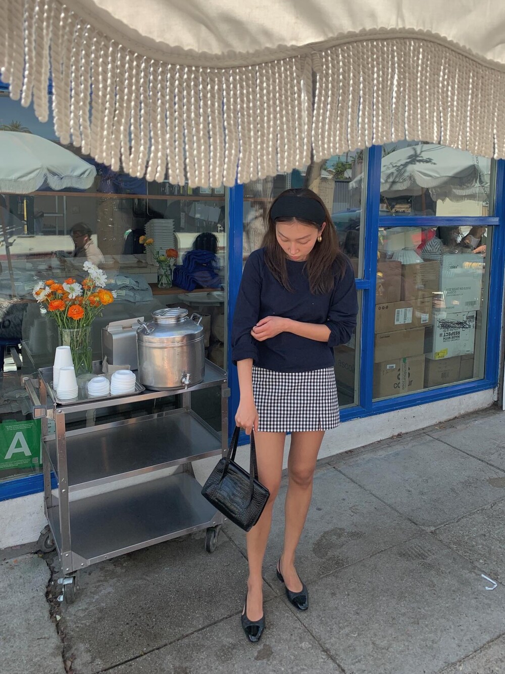 위에서 말씀드렸 듯 이 넥라인 하나로 스포츠 웨어에 매치해도 은근한 페미닌 무드가 연출되기 때문에
