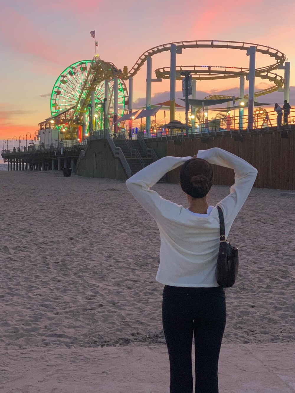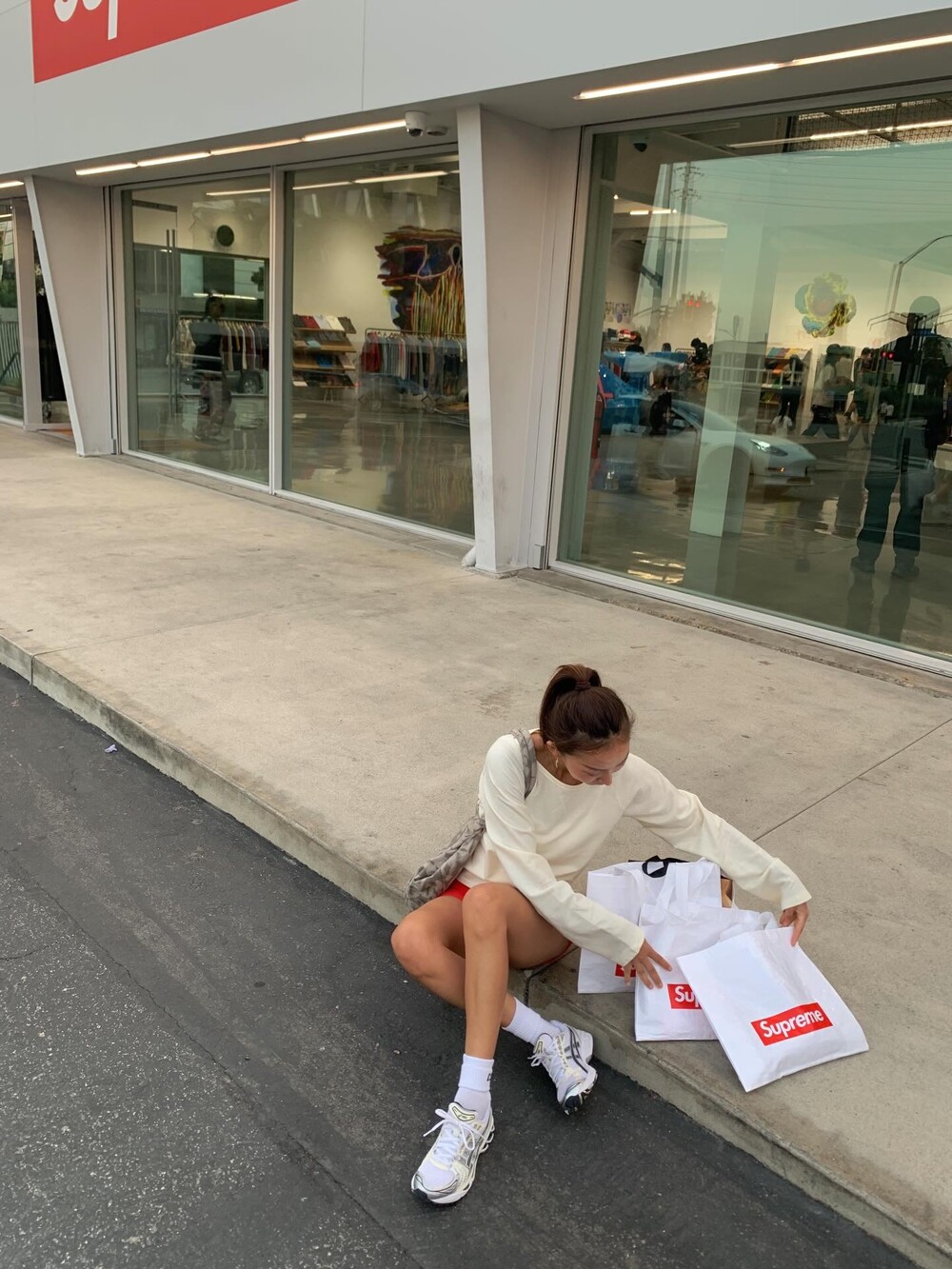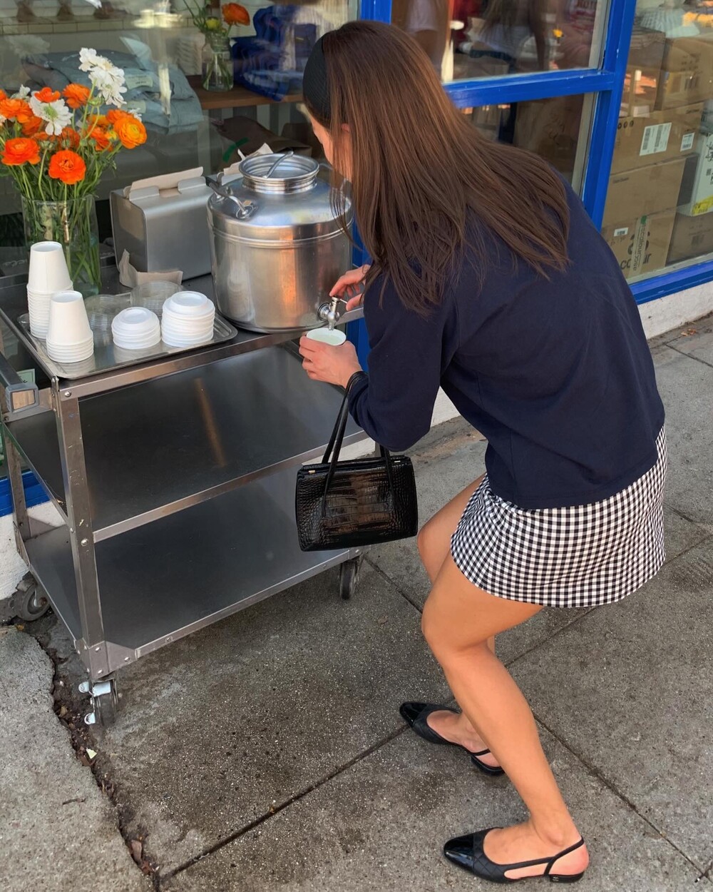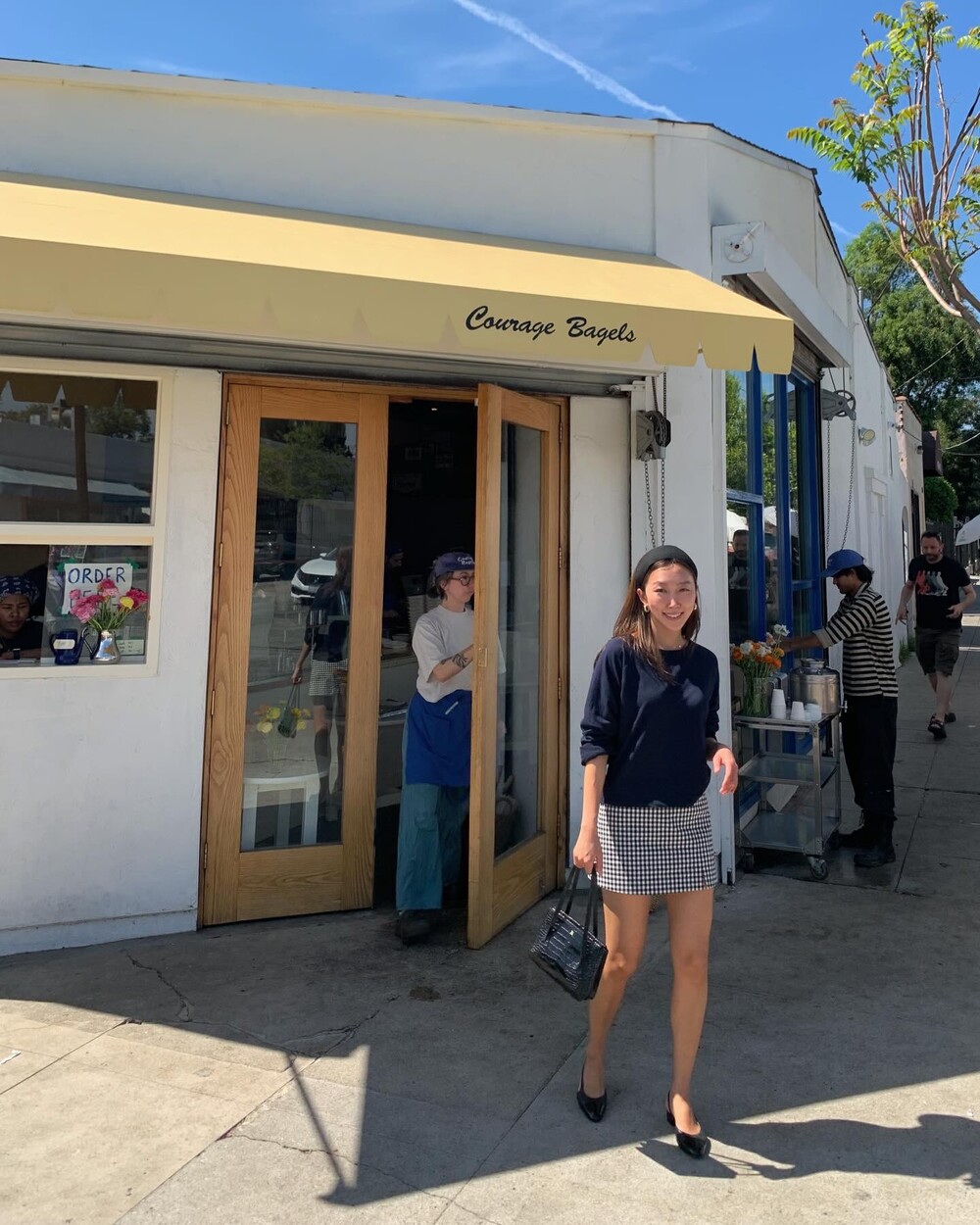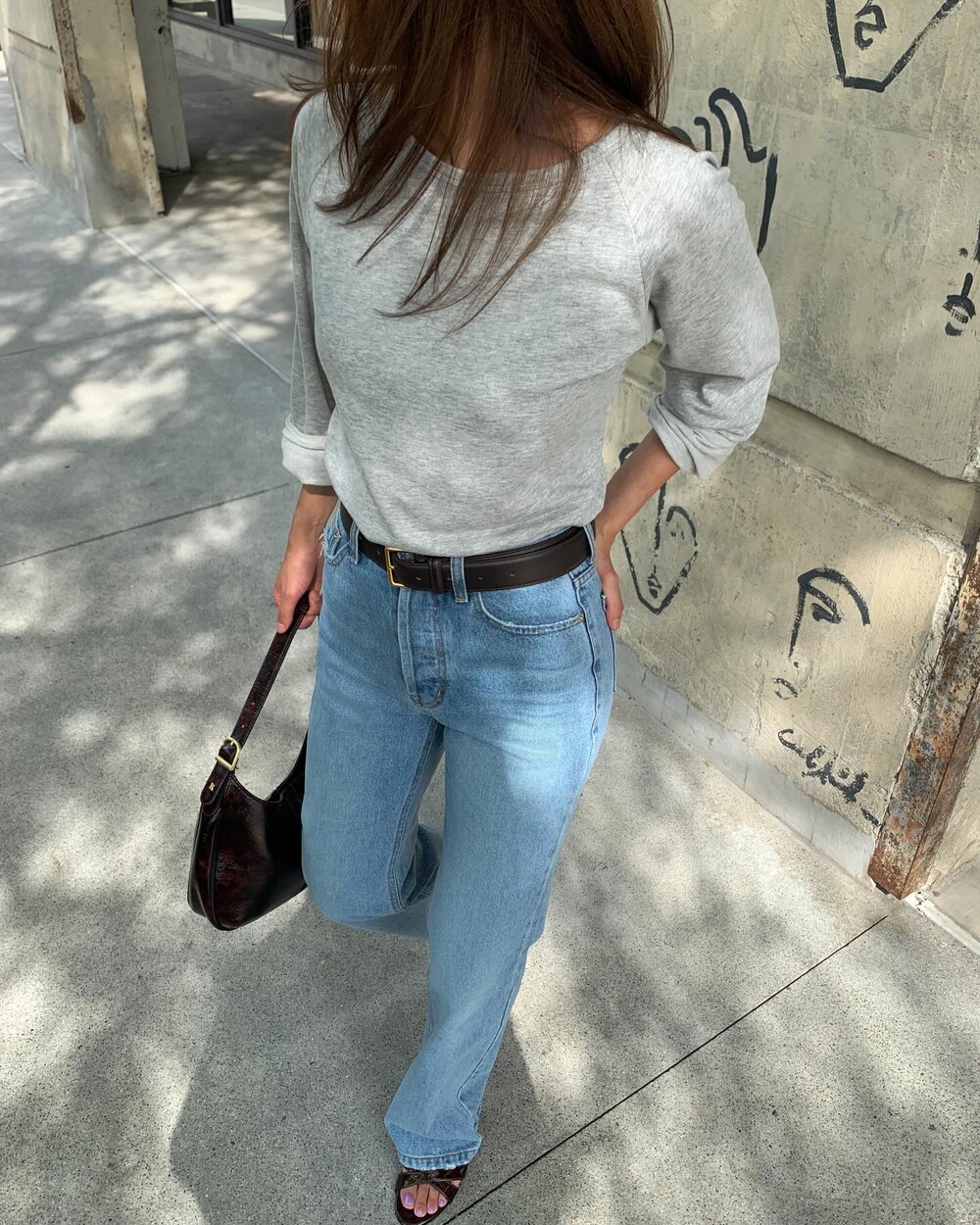 위에서 말씀드렸 듯 이 넥라인 하나로 스포츠 웨어에 매치해도 은근한 페미닌 무드가 연출되기 때문에