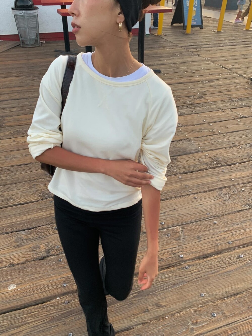 일반 스웻셔츠 소재와는 달리 딱 필요한 만큼 얇고 가벼워 레이어링이 충분히 가능할 정도로 활동감이 좋답니다.