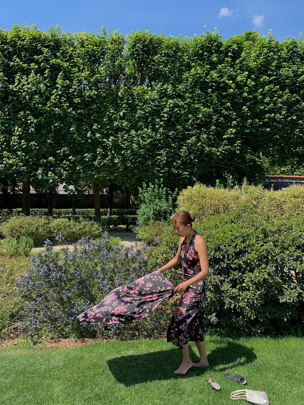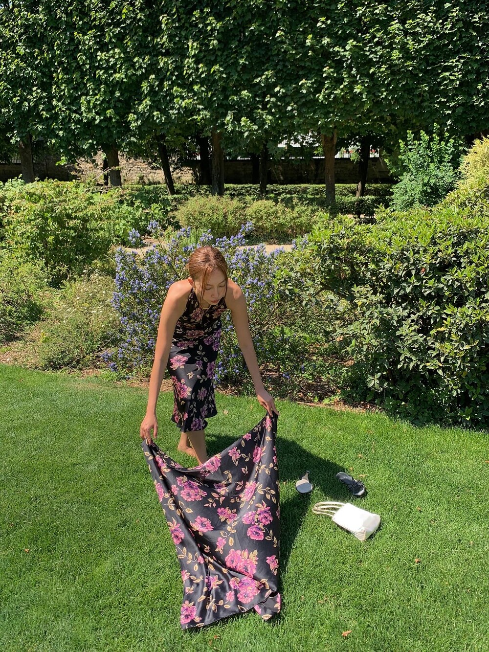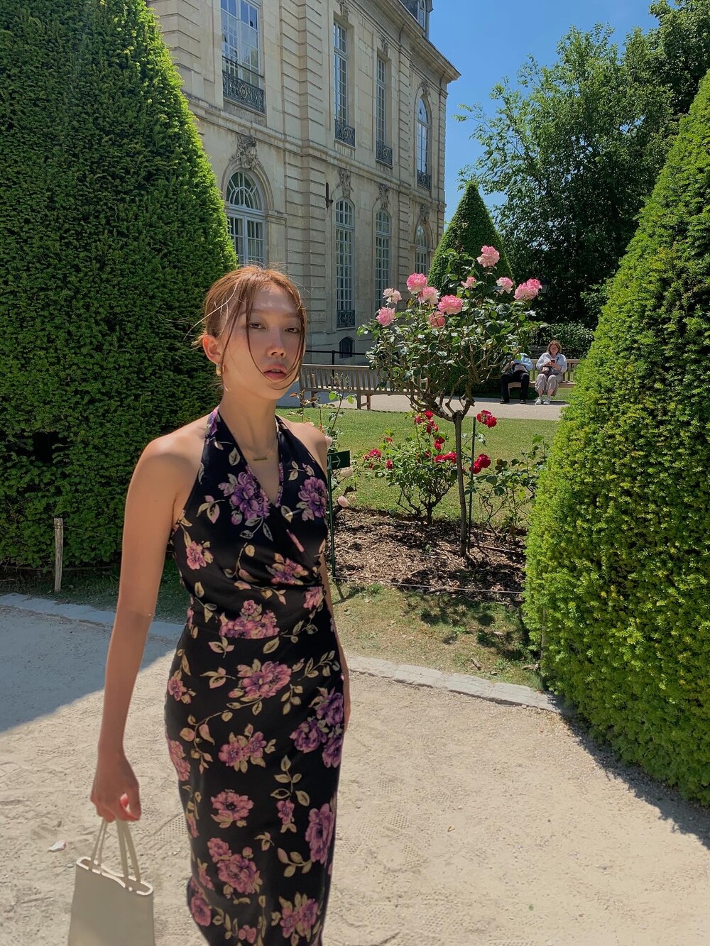 어떠한 바텀에도 기가 막히게 잘 어우러지는 리본 랩블라우스가 탄생했고,더불어 함께 매치했을 때 드레스로 어레인지 충분히 가능한 바이어스 컷 쥬쁘가 있죠.