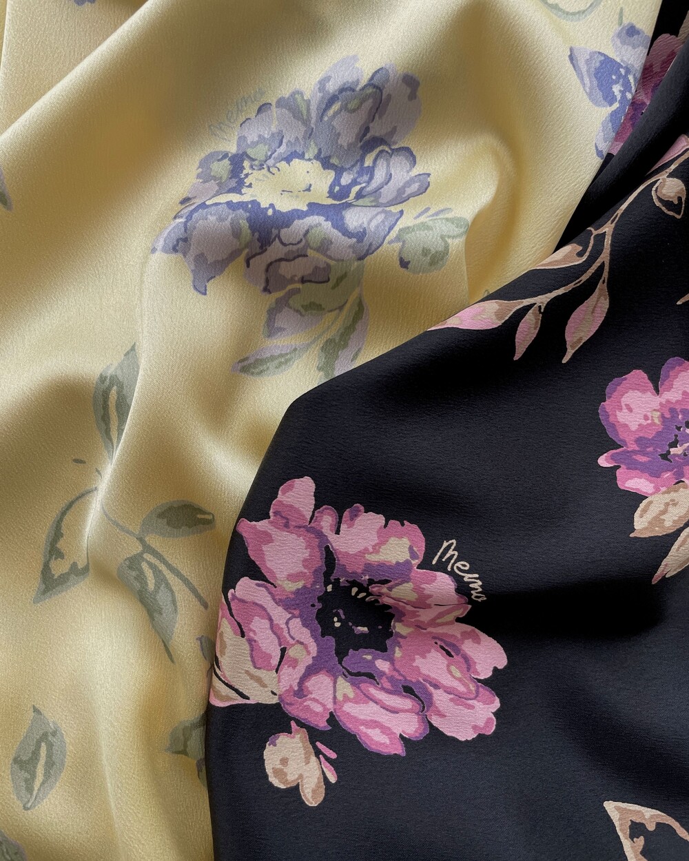 실크를 연상케 하는 다루기 쉽고 가벼운 패브릭에, 거침없이 벌키한 드로잉과 여덟가지의 섬세한 컬러 앙상블로