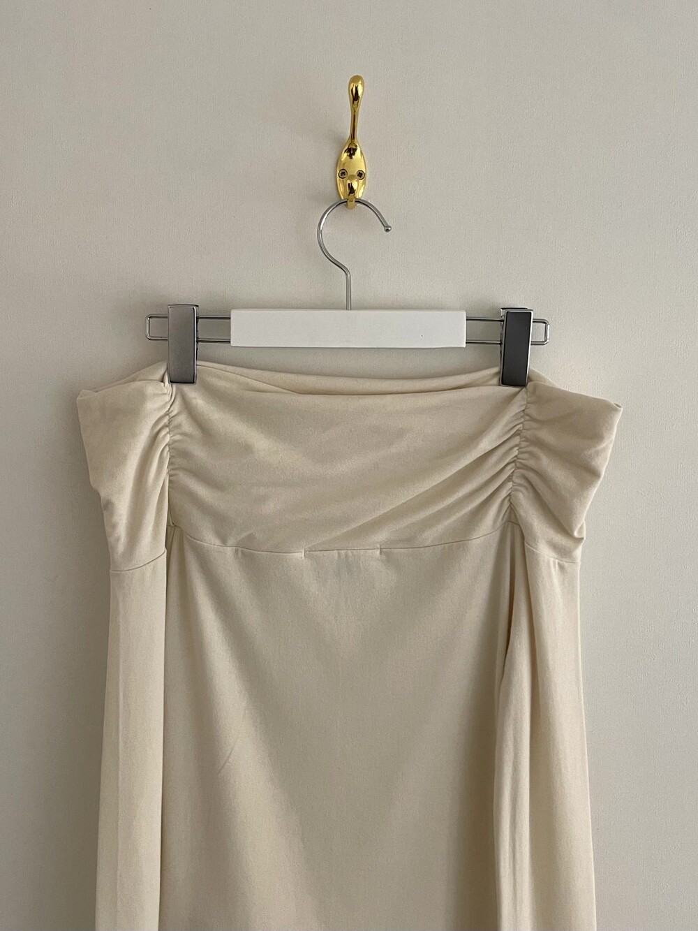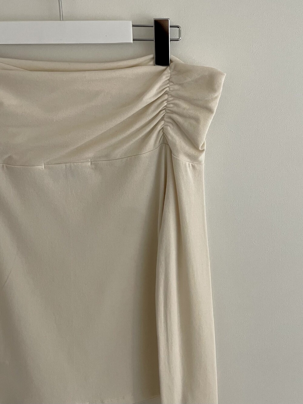 노출되는 어깨읭 랩이 거스르는 느낌 없이 잘 접어지고 덮히는 족의 랩은 쉽게 흘러내리지 않도록 드레이핑하여 생산했기때문에 제가 의도한 형태가 쉬이 무너지지 않습니다.