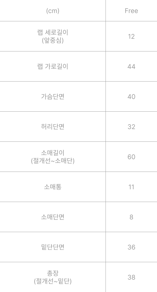 실측 사이즈는 재는 방법과 위치에 따라 1~3cm 오차가 있을 수 있습니다.