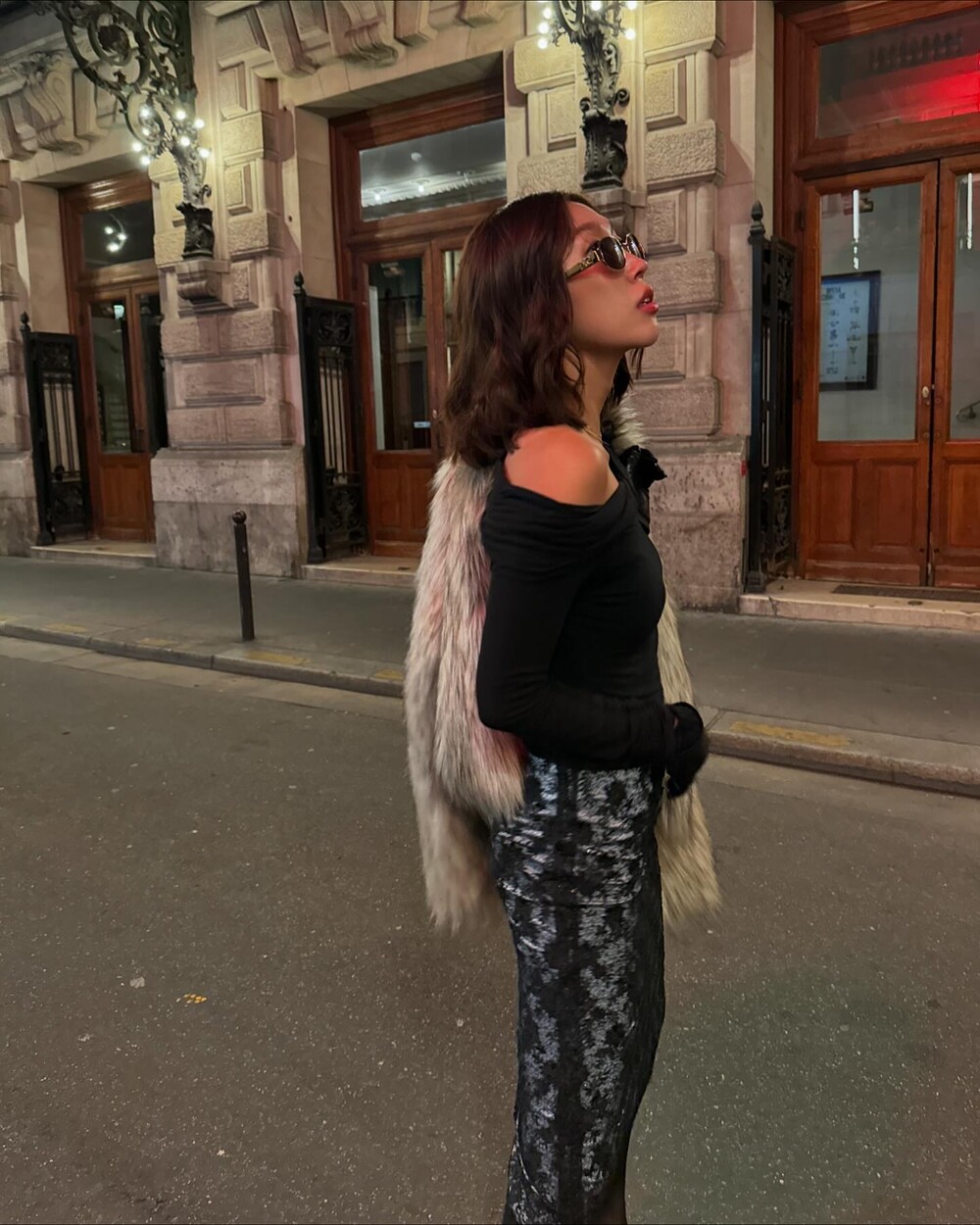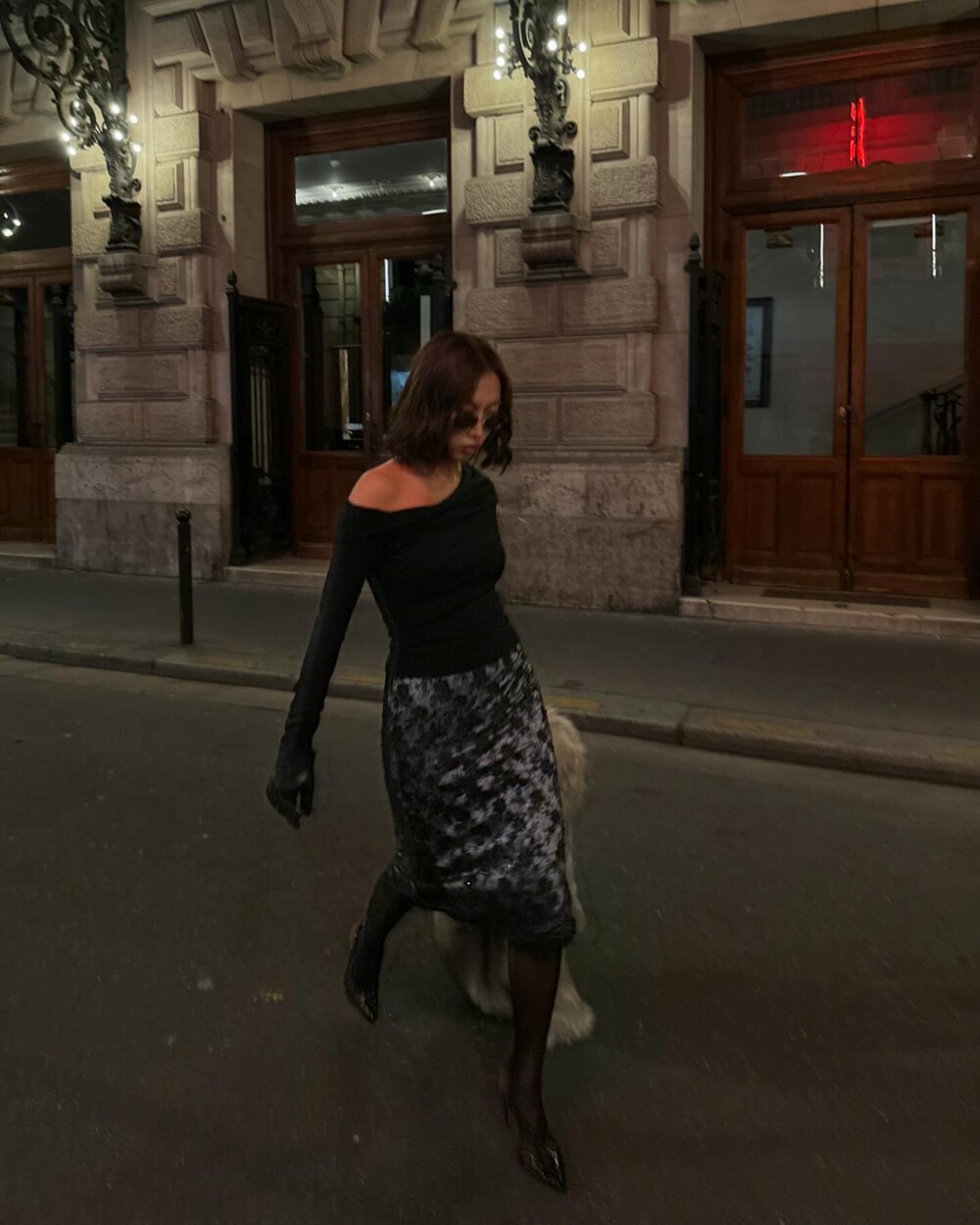 랩 한쪽을 접어 내렸을 때 형성되는 프론트 넥 라인의 아찔한 사선이 매우 아름답고, 트위스트 슬라이드 스위프트라는 문구도 라임이 조아 이렇게 작명했다는 후일담이 있습니다. 호호