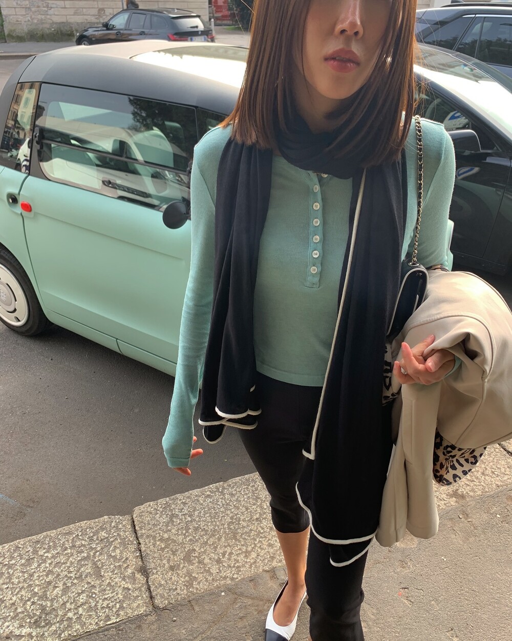 여름엔 가방에 둘둘 말아 넣었다가 실내에어컨 바람 차면 꺼내어 입고, (울이라 닿는 면 따듯하니까)