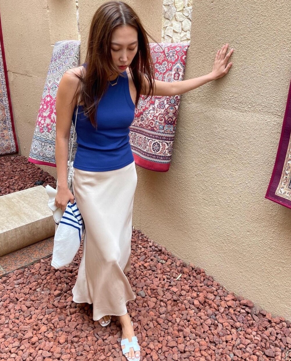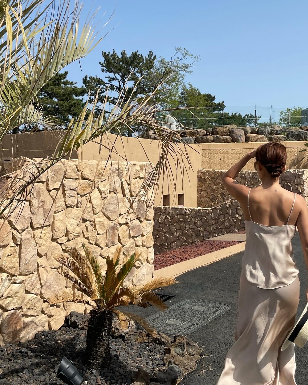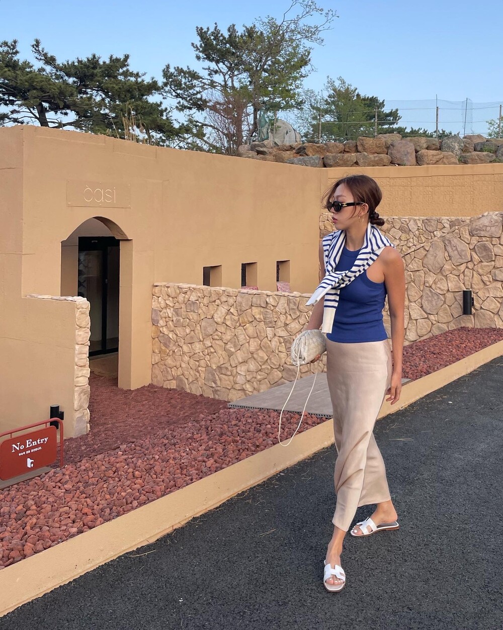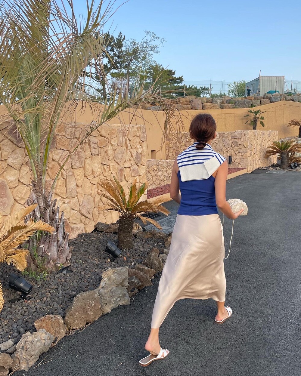 무엇보다 적당히 무게감 있게 실루엣을 유지하는데 살결에 엉겨붙지 않아 4계절 내내 착용하기 좋아요. 전 앞두고 있는 해외여행에서 시원한 슬리브리스탑이나 스윔웨어와 매치해볼까해요. 아! 화려한 패턴의 탑과도 참 잘 어울리겠어요.