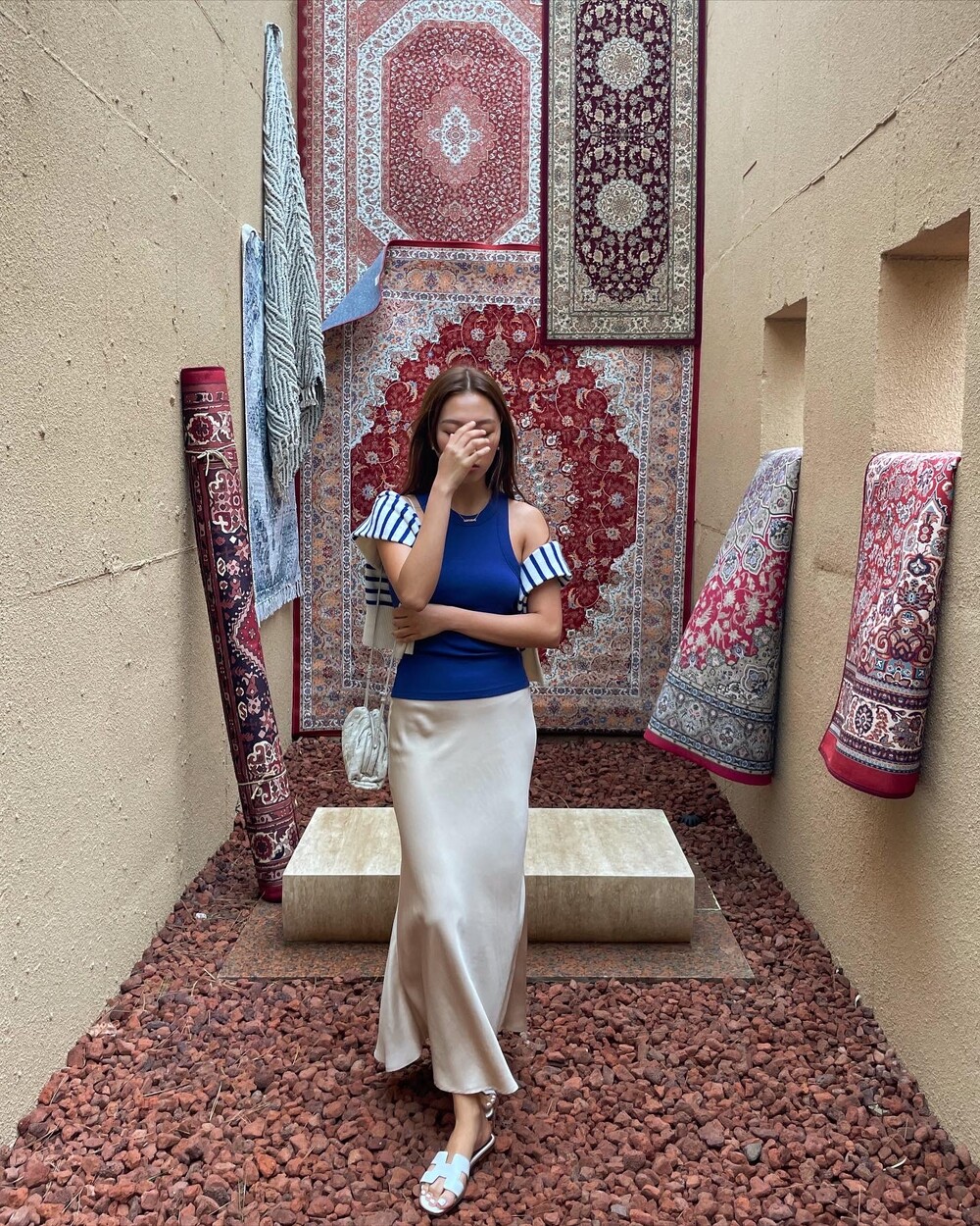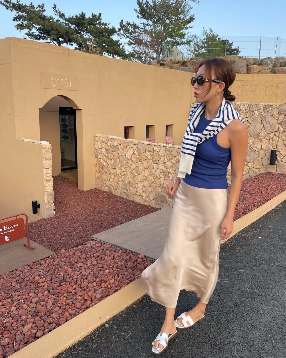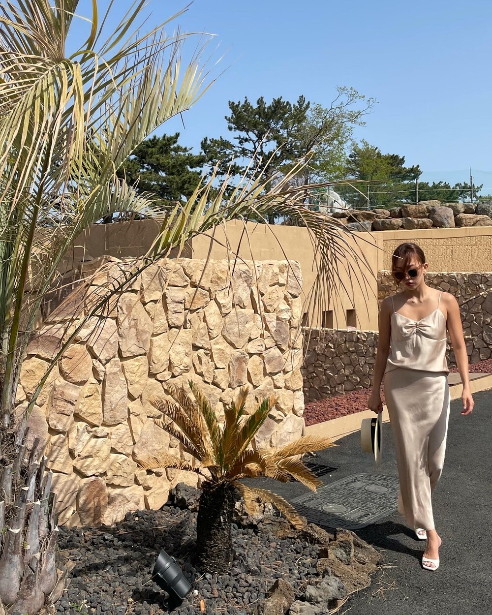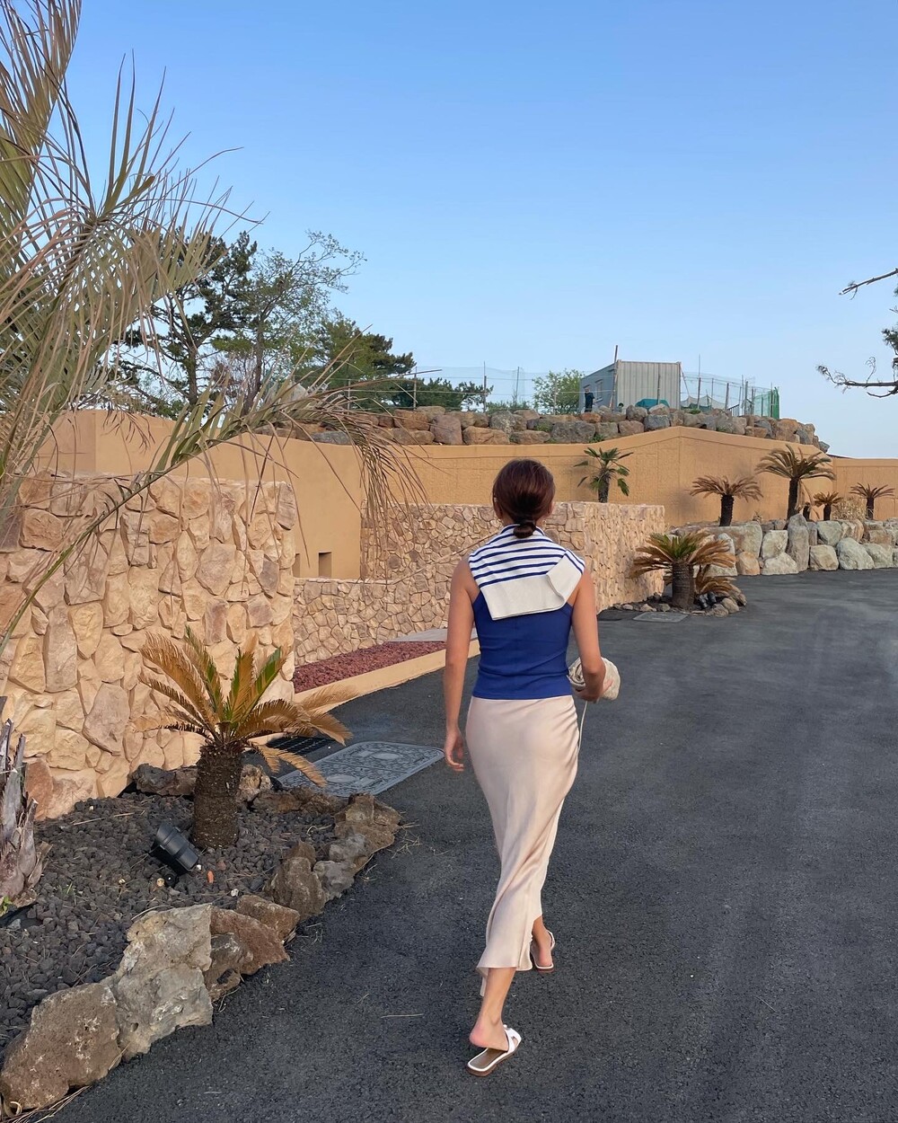 무엇보다 적당히 무게감 있게 실루엣을 유지하는데 살결에 엉겨붙지 않아 4계절 내내 착용하기 좋아요. 전 앞두고 있는 해외여행에서 시원한 슬리브리스탑이나 스윔웨어와 매치해볼까해요. 아! 화려한 패턴의 탑과도 참 잘 어울리겠어요.