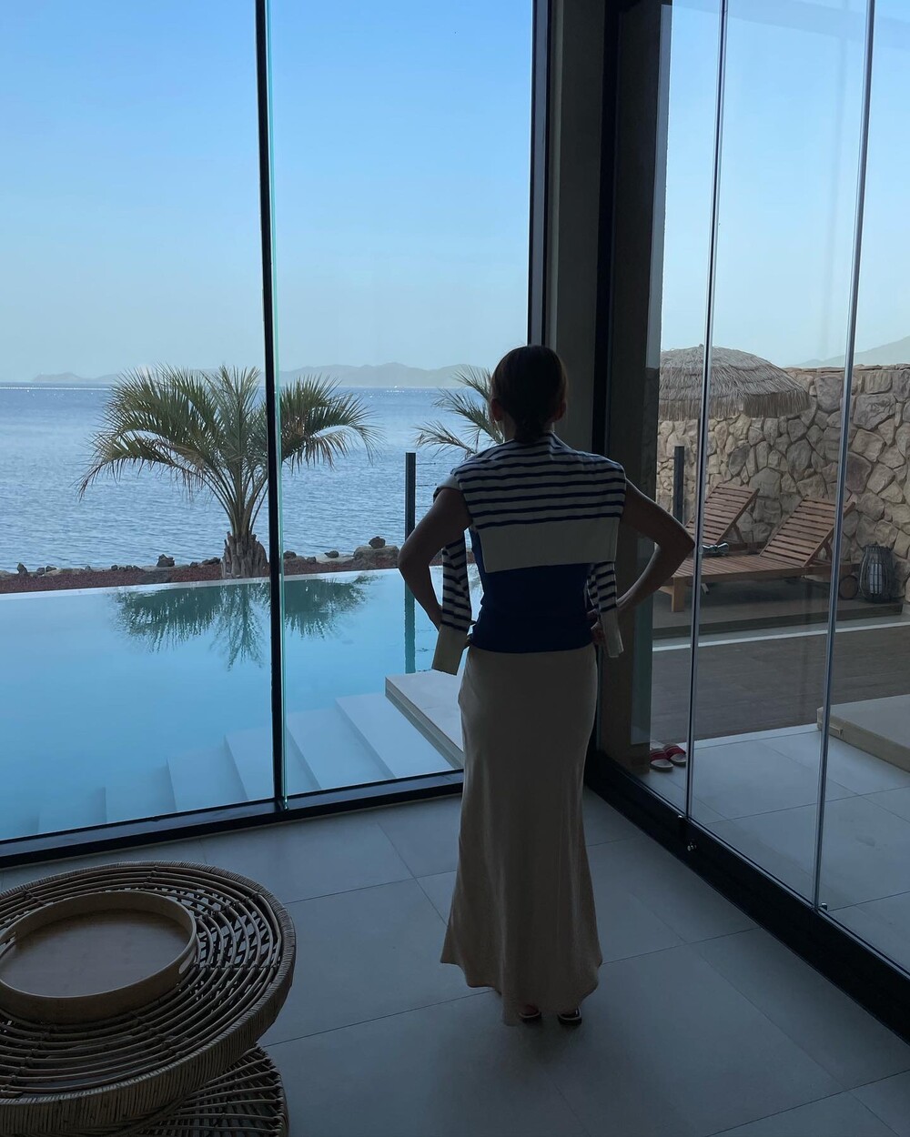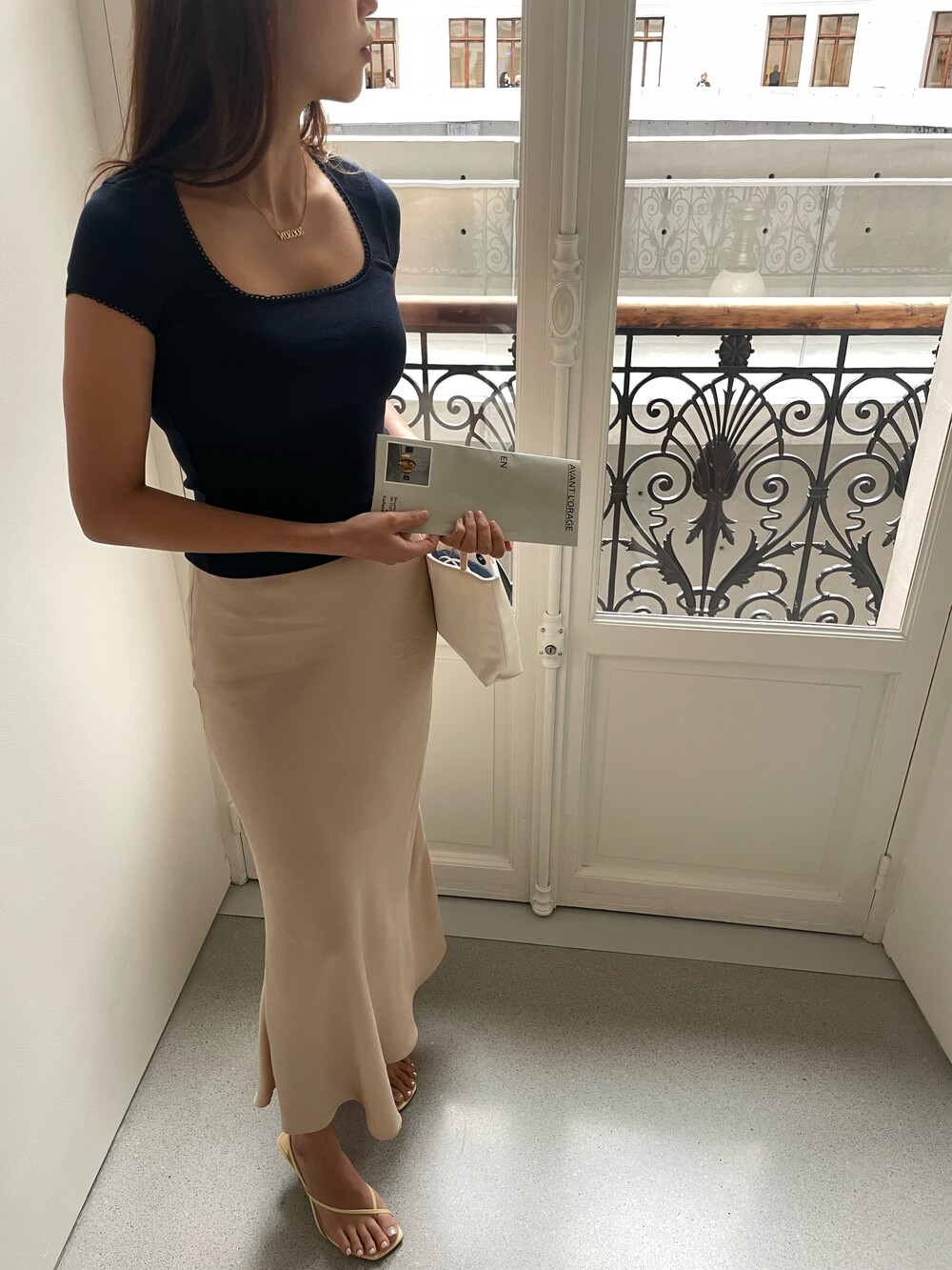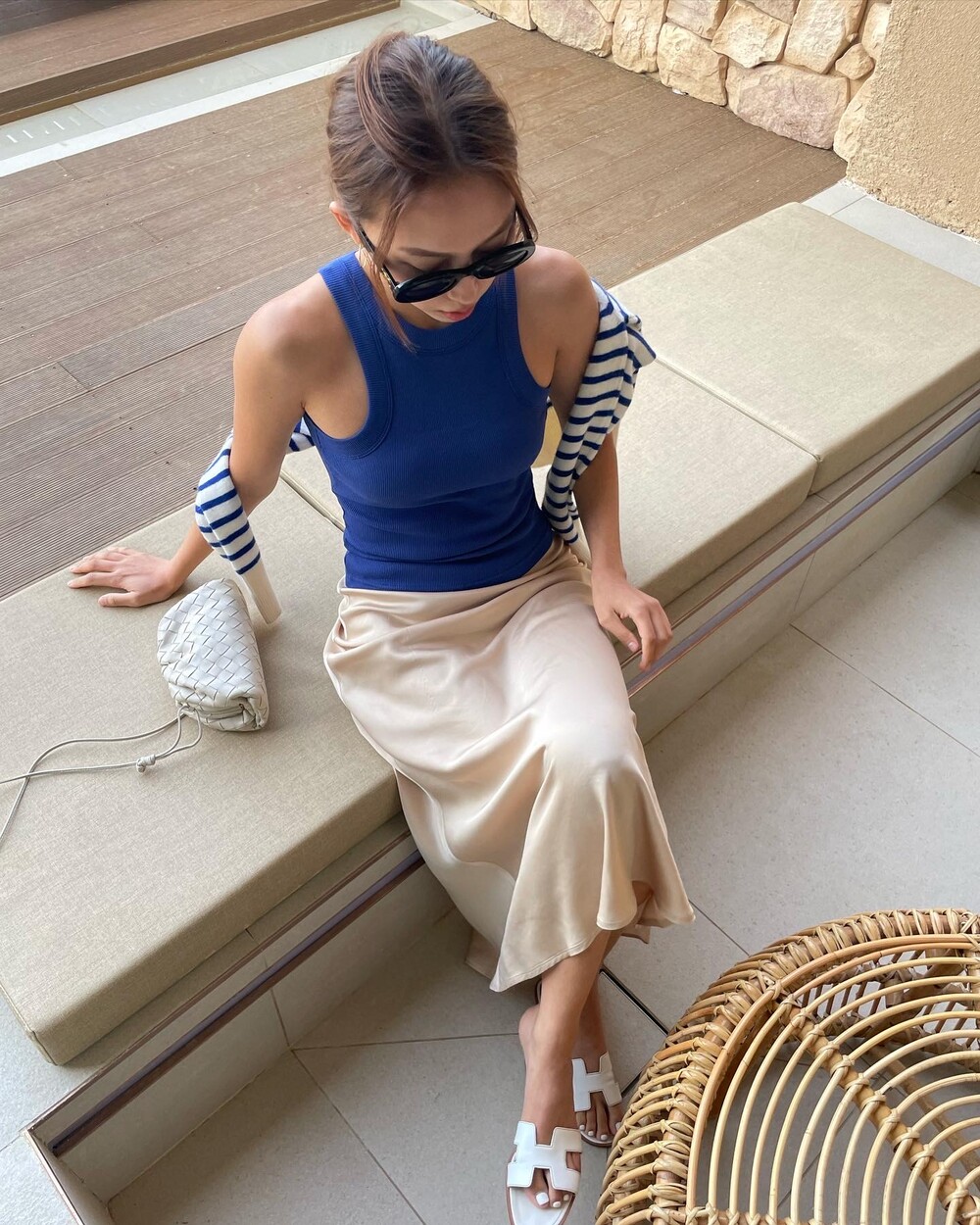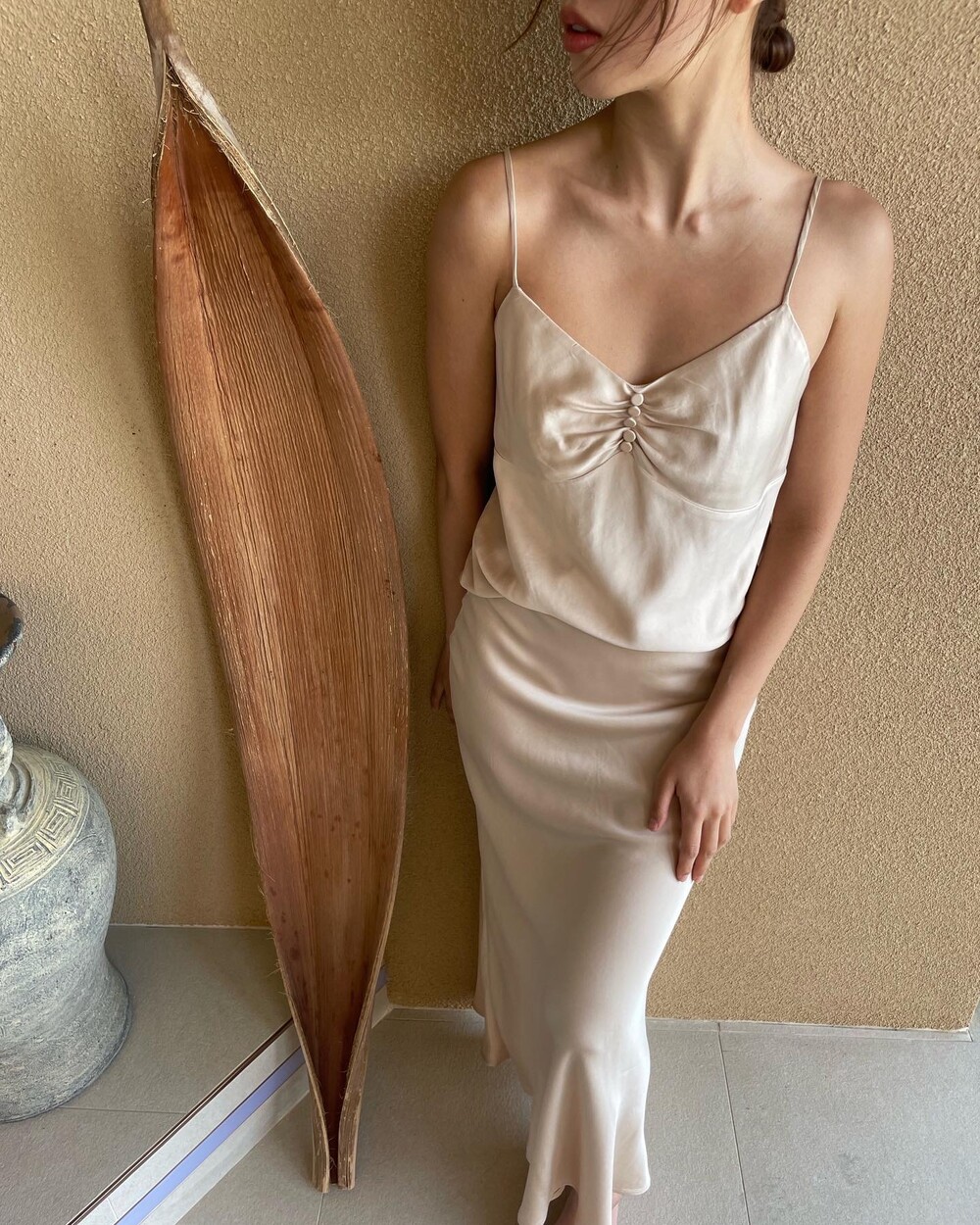 무엇보다 적당히 무게감 있게 실루엣을 유지하는데 살결에 엉겨붙지 않아 4계절 내내 착용하기 좋아요. 전 앞두고 있는 해외여행에서 시원한 슬리브리스탑이나 스윔웨어와 매치해볼까해요. 아! 화려한 패턴의 탑과도 참 잘 어울리겠어요.