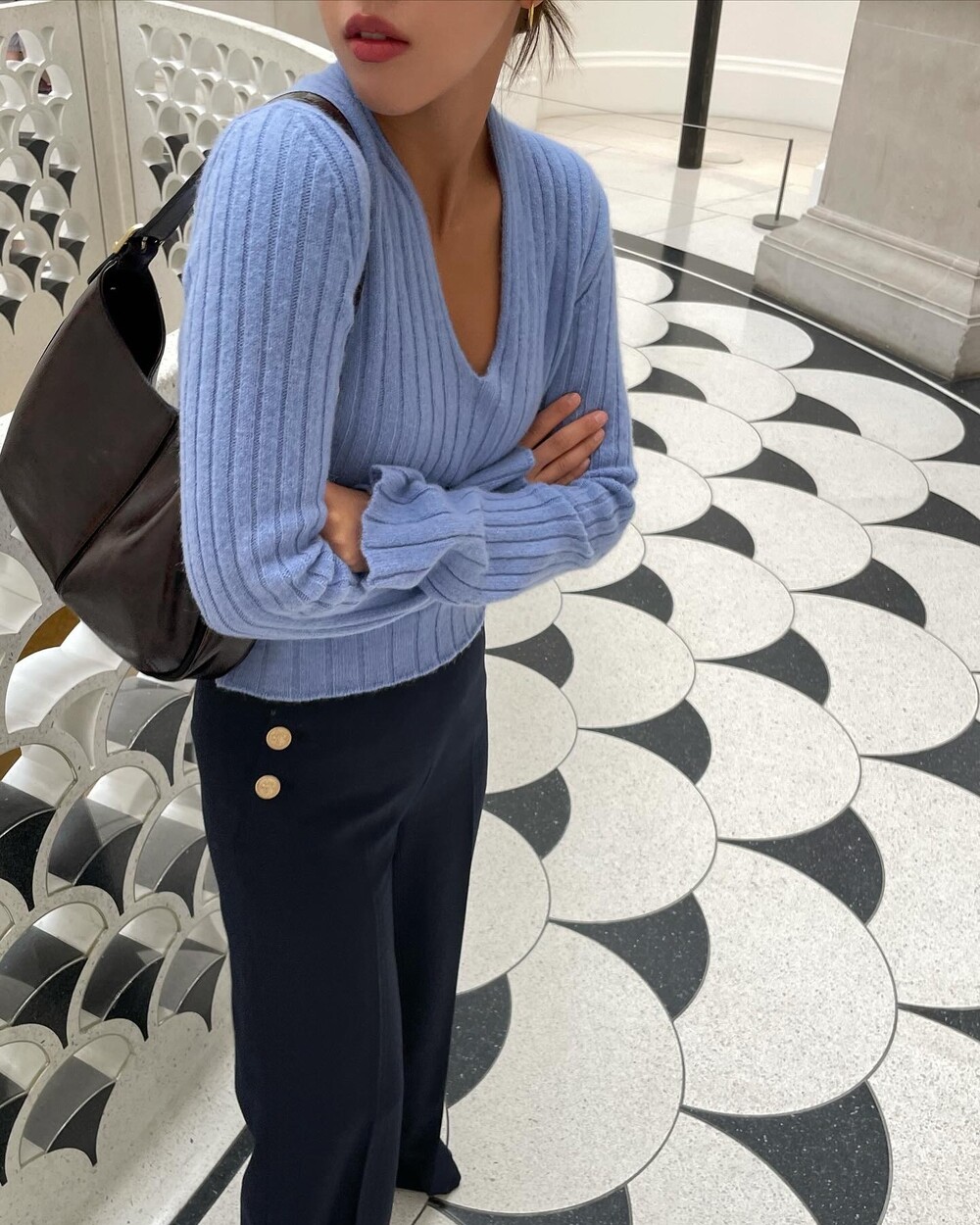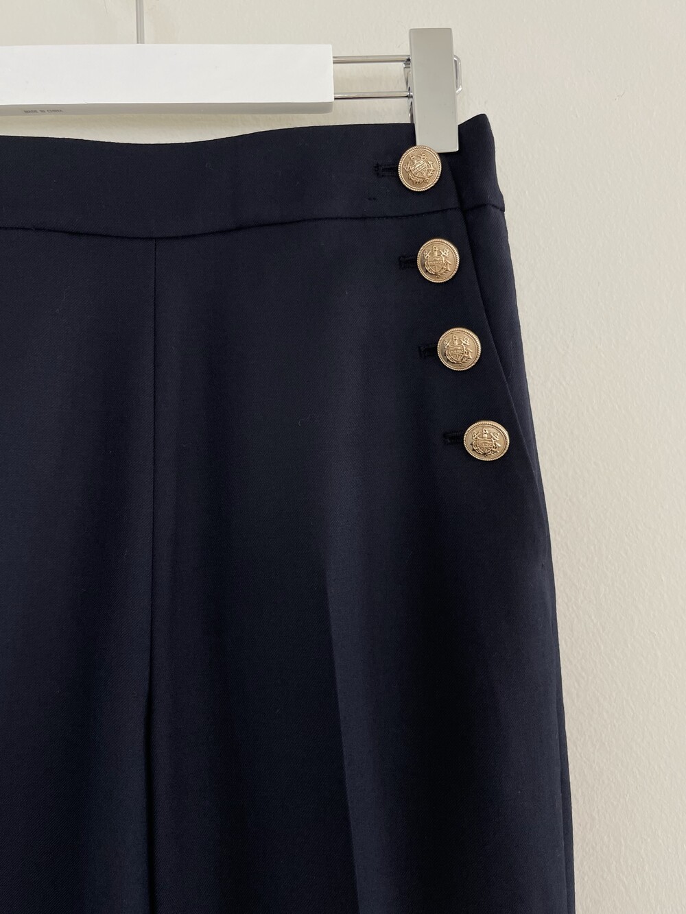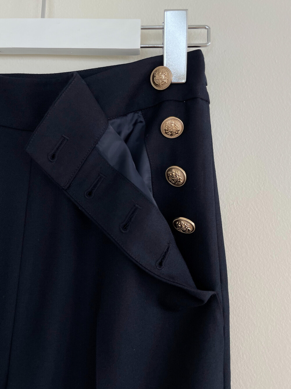 아! 특히 이 버튼들이 우리의 바디 실루엣이 아닌 포켓라인을 타고 위치하는데요. 우리의 허리보다 더 안쪽으로 좁혀지며 배열되기에 허리가 상당히 잘록해보이는 시각적 효과도 강력하게 경험하실 수 있죠. 좌우 대칭 발란스 맞아보여 몸 선도 예뻐보이구요:-)