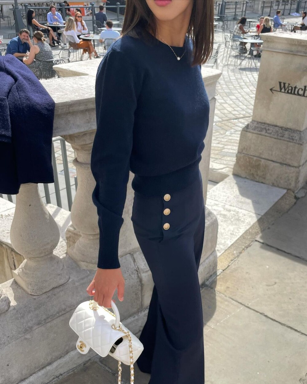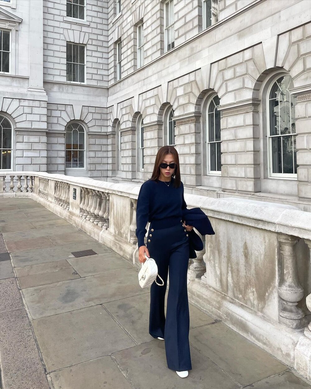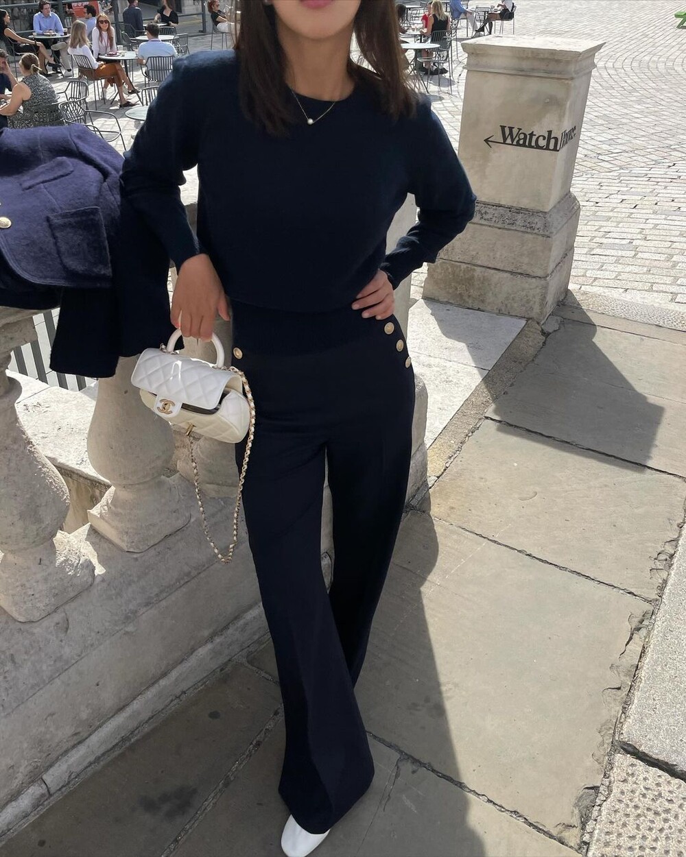 아! 특히 이 버튼들이 우리의 바디 실루엣이 아닌 포켓라인을 타고 위치하는데요. 우리의 허리보다 더 안쪽으로 좁혀지며 배열되기에 허리가 상당히 잘록해보이는 시각적 효과도 강력하게 경험하실 수 있죠. 좌우 대칭 발란스 맞아보여 몸 선도 예뻐보이구요:-)