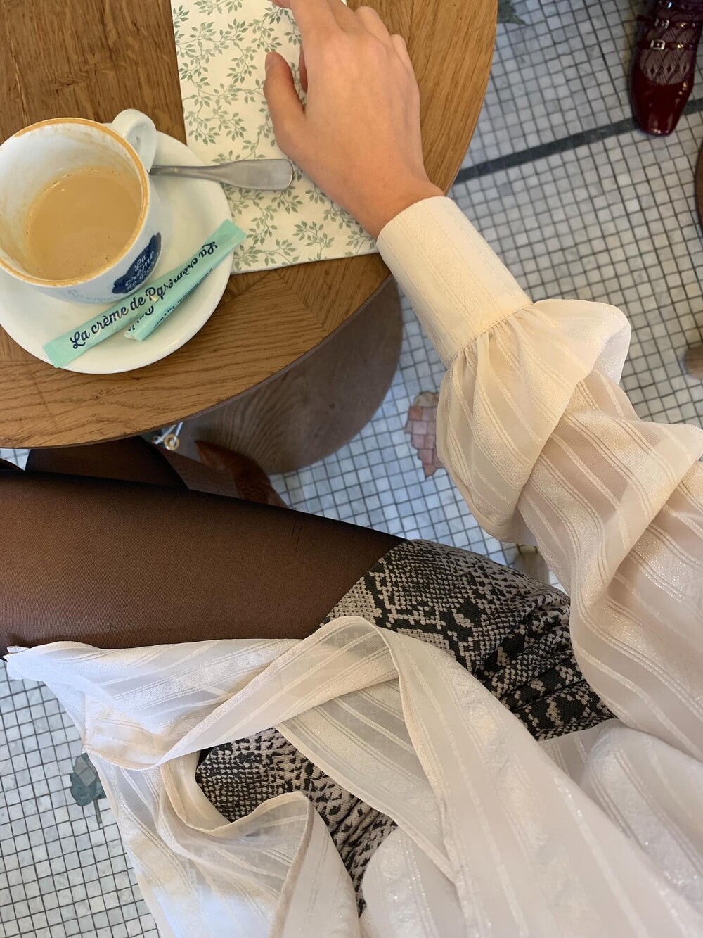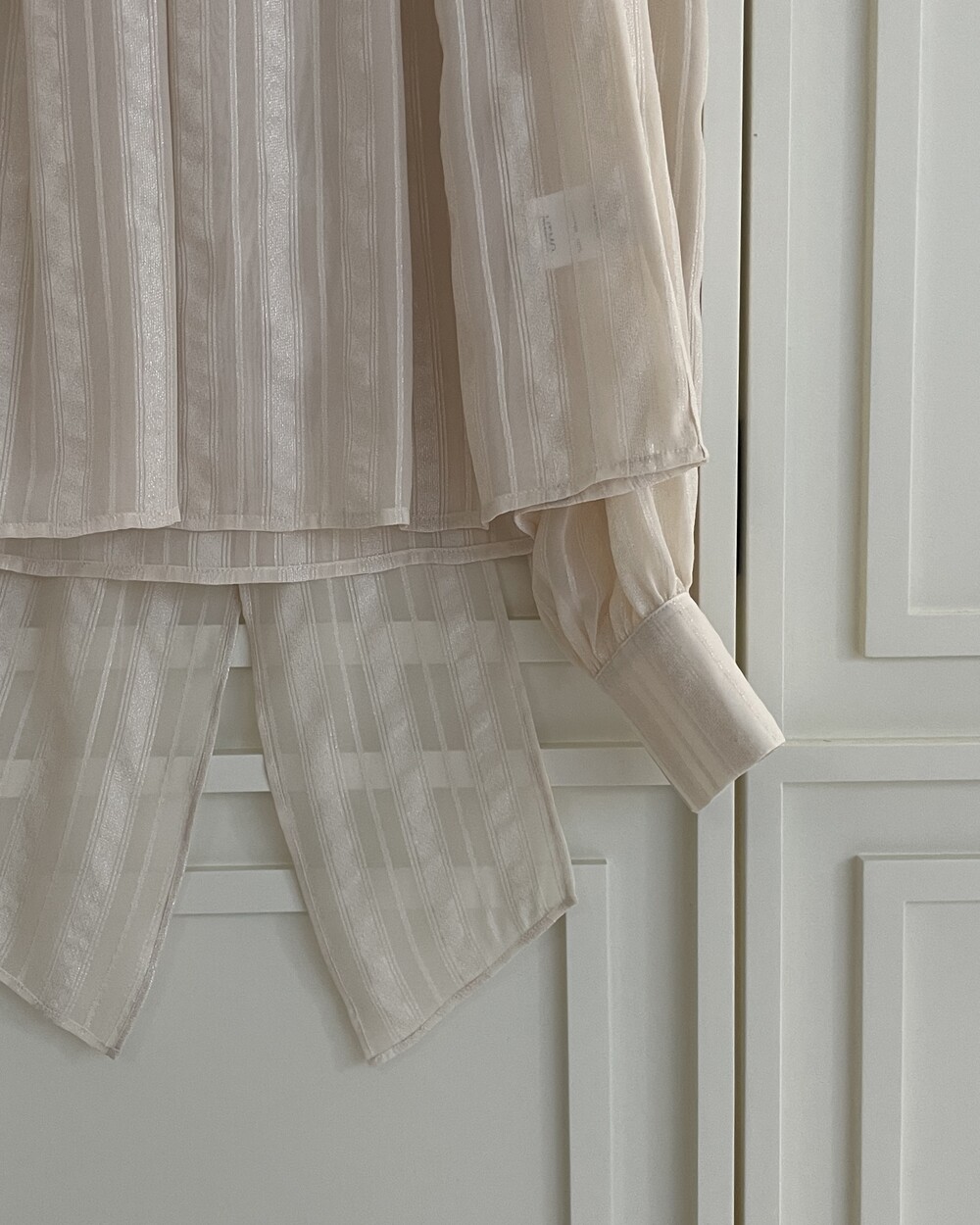 -쉬어한 소재에 어우러지는 셔링 디테일은 원없이 추가하여 충분한 볼륨감과 사랑스러움을 만끽 할 수 있어야 할 것.
