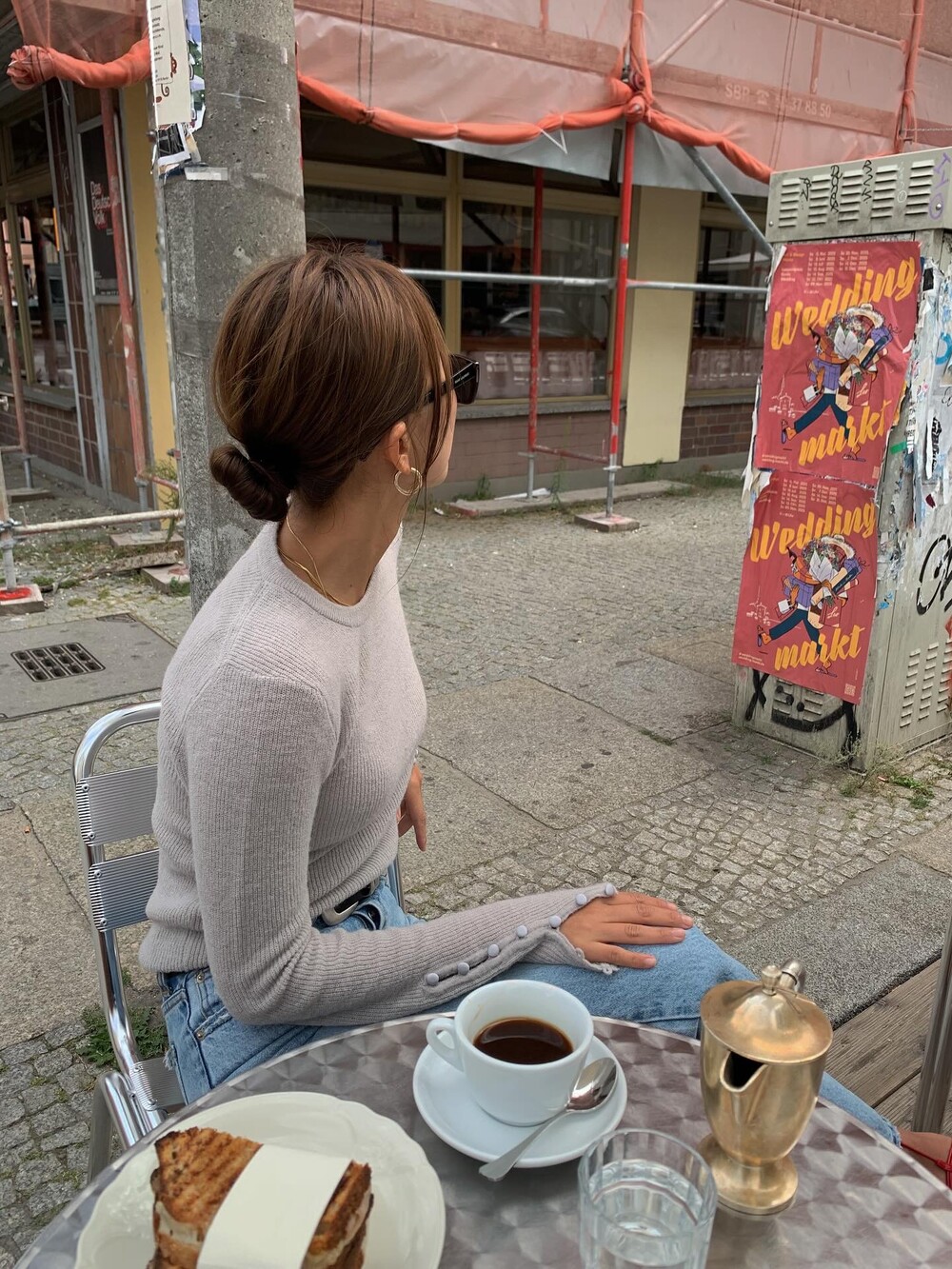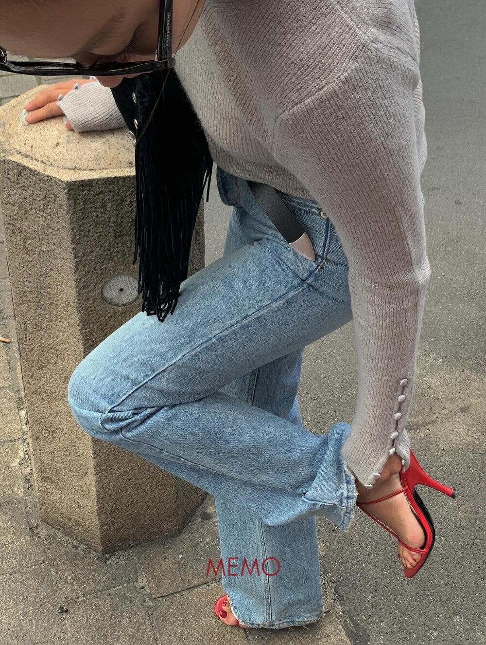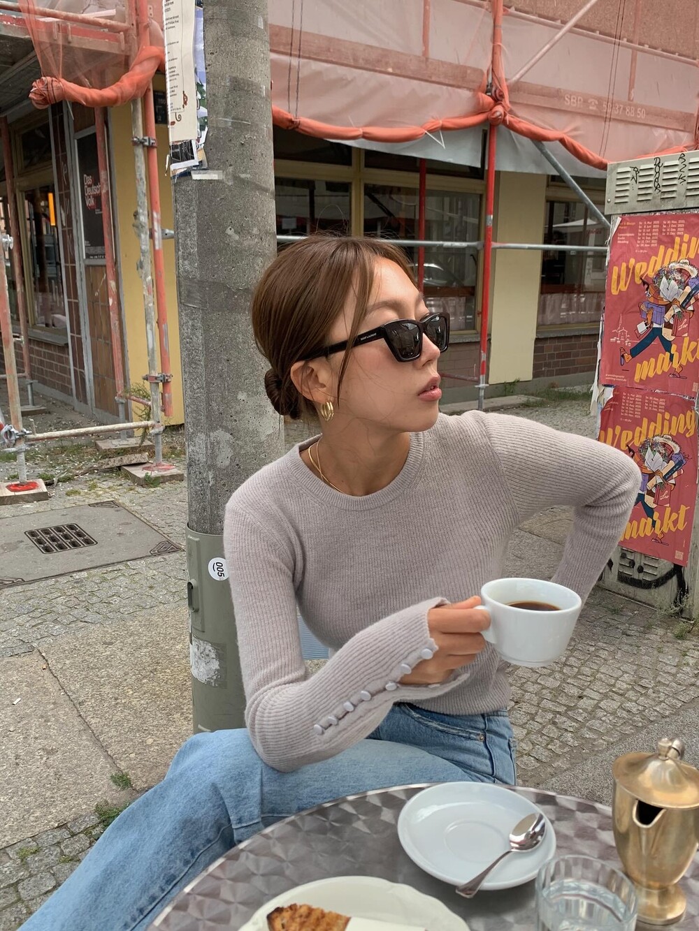 소매길이 충분히 긴데다 단추 두어개 끌러 입어주면 슬쩍 나팔소매 폼 같기도 해서 상대적으로 팔뚝 정말 얇아보여요.