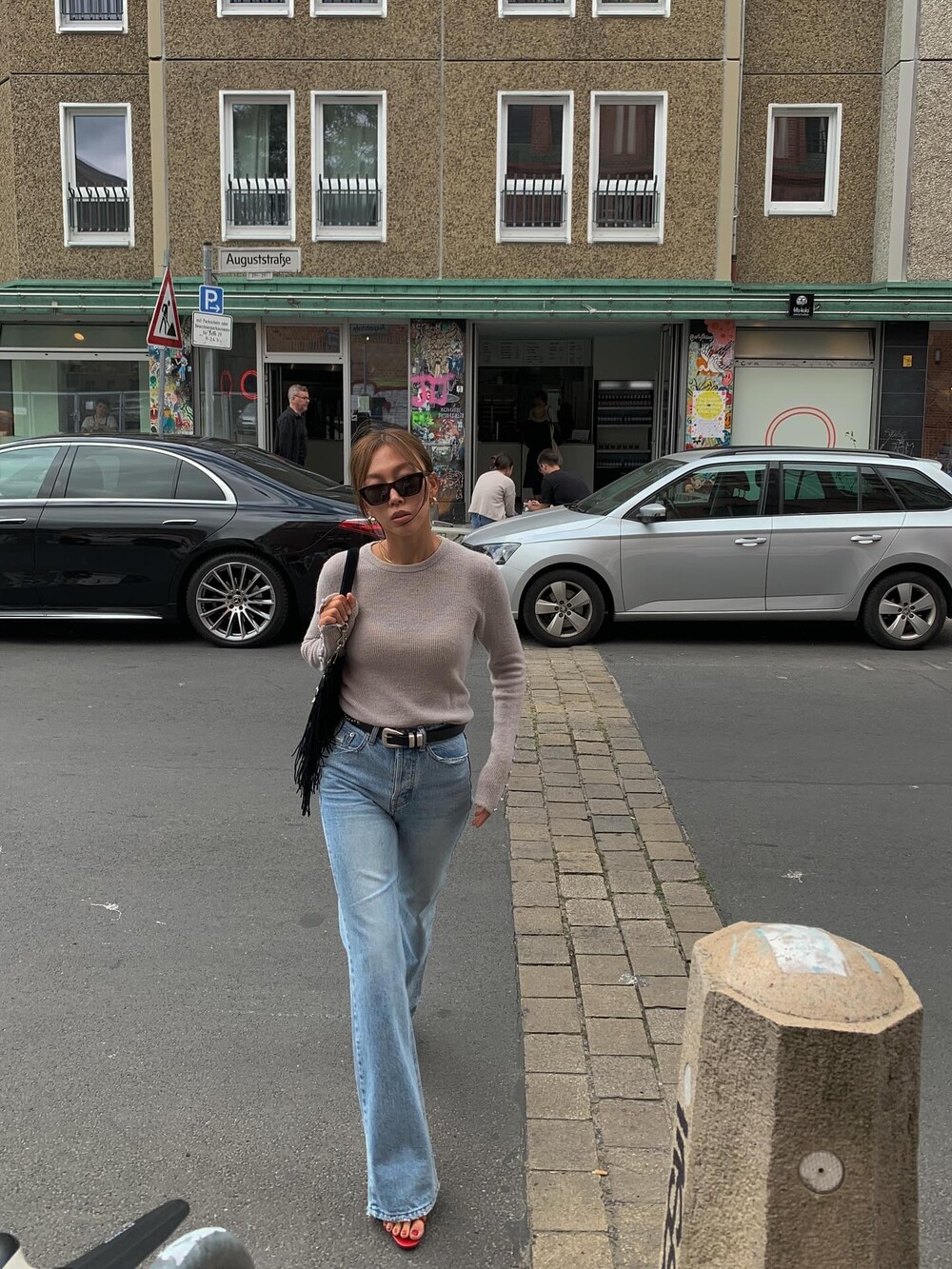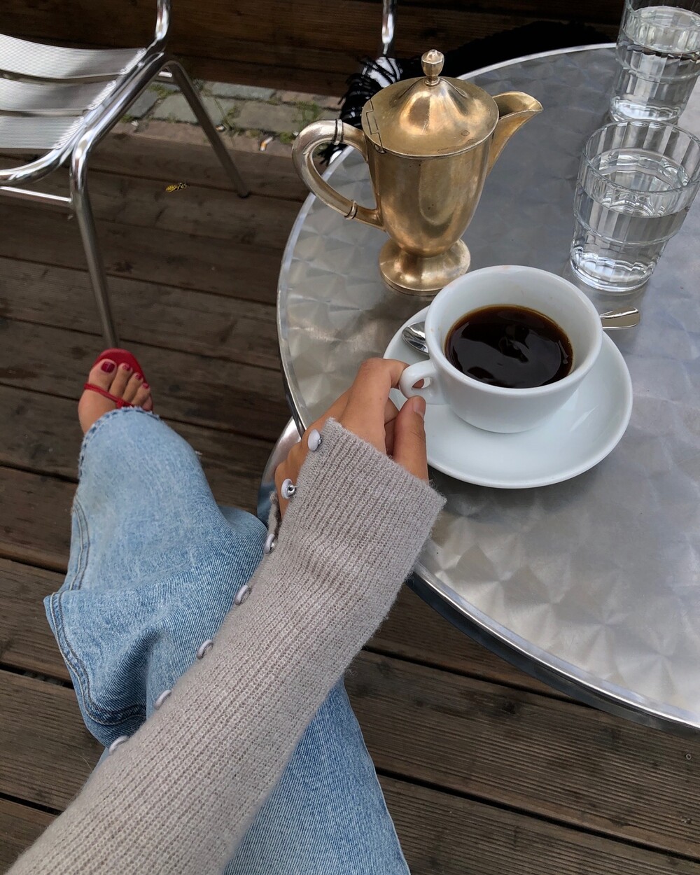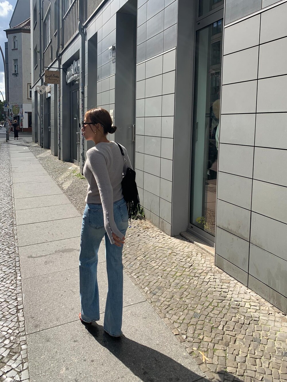 소매길이 충분히 긴데다 단추 두어개 끌러 입어주면 슬쩍 나팔소매 폼 같기도 해서 상대적으로 팔뚝 정말 얇아보여요.