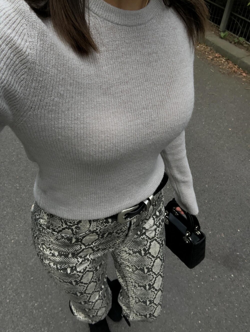 타이트하지 않고 몸에 감기는 핏. 가장 대중적인 립조직 니트웨어 인데도 포스가 남다릅니다.