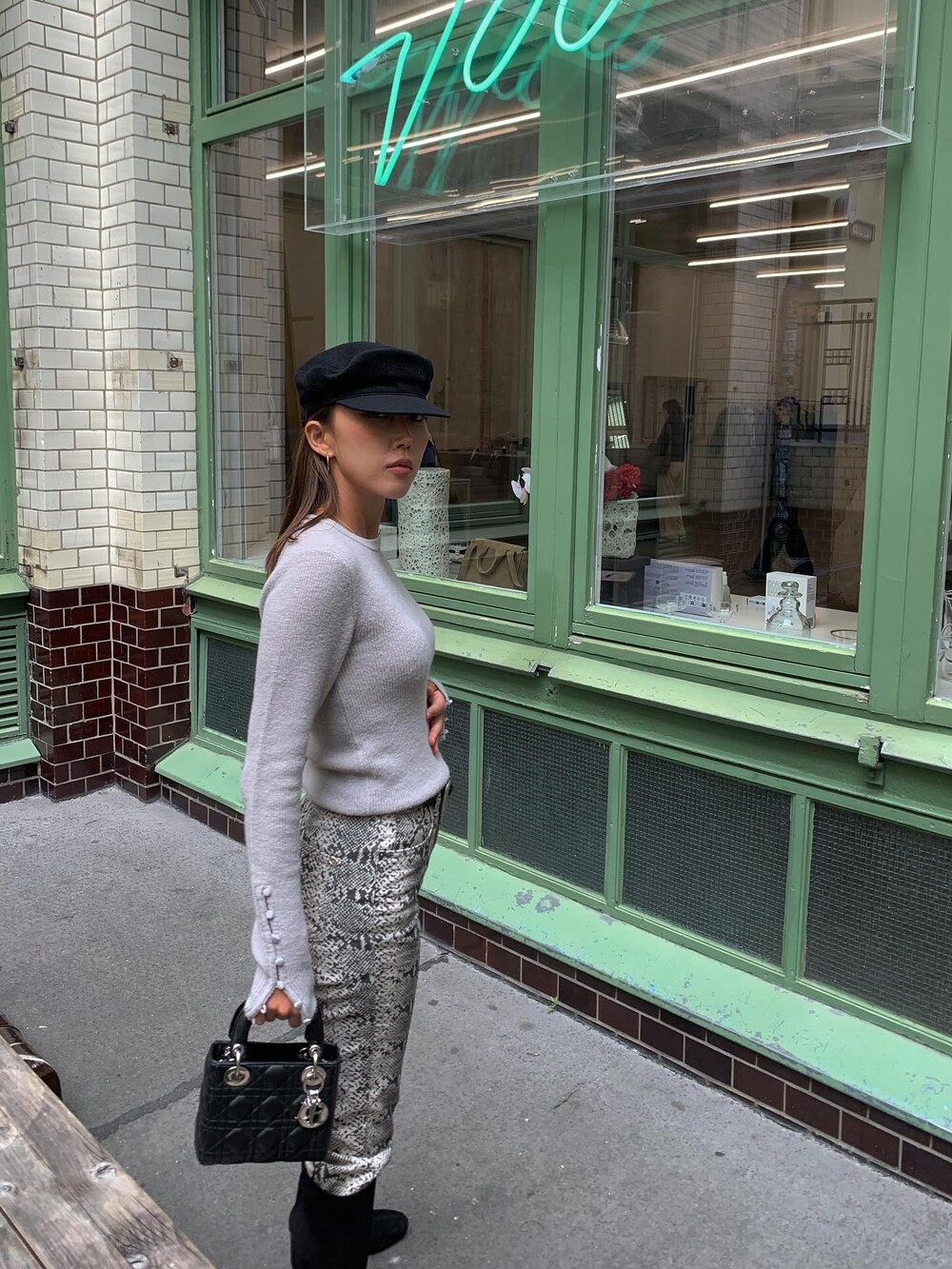은은한 반광으로 소매를 움직일 때 마다 존재감을 표출하는데 세상 예쁩니다.... 악세서리도 굳이 필요없고, 긴 슬릿 기장까지 아주 세련.